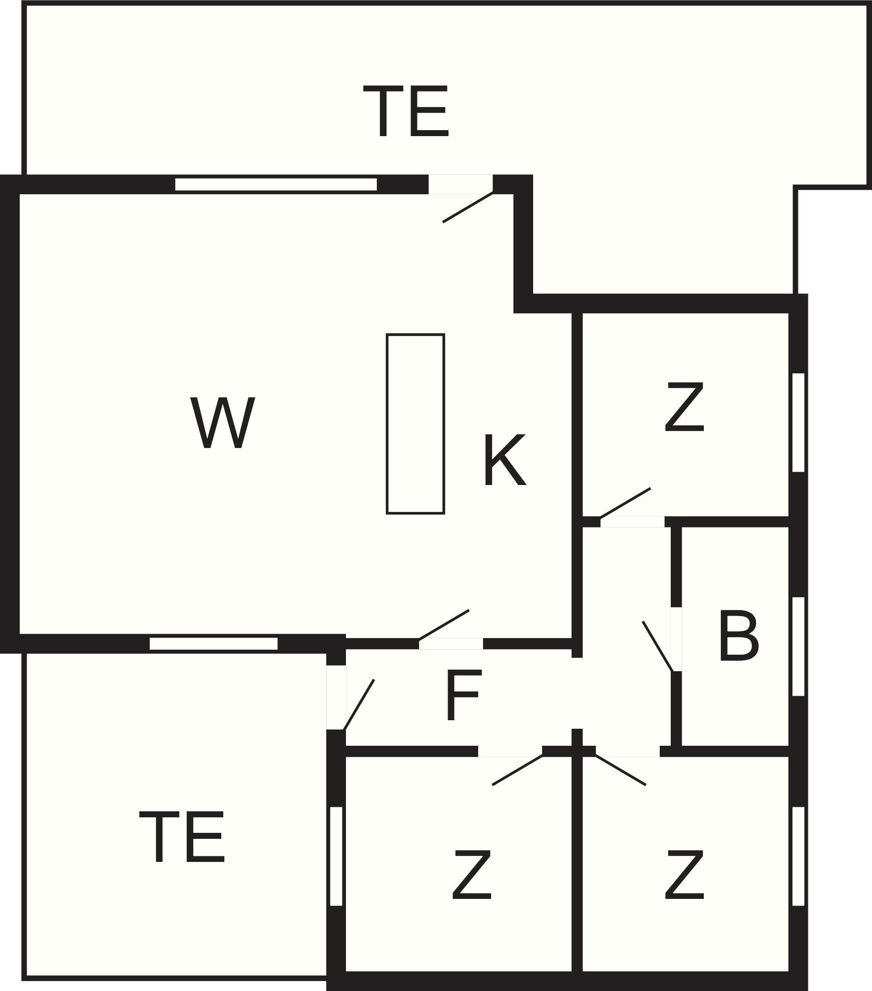 Off. Küche: E-Herd, Kühlschr. m. Gefrierfach, Abzugsh., Kaffeem., Spülm., Waschm.