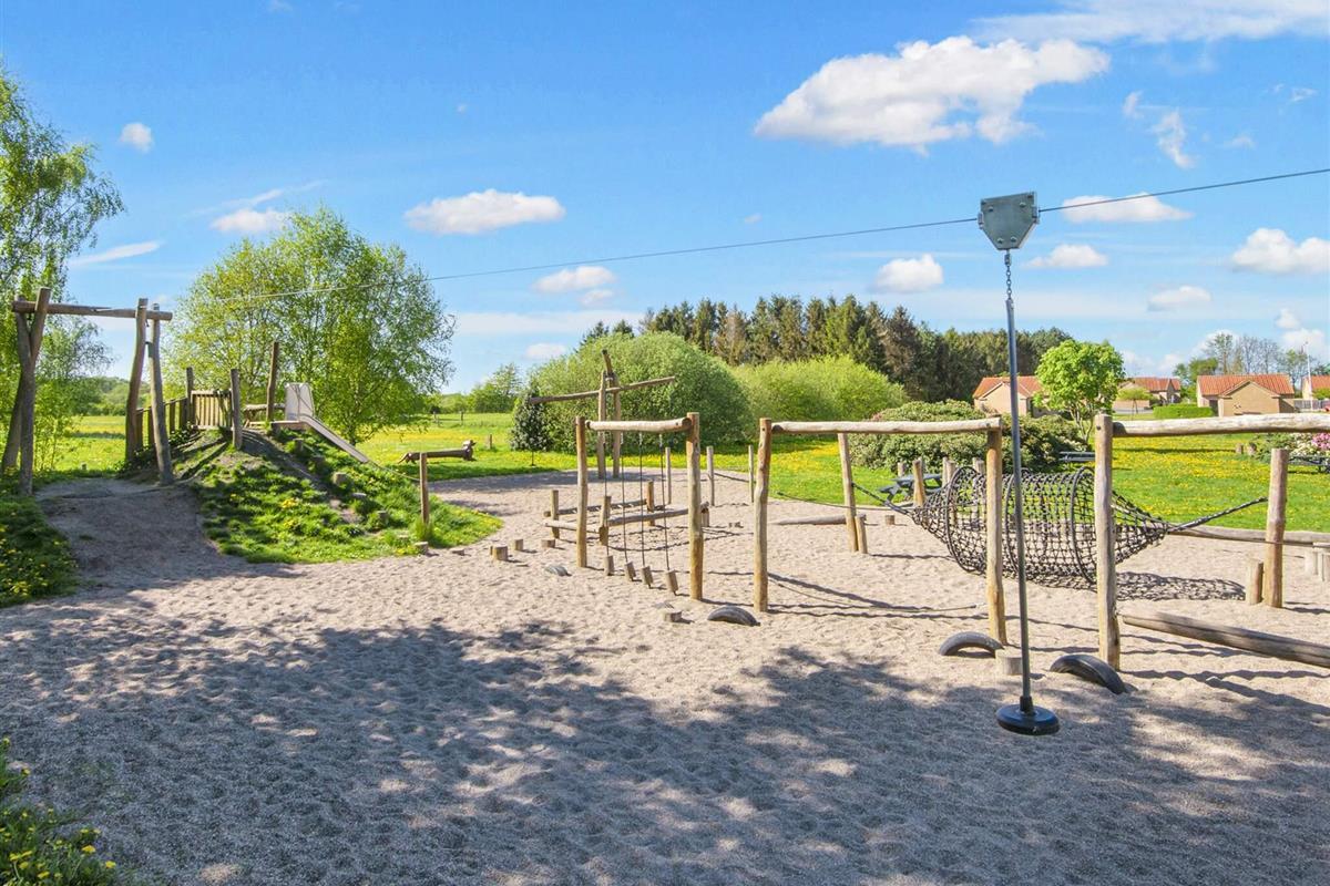 Auf einem Naturgrundstück in Hanglage und umgeben von Bäumen steht dieses Ferienhaus. Es bietet viel Raum für Entspannung und hat drei Schlafzimmer; eines mit Doppelbett, das zweite mit erhöhtem Doppelbett, das dritte mit zwei Einzelbetten, zusammengestellt als Doppelbett.