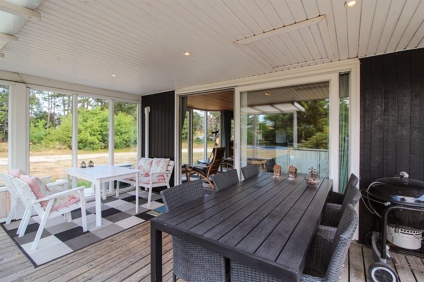 De vakantiewoning is gelegen op een 1203 m² groot natuural grond. Afstand tot de zee 100 m. Er is een zwemsteiger in de buurt. Dichtstbijzijnde winkel 1500 m. Bij de vakantiewoning hoort 25 m² terras. Daarnaast is er een 16 m² groot overdekt terras. Gereedschapsruimte. Trampoline. Carport ter beschikking. Parkeerplaats bij het huis.