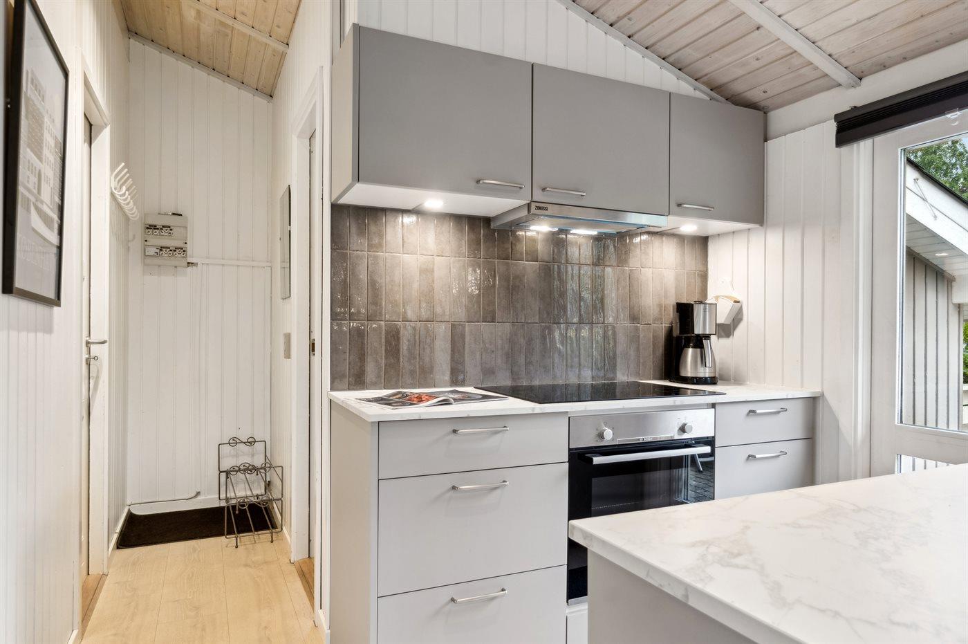 De keuken is uitgerust met koelkast Er zijn 4 keramische kookplaten, heteluchtoven, magnetron en vaatwasser.