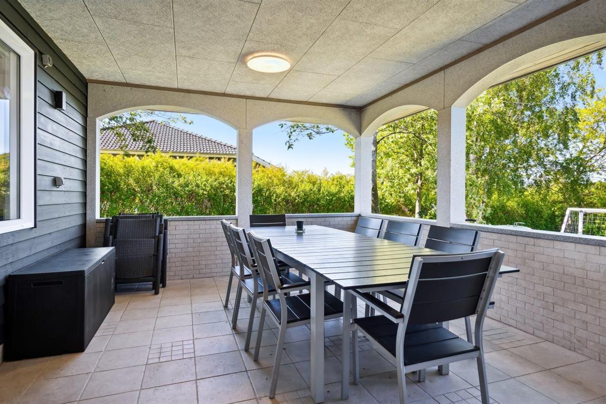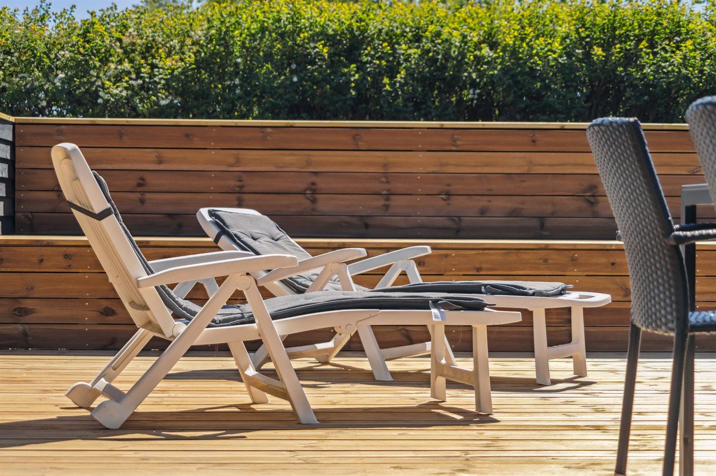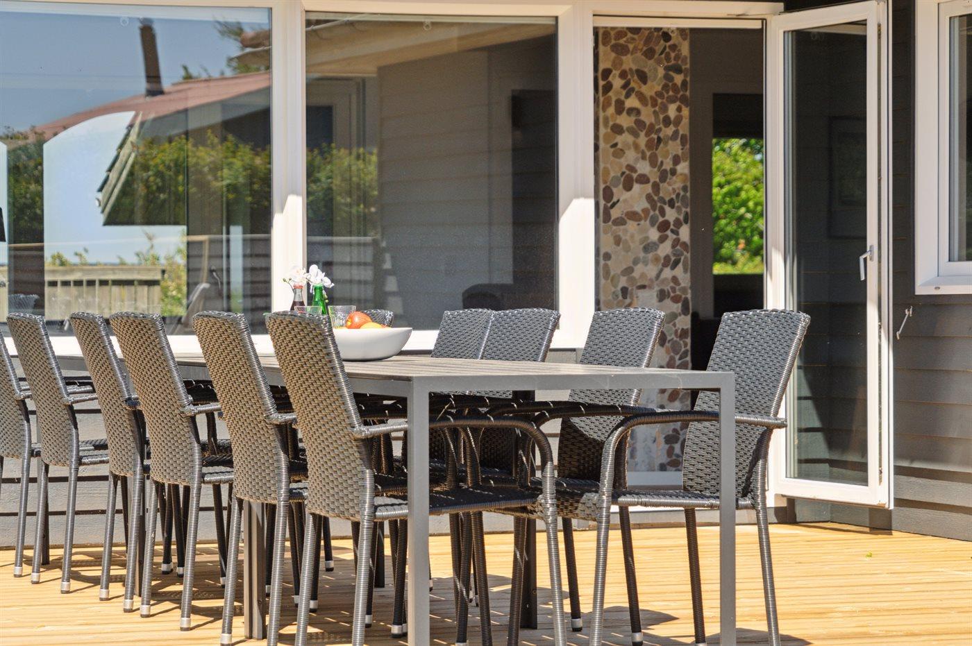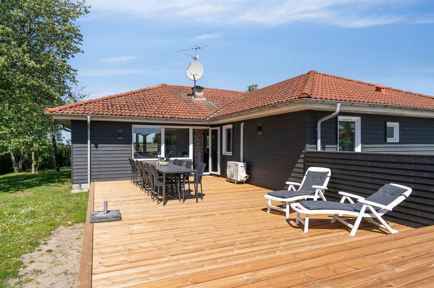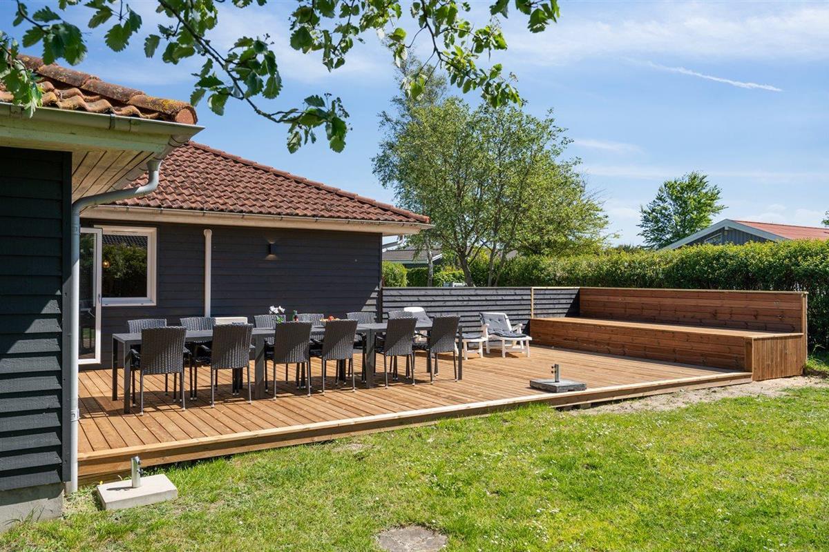 De vakantiewoning is gelegen op een 1214 m² groot aangelegde tuin. Afstand tot de zee 850 m. Dichtstbijzijnde winkel 1500 m. Bij de vakantiewoning hoort terras. Daarnaast is er een overdekt terras. Schommel. Trampoline. Glijbaan. Voetbaldoel.Vuurplaats. Barbecue. Parkeerplaats bij het huis.
