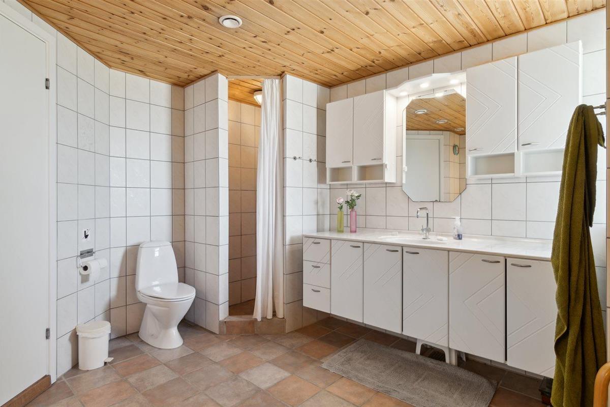 Er is 2 badkamers met douchehok en 2 toiletten. Er is vloerverwarming in 2 van de badkamers.