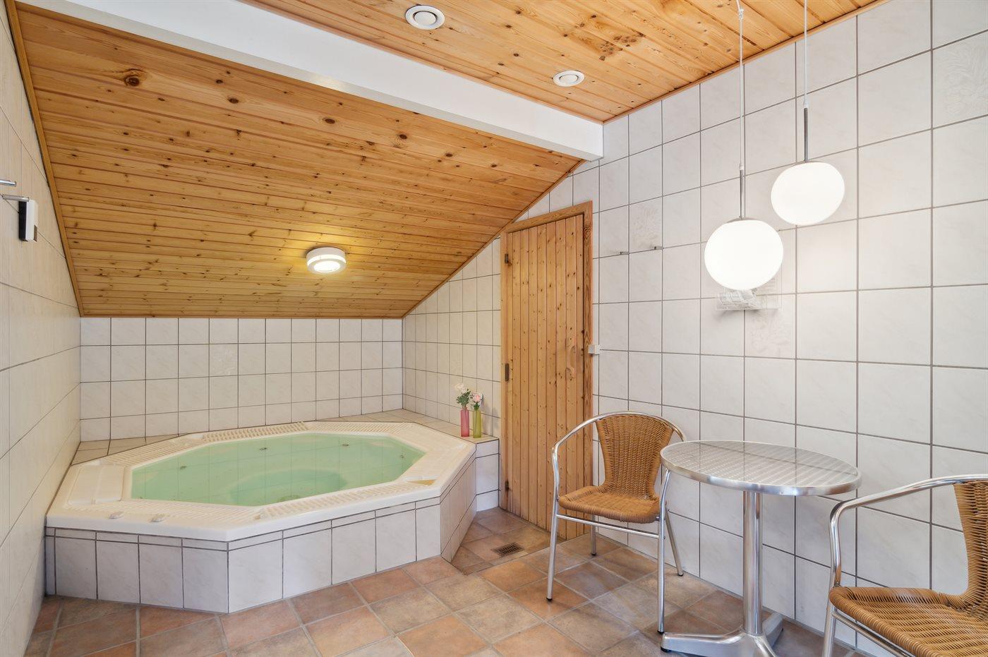 In het binnenbubbelbad (standwater) is plaats voor 8 personen.