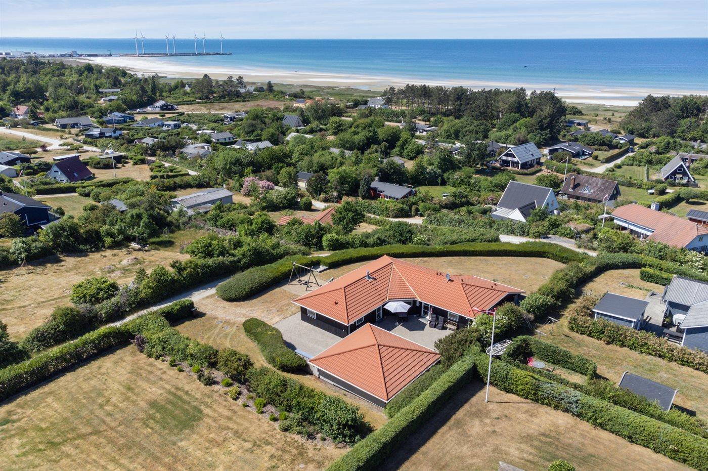 Ruim vakantiehuis nabij Bønnerup Strand met zeezicht, bubbelbad en grote tuin, ideaal voor gezinnen en huisdieren.