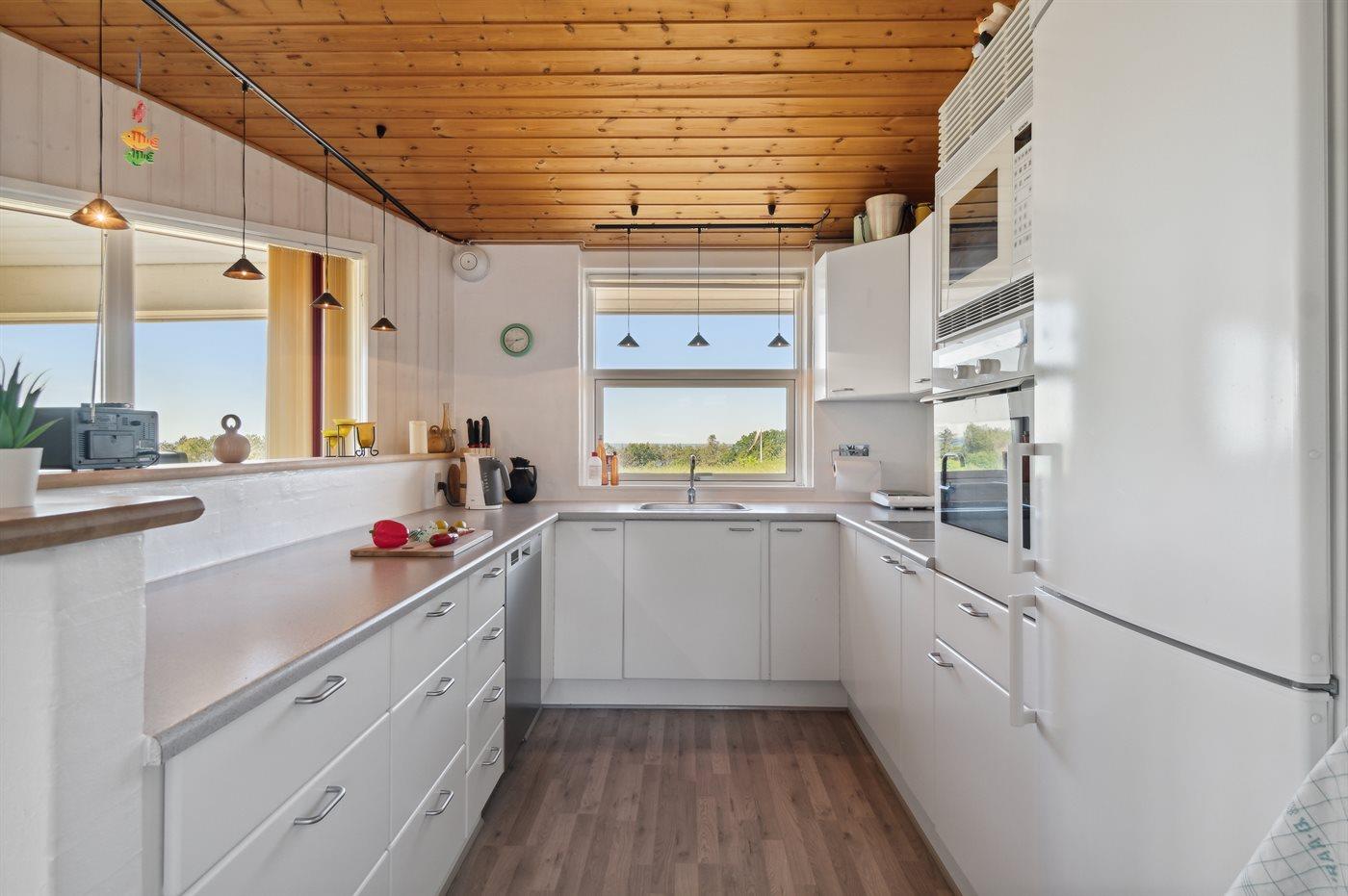 De keuken is uitgerust met koelkast Er zijn 4 keramische kookplaten, heteluchtoven, magnetron en vaatwasser.