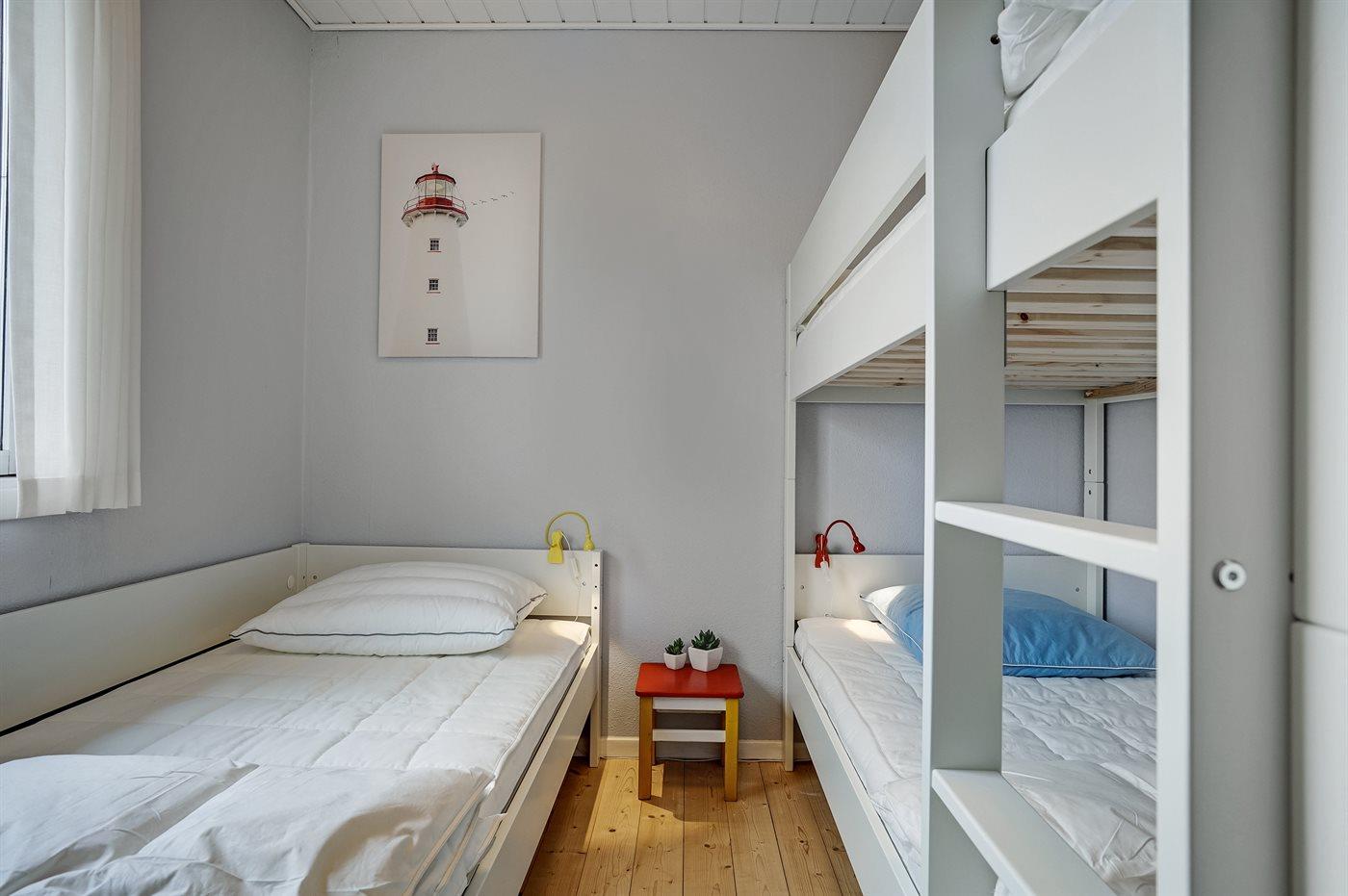 Er zijn in totaal 2 slaapkamers. De slaapplaatsen zijn als volgt verdeeld: 2 slaapplaatsen in tweepersoonsbed.1 slaapplaats in eenpersoonsbed. 2 slaapplaatsen in stapelbed.