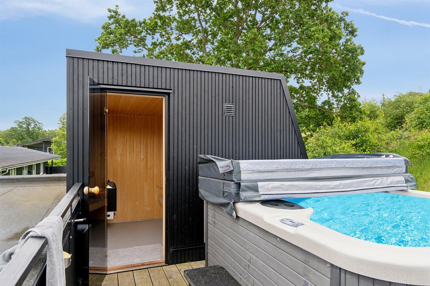 Modern vakantiehuis met sauna, bubbelbad en zeezicht nabij Bønnerup Strand.