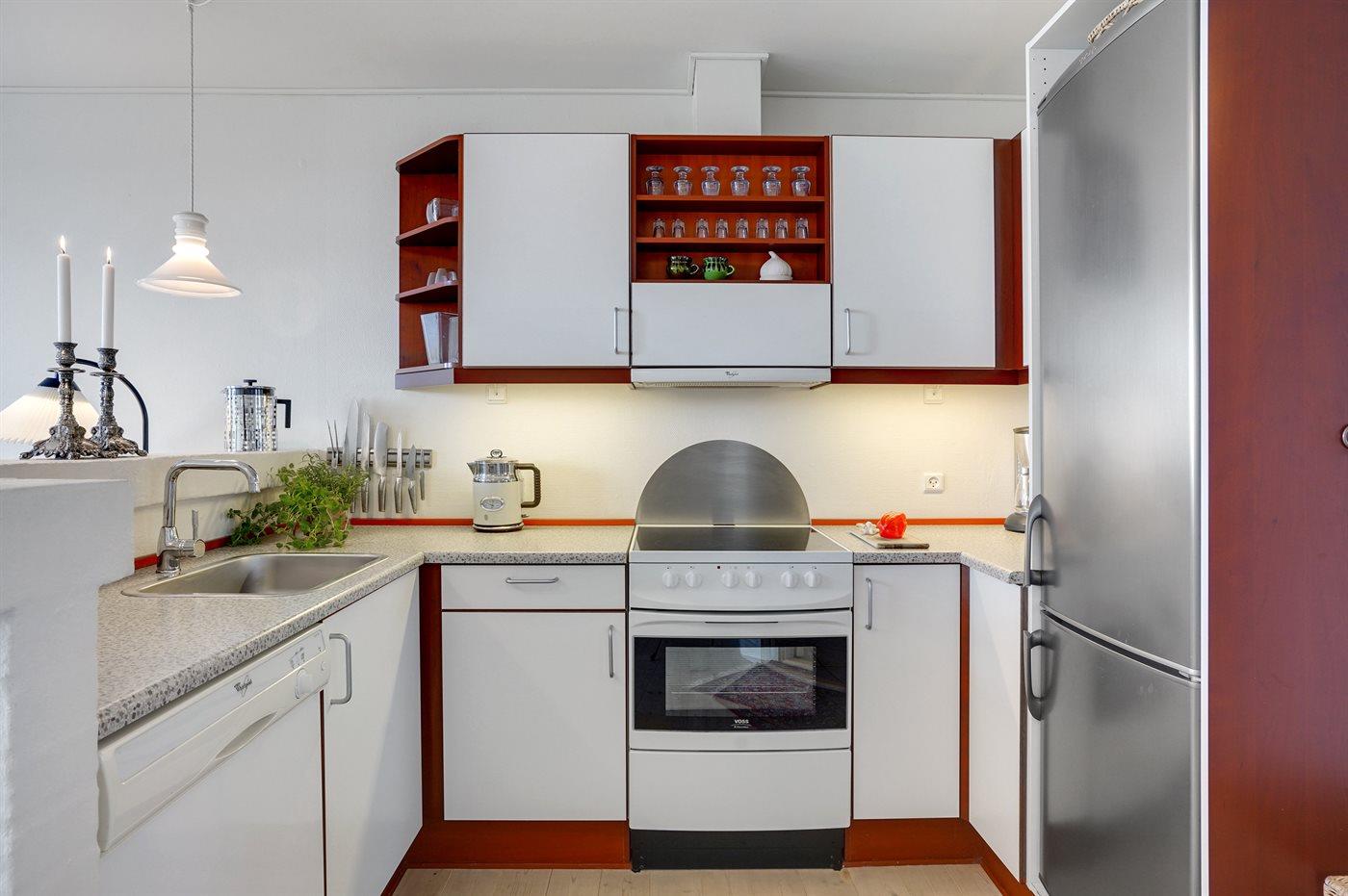 De keuken is uitgerust met koelkast Er zijn 4 keramische kookplaten, heteluchtoven, magnetron en vaatwasser.