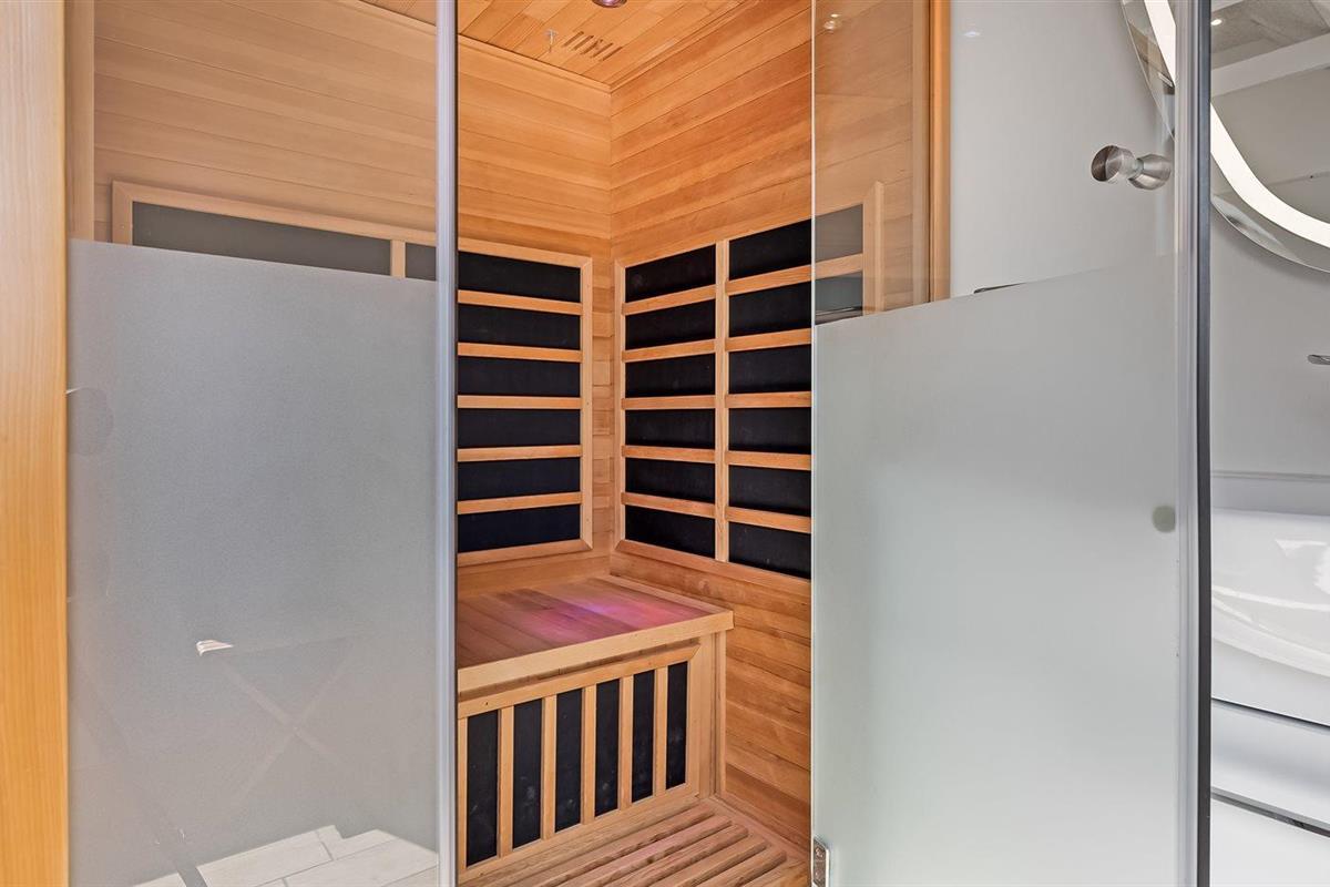 Er is 2 badkamers met douchehok en 2 toiletten. Er is vloerverwarming in 2 van de badkamers. De sauna biedt de gelegenheid tot ontspanning.