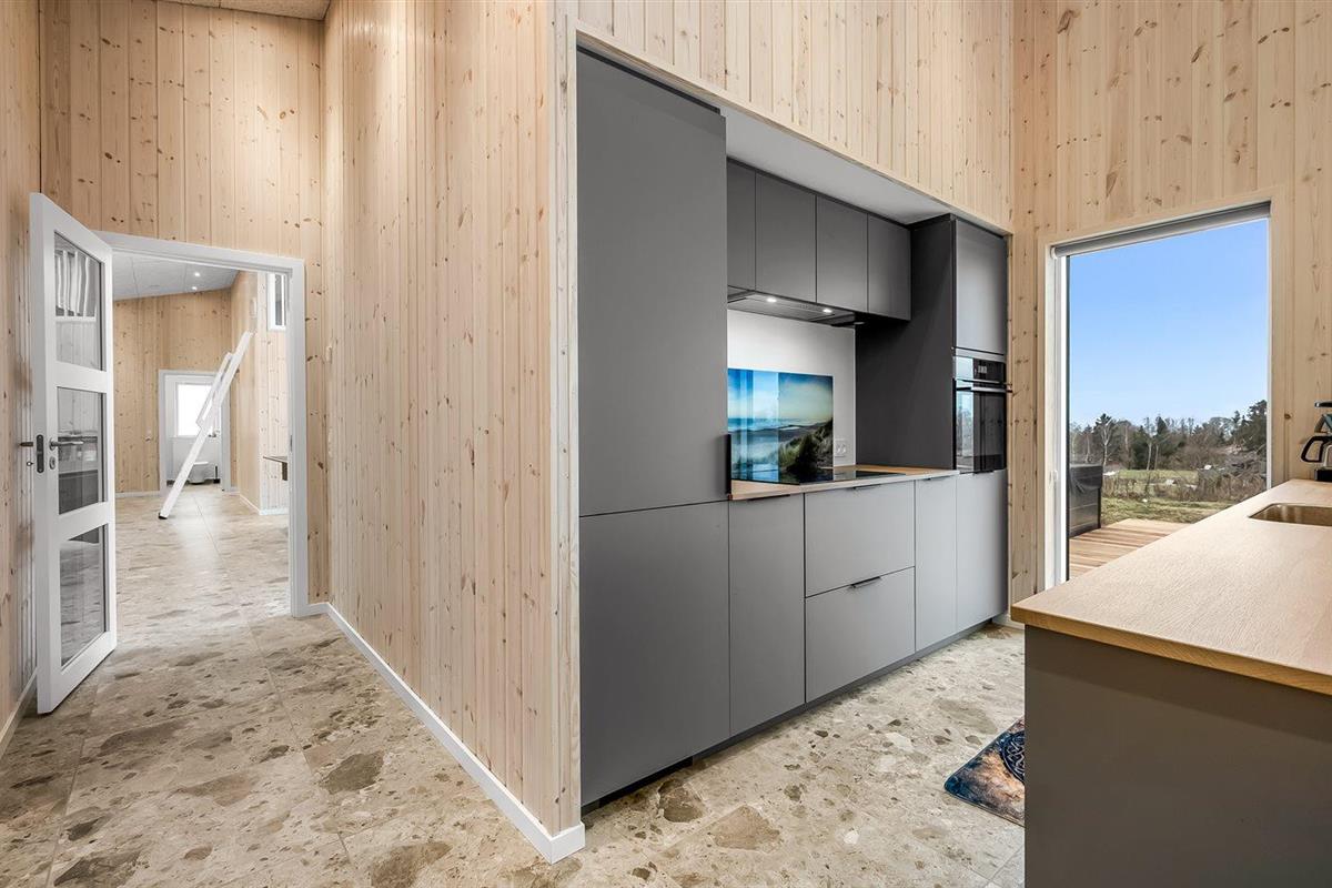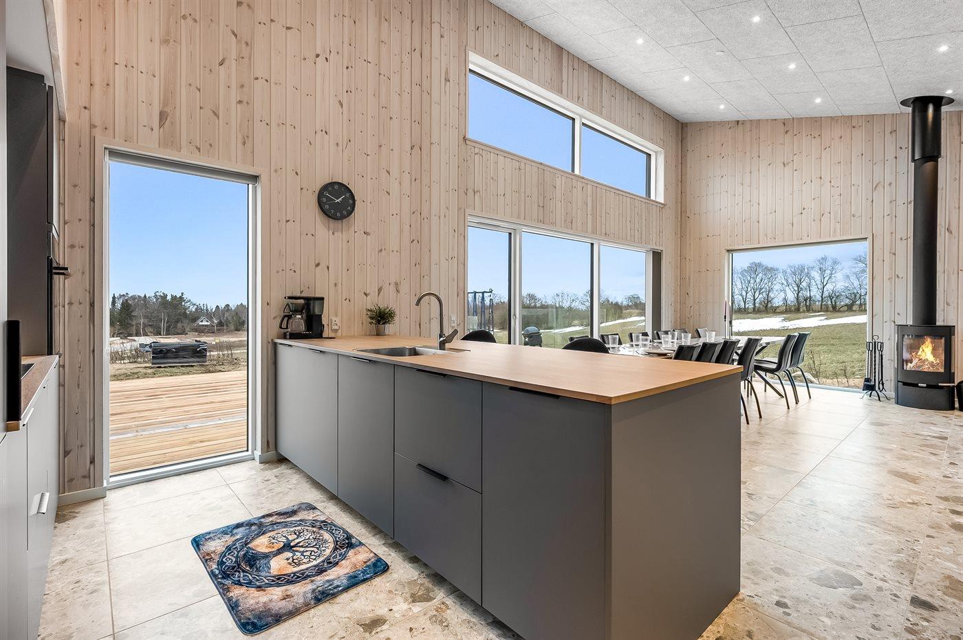 De keuken is uitgerust met koelkast Er is 4 inductiekookplaten, heteluchtoven, magnetron en vaatwasser.