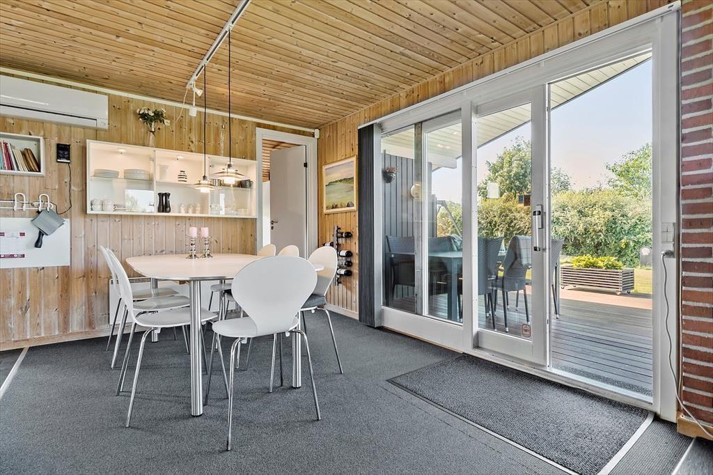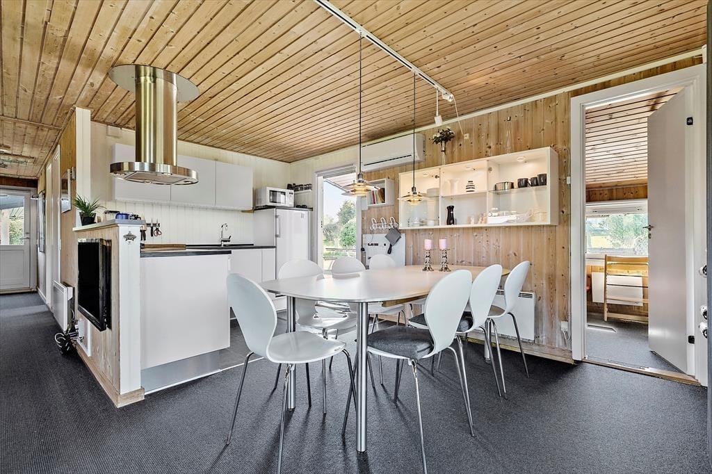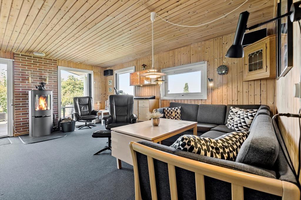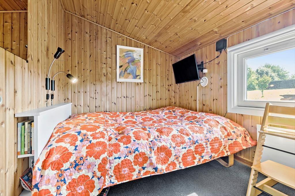 Stell dir einen Sommermorgen vor, an dem die Sonne den Himmel golden gefärbt hat und du am Fenster dieses charmanten Holzhauses stehst, das 2015 renoviert wurde. Du blickst zum Horizont, wo das Meer sanft in der Ferne glitzert, nur 700 Meter entfernt von deiner Ferienoase. Du kannst fast die Meeresluft spüren, die sich mit dem Duft von frisch gebrühtem Kaffee aus der Küche vermischt, die offen mit dem gemütlichen Essbereich und dem Wohnzimmer verbunden ist. Das Haus bietet Raum für Entspannung und Gemeinschaft. Es ist ausgestattet mit vier geräumigen Schlafzimmern, drei davon haben ein Doppelbett und eines ein Etagenbett. Im gut ausgestatteten Badezimmer sorgt die Waschmaschine diskret dafür, dass immer frische Handtücher für den Strand parat sind und in der warmen Sauna lässt du es dir so richtig gut gehen. Nach einem langen Tag am Strand, an dem deine Kinder Sandburgen gebaut und du die Sonne genossen hast, versammelt ihr euch alle am Esstisch. Hier wird das Abendessen serviert, während Gespräche und Lachen den Raum erfüllen. Und wenn die Dunkelheit hereinbricht, zieht ihr euch ins Wohnzimmer oder in die Schlafzimmer zurück.