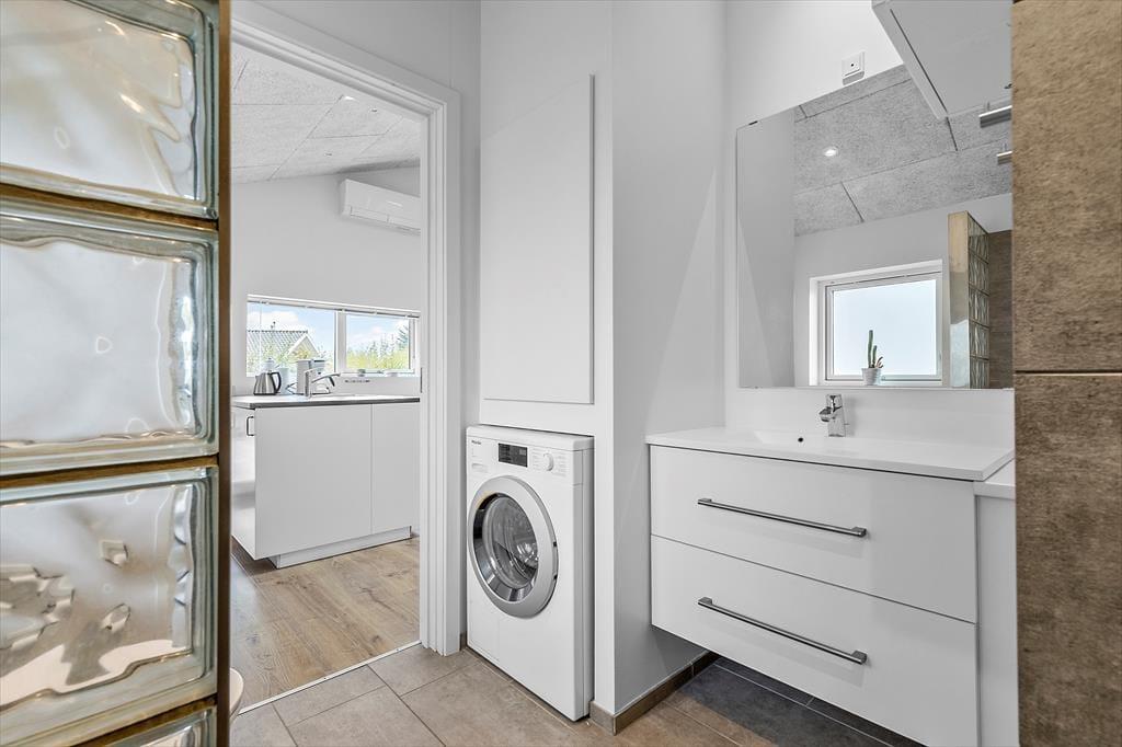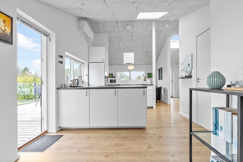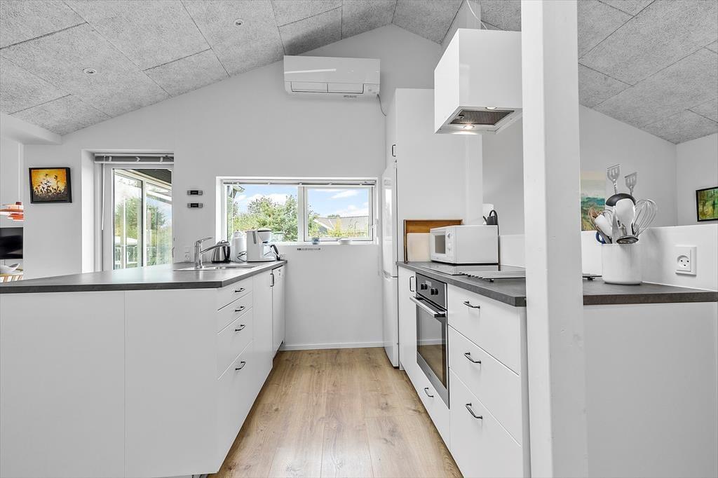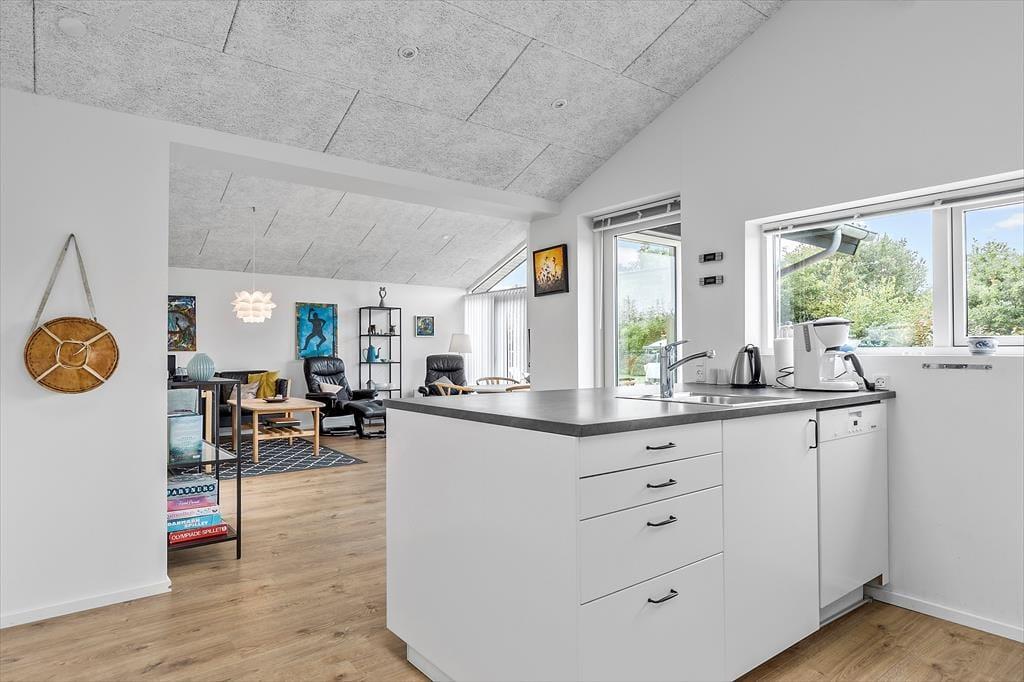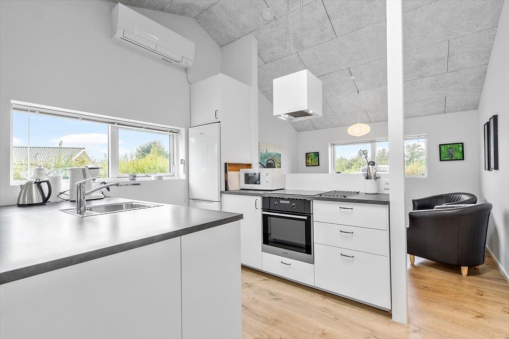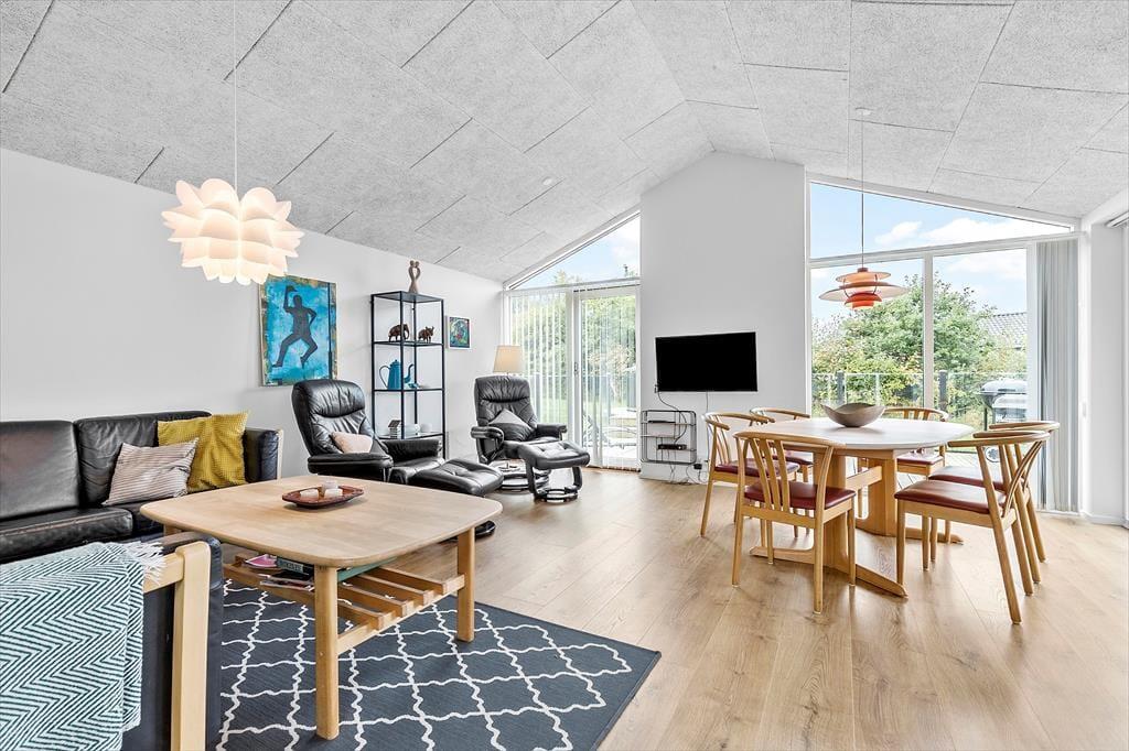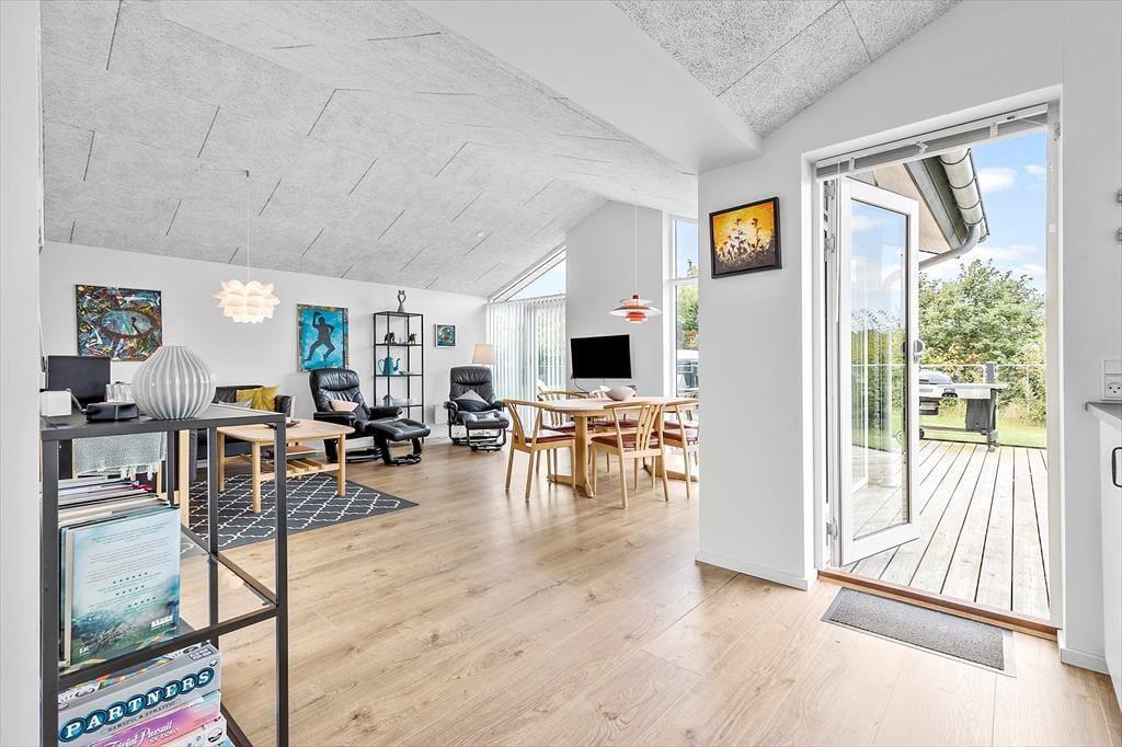 Freue dich bereits jetzt auf dein Ferienhaus, das dich unter anderem aufgrund der hohen Decken mit seiner luftigen Wohnatmosphäre begeistern wird. Der große, offene Küchen-, Wohn- und Essbereich bildet das Herzstück des Urlaubsdomizils - ein perfekter Sammelpunkt, der beste Bedingungen für gesellige Abendessen, angeregte Gespräche und wertvolle gemeinsame Stunden bietet. Die im Skandinavischen Stil gehaltene Möblierung unterstreicht die warme, gemütliche Stimmung. Nach einem Tag voller schöner Erlebnisse genießt deine Familie in den beiden mit komfortablen Doppelbetten ausgestatteten Schlafräumen erholsamen Schlaf. Ein weiterer Schlafraum ist im gemütlichen Nebengebäude untergebracht. Dieser beinhaltet ebenfalls ein Doppelbett und eignet sich hervorragend für Teenager und Gäste, die Wert auf ein wenig mehr Privatsphäre legen. Ein schönes Badezimmer steht im Haus ebenfalls zur Verfügung. Zu den eher praktischen Elementen gehört der Hauswirtschaftsbereich, in dem eine Waschmaschine für stets saubere Badekleidung und frische Handtücher sorgt.