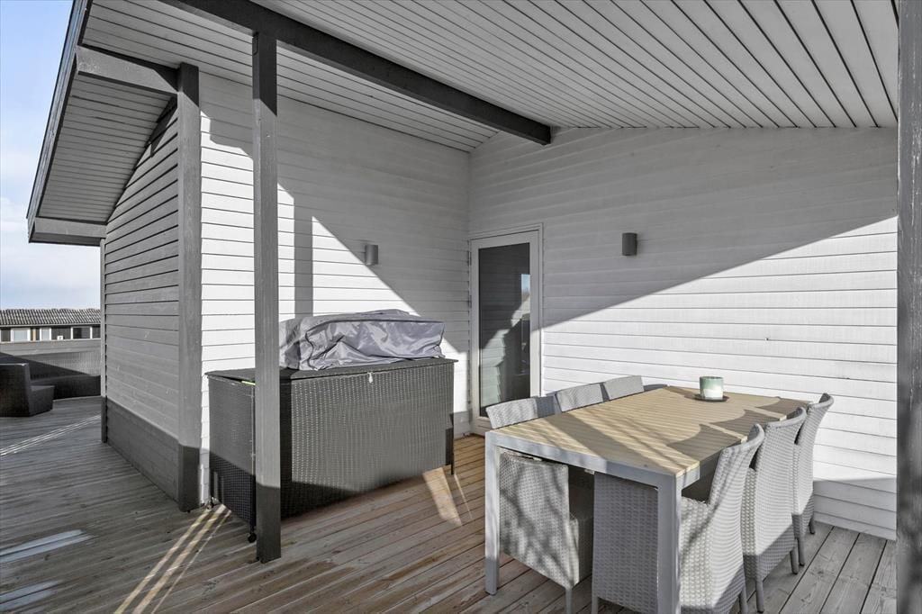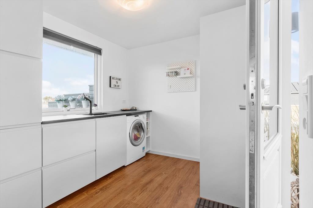 Stelle dir vor, du wachst morgens in dem Bewusstsein auf, dass nur 350 Meter von deinem Bett entfernt, die Wellen sanft an den Strand rollen! Dieses helle, moderne Ferienhaus wurde im Jahr 2018 umfassend renoviert und bildet den perfekten Rahmen für einen erholsamen Urlaub, in dem du weit abseits der Alltagsroutine die Seele baumeln lassen kannst. Hinter dem Eingangs- und Hauswirtschaftsbereich empfängt dich der offen kombinierte Küchen-, Wohn- und Essbereich, in dem du dich vom ersten Moment an heimisch und wohlfühlst. Die Küche bietet alles, was du dafür benötigst, regionale, frische Produkte in köstlichste Mahlzeiten zu verwandeln. Vom Wohnraum und Essbereich aus gelangst du auf die große Terrasse, auf der du mit Meerblick verwöhnt wirst. Die vier richtig schönen Schlafräume bieten tagsüber angenehme Rückzugsmöglichkeiten und nachts wohltuenden Schlaf. Alle Schlafräume beinhalten jeweils ein Doppelbett. Nach einem langen, erlebnisreichen Tag sorgt der im ansprechenden Badezimmer platzierte Whirlpool für maximale Erholung und Entspannung. Praktischerweise stehen im Hauswirtschaftsbereich eine Waschmaschine und ein Wäschetrockner bereit.