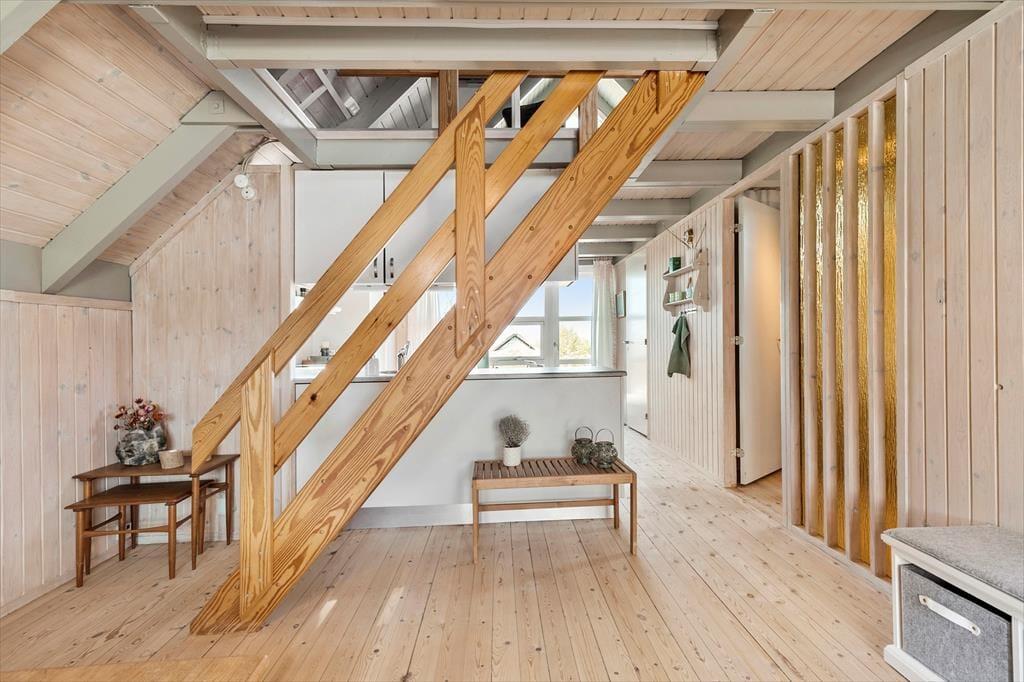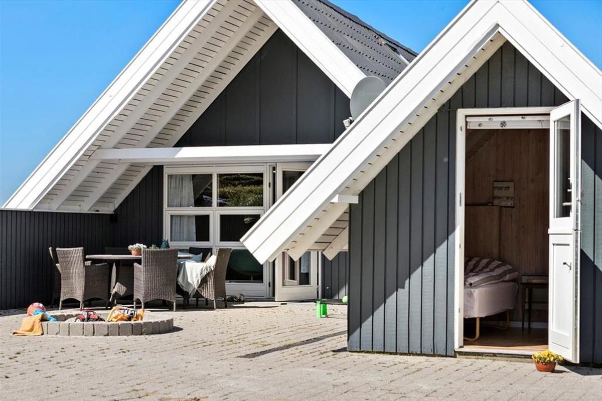 Tretet ein in diese gemütliche Familienoase, in der jeder Winkel des gepflegten Hauses eine tolle Kulisse für wertvolles Zusammensein mit der Familie bietet. Ein wahrer Rückzugsort, in dem man schnell zur Ruhe kommt, wenn man von der schönen Atmosphäre umarmt wird, die Erinnerungen an die Ferien in einem Ferienhaus in der Kindheit wachruft. Bereitet euch auf den Tag vor, indem ihr euch im gepflegten Badezimmer frisch duschen könnt, bevor ihr auf der Morgenterrasse einen Kaffee aus der Küche zu euch nehmt. Hier ist der Sonnenschirm aufgespannt und die Kinder spielen bereits im Sandkasten und freuen sich auf den Strandausflug am Nachmittag. Es erwartet euch eine fröhliche, helle und gemütliche Küche mit dem Esstisch in der Nähe und ein Zugang zur schönen Abendterrasse und 2 Schlafzimmern. Im Wohnzimmer oben tanzt die Sonne durch die Fenster und man genießt den Blick und den Sonnenuntergang über dem Meer in der "Erwachsenenecke", nachdem die müden Ferienkinder in einem der Zimmer schlafen. Am anderen Ende des Wohnzimmers im Obergeschoss befindet sich eine gemütliche Fernsehecke mit einem Schlafsofa. Außerdem gibt es einen gemütlichen Anbau mit zwei guten Einzelbetten.