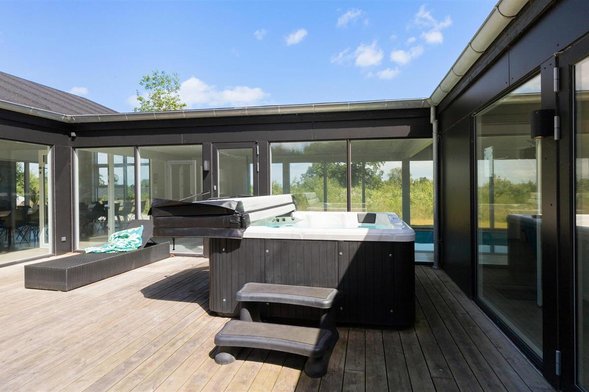 Luxe vakantiehuis met binnenzwembad en whirlpools nabij Bønnerup Strand, ideaal voor grote groepen en gezinnen.