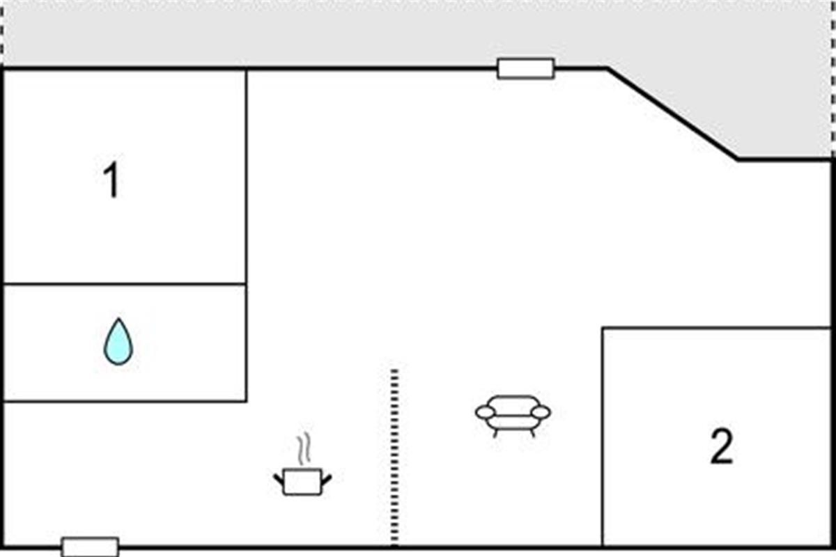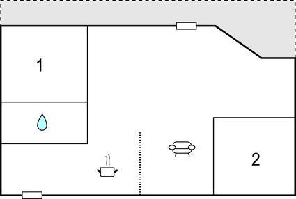 Woonkamer met open keuken - 2 Slaapplaatsen. (Opklapbed(den) of matras(sen)).