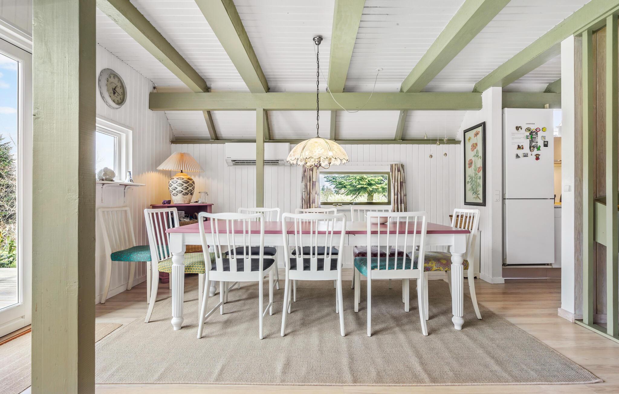 U kunt met het hele gezin ontspannen in de lichte kamers van het comfortabele huis. De huiselijke inrichting en opvallende houten balken zorgen voor een gezellige sfeer. Hier kunt u genieten van een prachtig uitzicht op het omliggende groen zodra u wakker wordt. Kook samen, geniet van maaltijden aan de eettafel, die ook geschikt is voor een leuke spelletjesavond. Maak het je later comfortabel op de bank, na een heerlijke vakantiedag aan het strand of met een excursie kun je 's avonds de kachel opstoken en een gezellige film- of spelletjesavond houden.
