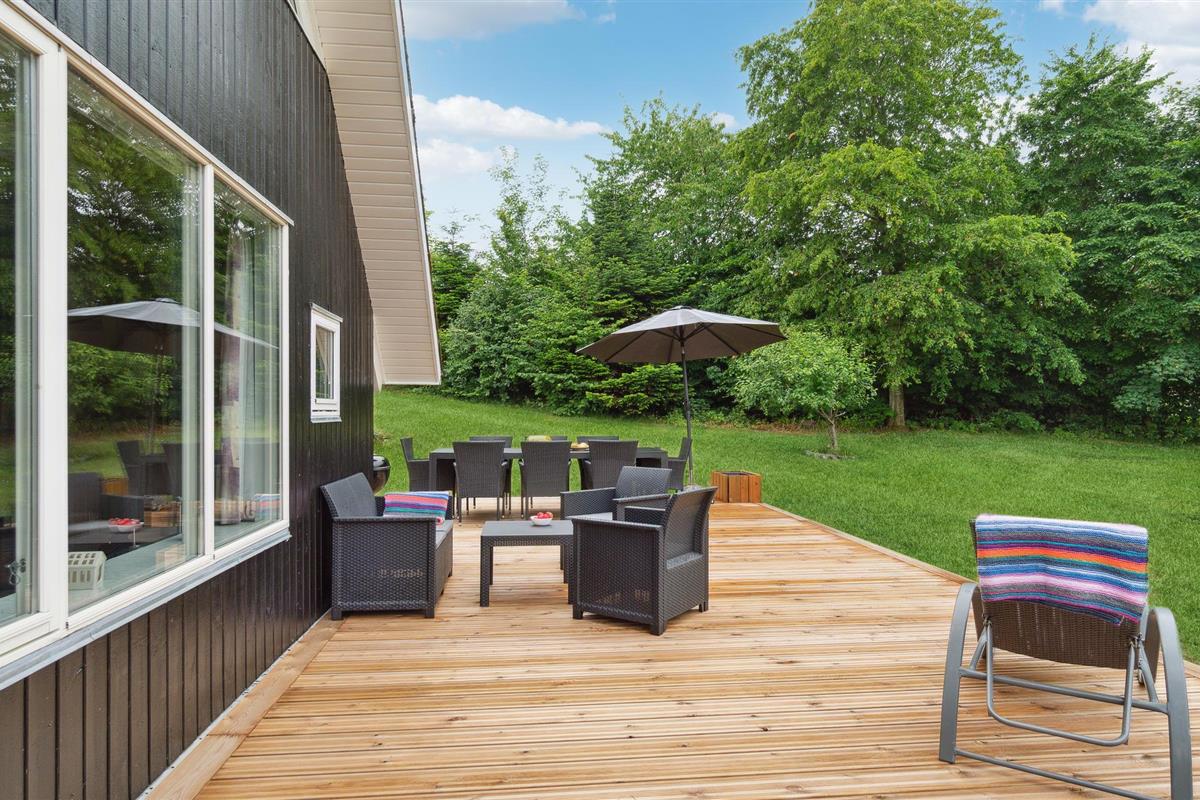 De buitenruimte van het vakantiehuis nodigt u uit om talloze heerlijke uren buiten door te brengen. Geniet van de zon op het terras terwijl uw kinderen rondspringen op het terrein en ontspan met volle teugen.
