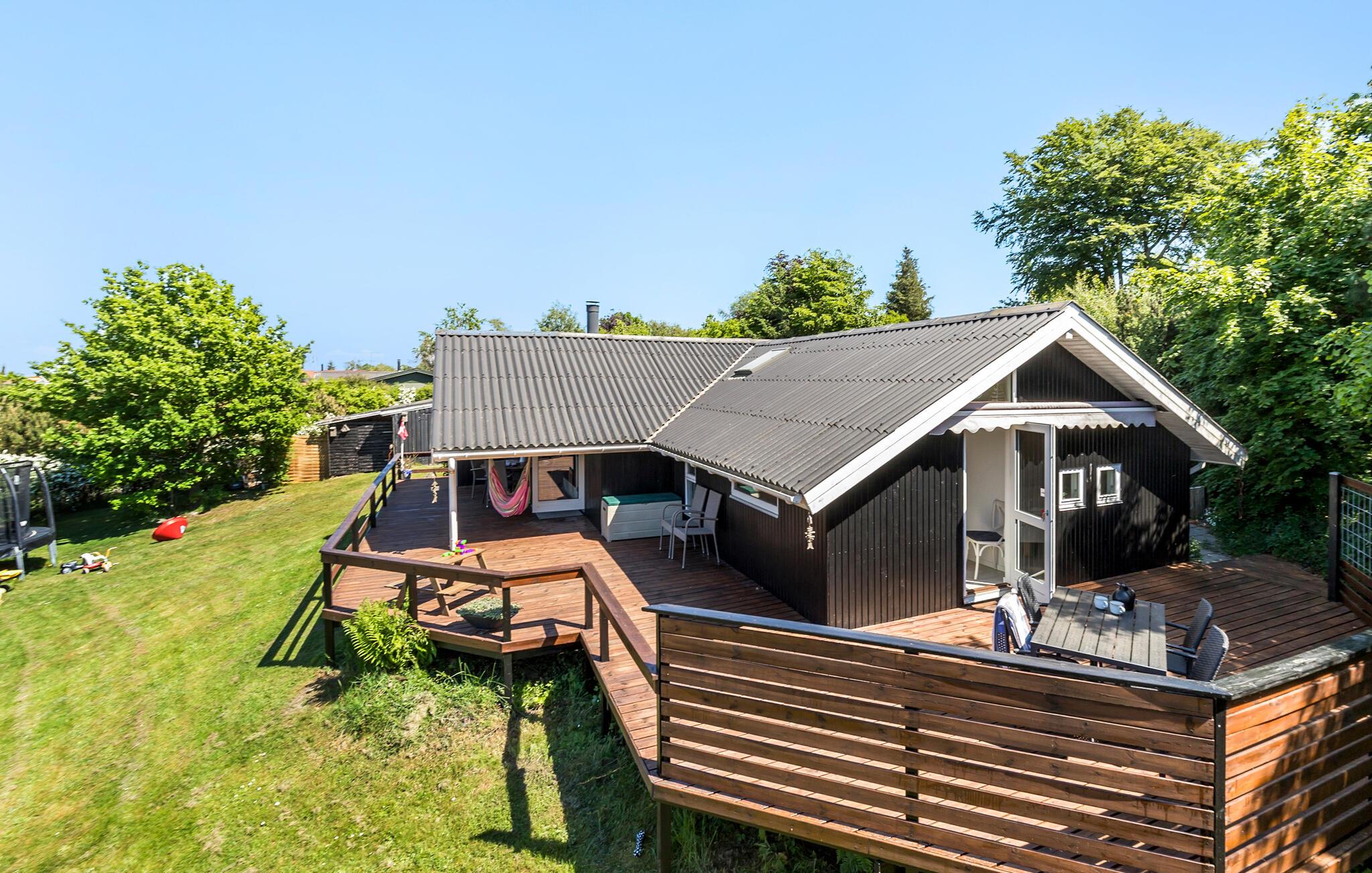 Je kunt ook de vele attracties in de omgeving verkennen. Djurs Sommerland, een van de grootste pretparken in Denemarken, biedt spannende attracties en waterattracties voor het hele gezin. Geschiedenisliefhebbers moeten een bezoek brengen aan het indrukwekkende kasteel Rosenholm. Natuurliefhebbers kunnen hun hart ophalen in het Nationaal Park Mols Bjerge, waar het indrukwekkende landschap uitnodigt tot uitgebreide wandelingen en ontdekkingstochten.