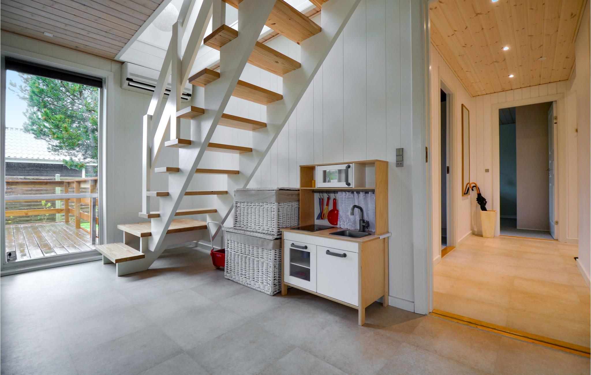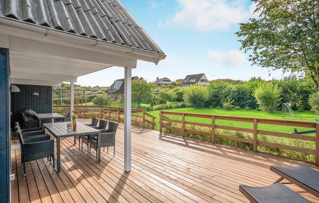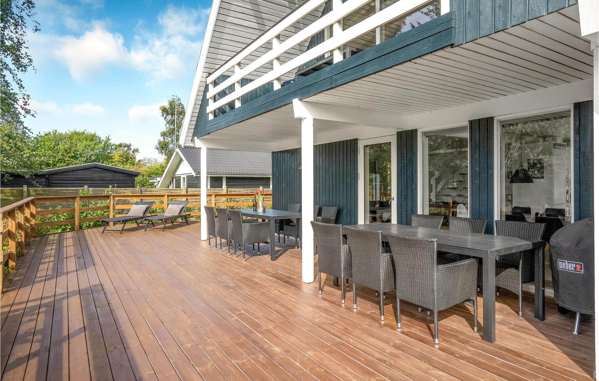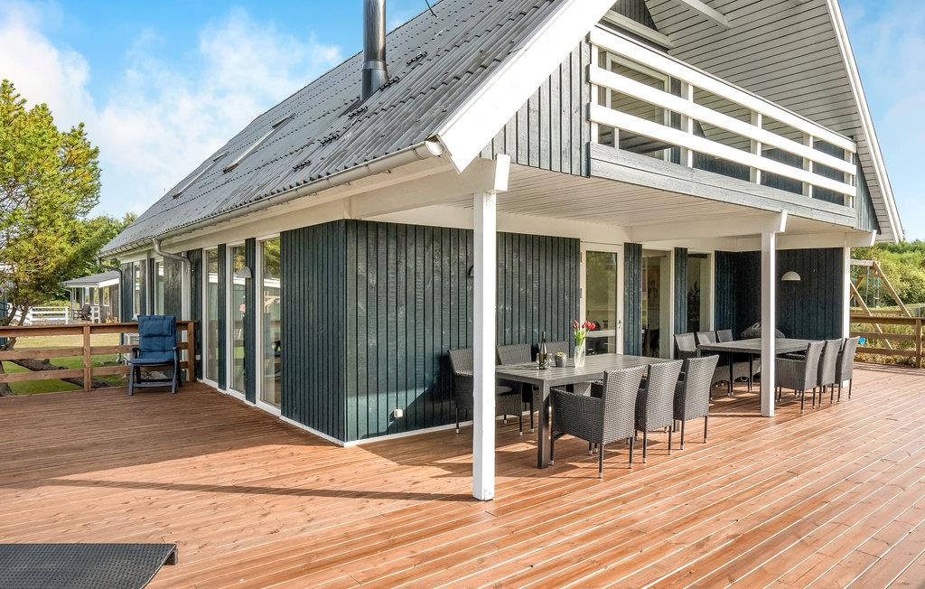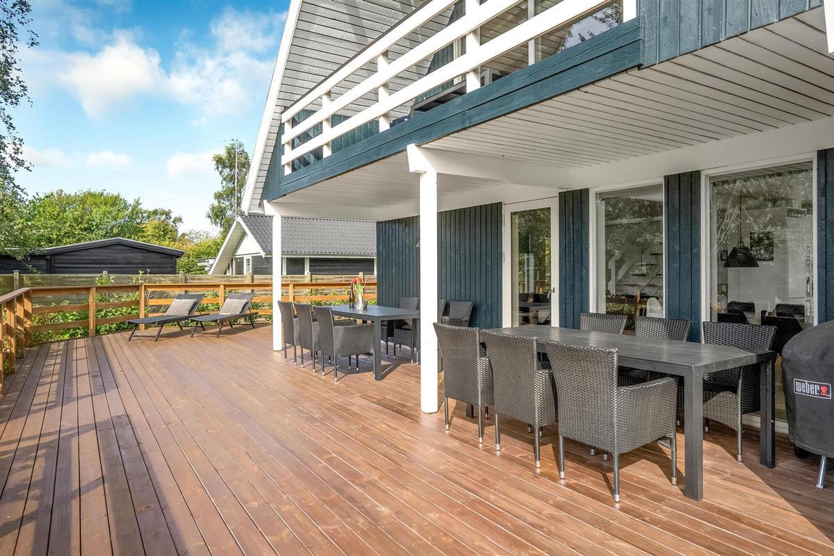 In Bønnerup vindt u dit ongewoon mooie vakantiehuis op 2 verdiepingen met een activiteitenruimte op de 1e verdieping waar u kunt biljarten, tafelvoetballen of airhockeyen. Het huis is uitgerust met 4 mooie slaapkamers, waarvan één op de 1e verdieping, samen met een tv-kamer. Op de begane grond bevindt zich de grote, goed uitgeruste woonkamer, die in open verbinding staat met de keuken. De prachtige houtkachel en een eettafel met plaats voor alle gasten zijn hier ook te vinden. Er zijn ook 2 prachtige badkamers - een met infrarood sauna en whirlpool voor 2 personen. Geniet van uw vakantie op het enorme houten terras, waar u op het overdekte gedeelte tot laat in de avond kunt genieten van mooie zomeravonden. Het huis heeft glasvezel internet.