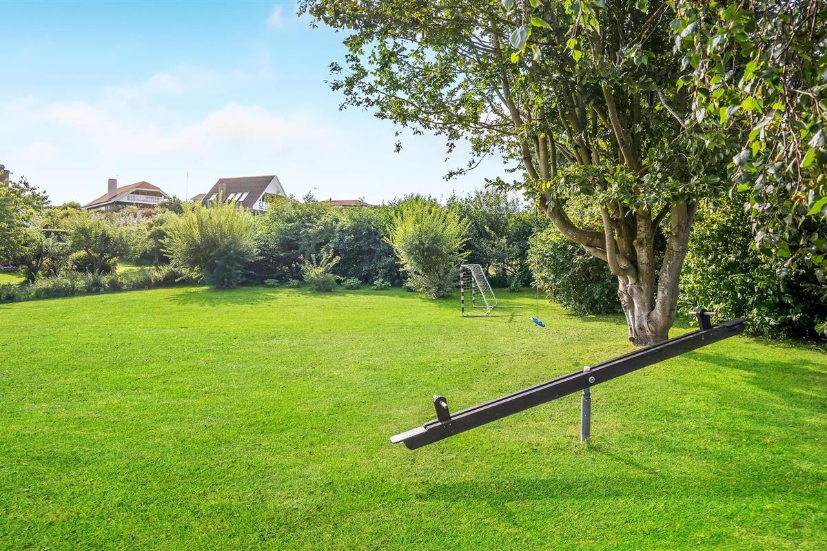 Het huis ligt op een groot perceel met gazon en speeltoestellen voor de kinderen.