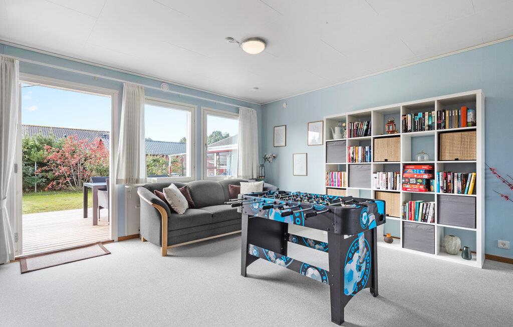 Dit mooie vakantiehuis ligt op slechts een korte wandeling van het zandstrand in Bönnerup. Je kunt het jezelf hier gemakkelijk maken en ontspannen met je familie of een paar vrienden. Het huis heeft alles wat je maar kunt wensen en nodigt je uit om een tafelvoetbaltoernooi te spelen.