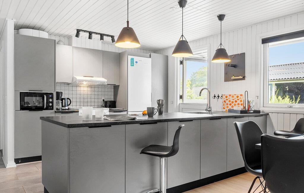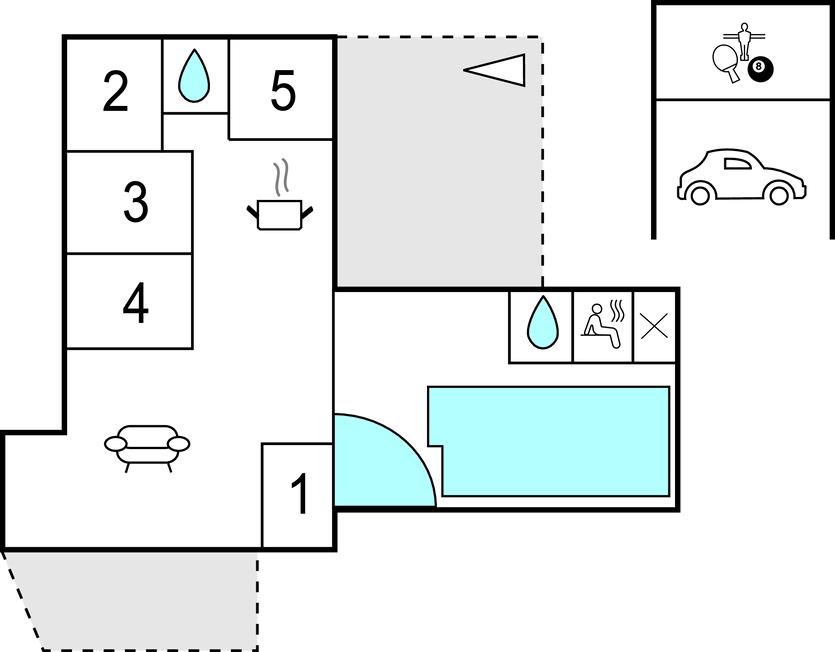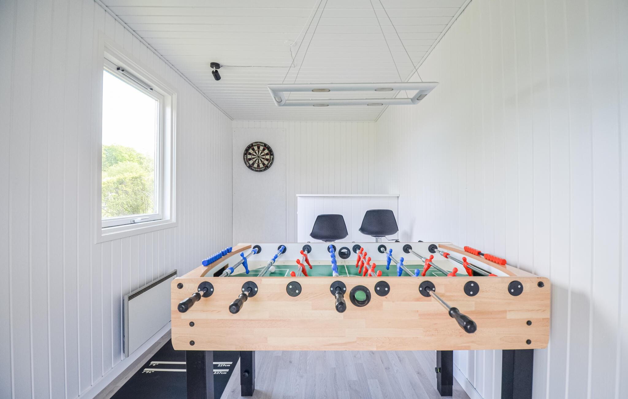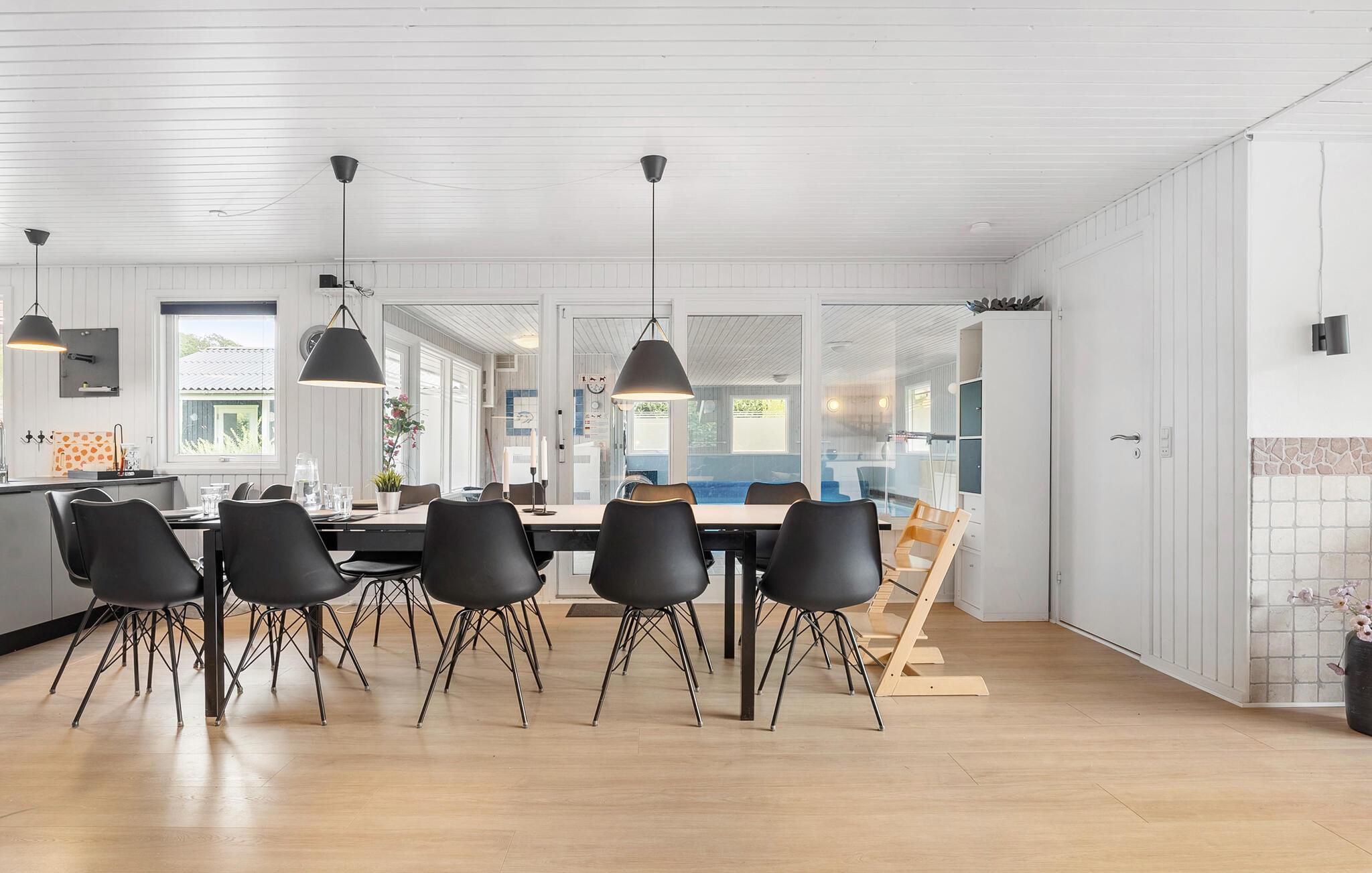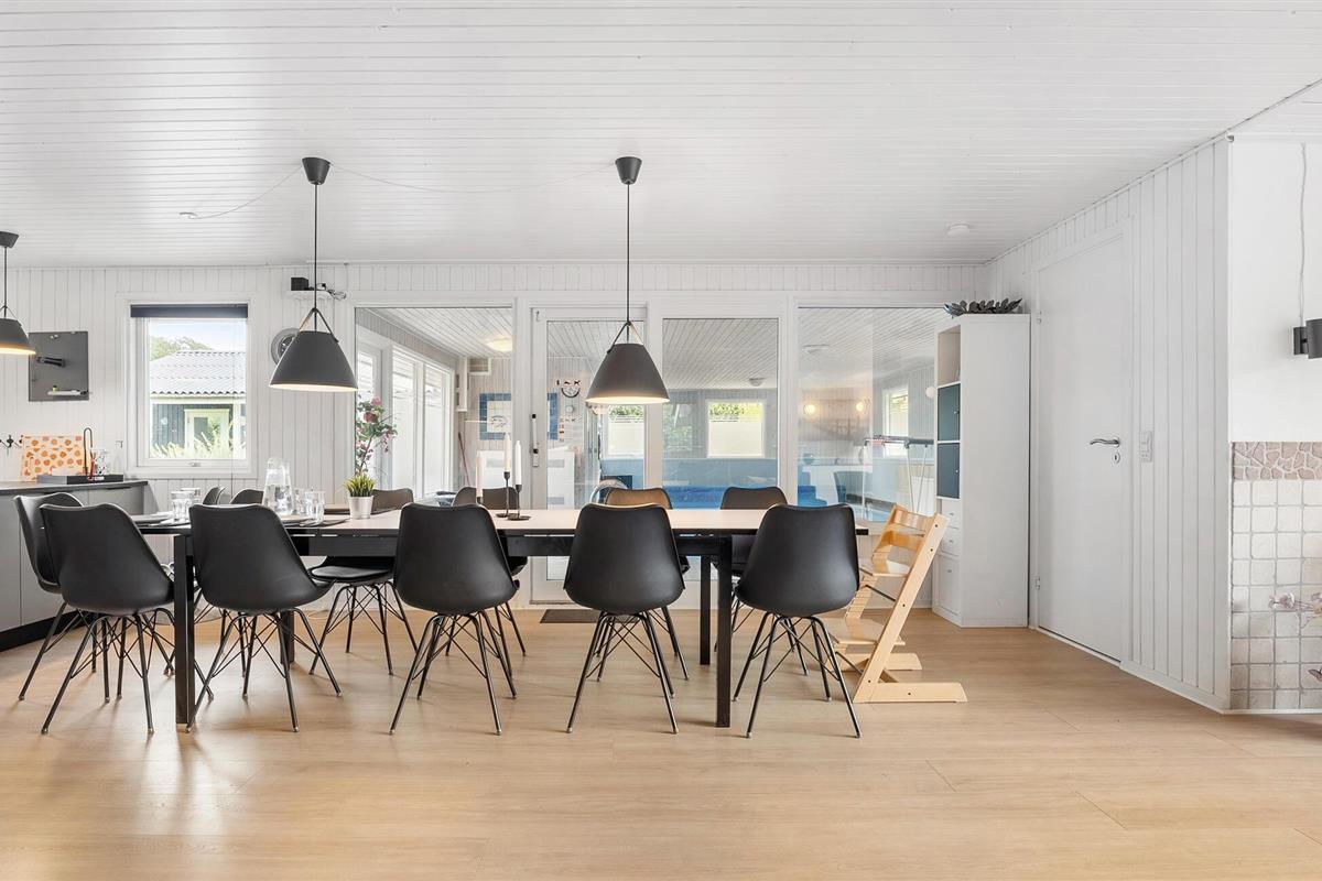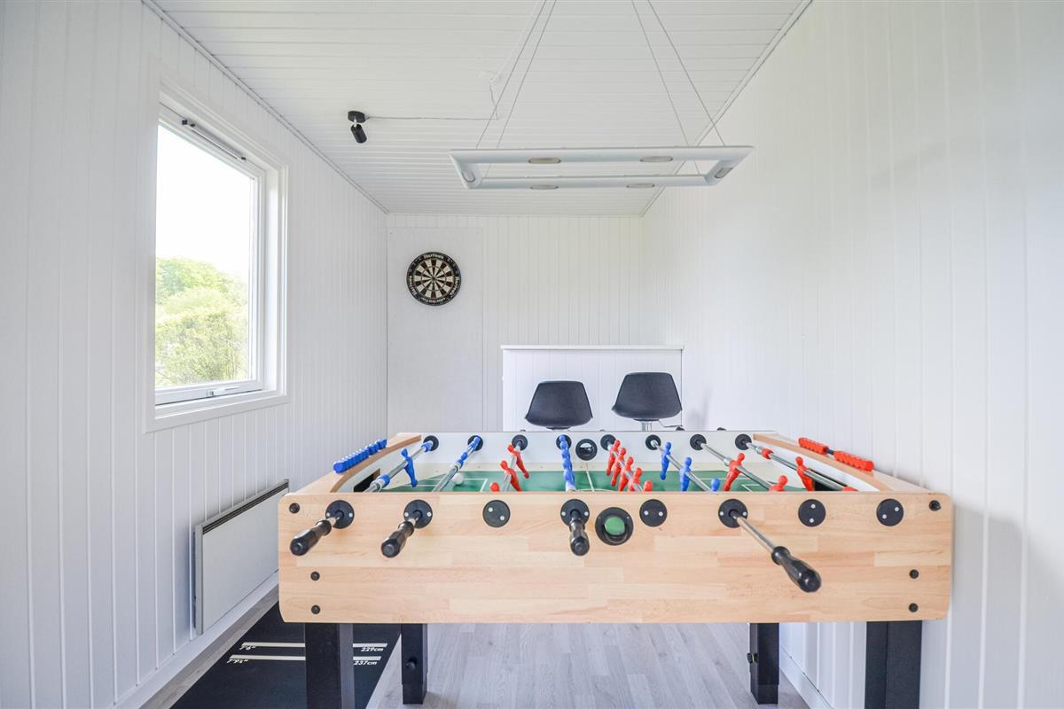 Dit mooie poolhouse is gebouwd in de buurt van het kleine vissersdorpje Bønnerup Strand. Vanaf hier is het slechts een paar minuten lopen naar het badstrand. Het huis is kleurrijk en goed ingericht en zeer geschikt voor zowel zomer- als wintervakanties, ook voor meerdere gezinnen. U kunt uw conditie op peil houden in het 32 m² grote zwembad. Na het zwemmen bieden de sauna en de whirlpool volop ontspanning. De keuken is gecombineerd met de woonkamer, waar een knapperend haardvuur voor gezelligheid zorgt. Het huis heeft in totaal 5 slaapkamers, waarvan de kamer met het stapelbed het verst verwijderd is van de woonkamer, zodat de jongste gezinsleden 's avonds ongestoord kunnen slapen. In het bijgebouw staat een tafelvoetbalspel.