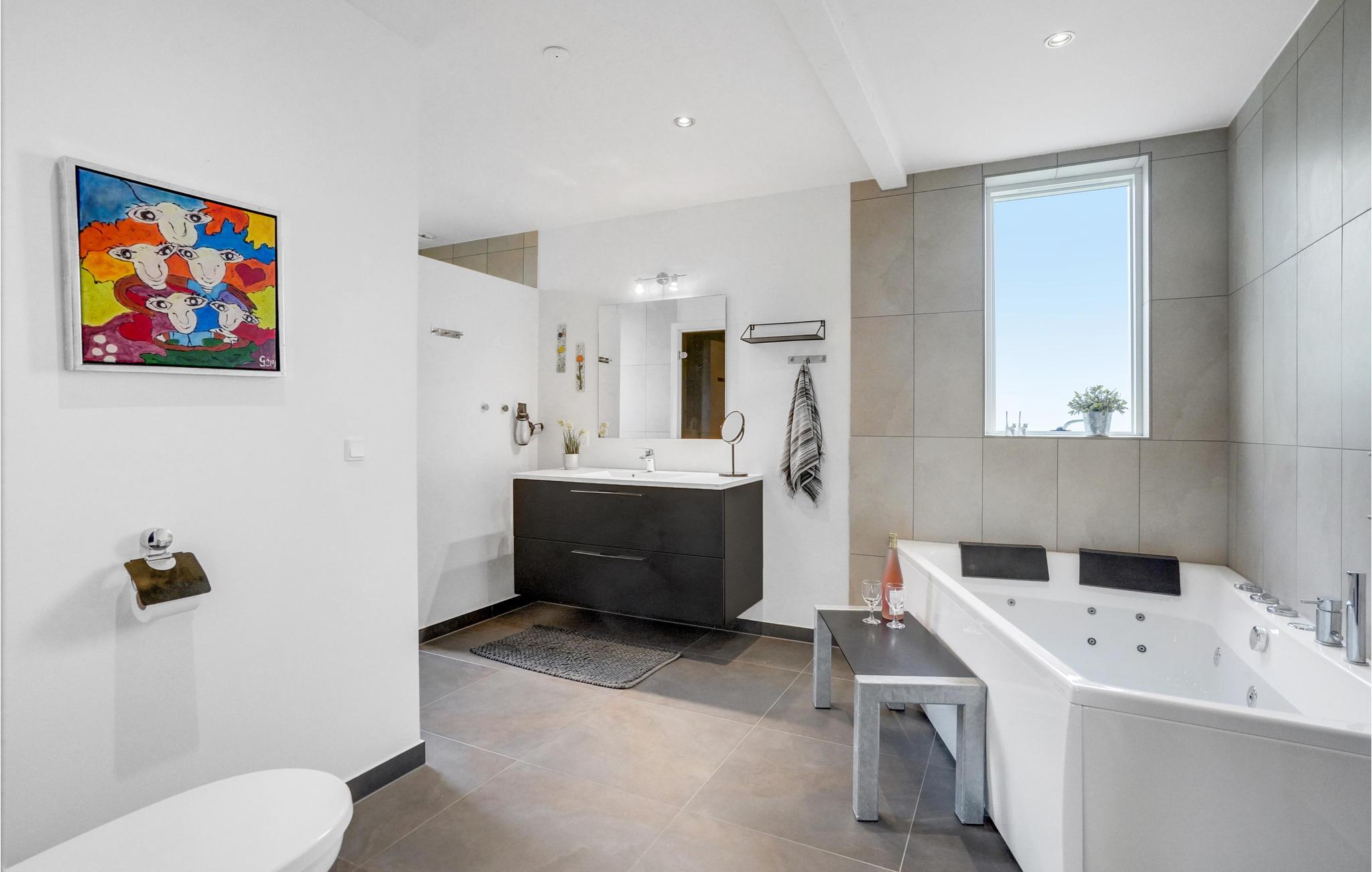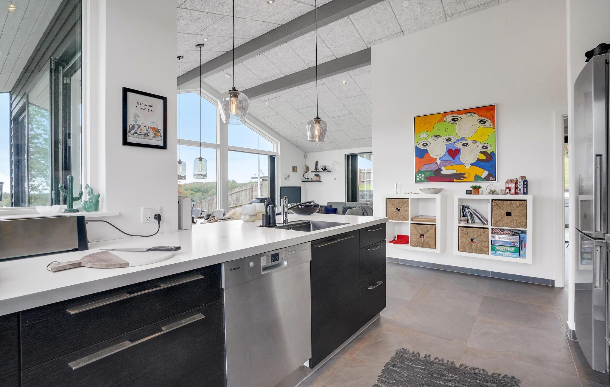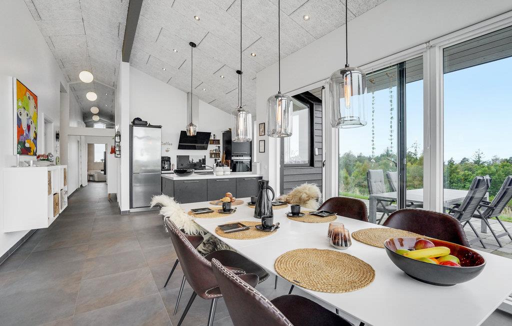 Dit prachtige onder architectuur gebouwde huis ligt op de top van een heuvel en biedt een fantastisch uitzicht op de haven van Bønnerup, het Kattegat en de molens. Vanuit het huis heb je uitzicht op het water en de prachtige omgeving. Er zijn ook verschillende terrassen waar je kunt ontspannen in het comfortabele tuinmeubilair. Bekijk vanaf hier de vissersboten die 's ochtends aankomen. De activiteitenruimte is uitgerust met een pooltafel en tafeltennistafel om het hele gezin te vermaken.
