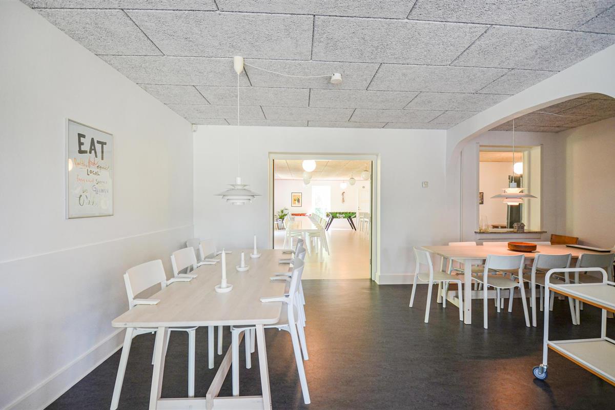 Het grote vakantiehuis in Bønnerup was vroeger een kleuterschool. Het huis is gemoderniseerd en bestaat uit een keuken, eetkamer en grote woonkamer waar je zelfs kunt dansen. Het huis is omheind en voorzien van speelgoed en een overdekte barbecuehut. Een perfect huis voor grotere groepen. Als je nog meer ruimte nodig hebt, ligt E5126 voor 22 personen op slechts 200 meter afstand. Bønnerup Havn heeft veel vissersboten in de buurt van de huizen, en je kunt er ook verse vis kopen. Je kunt ook vissen vanaf de pier. Er is hier ook een goed strand. Ontdek de grote bosgebieden hier op bewegwijzerde paden en maak met het hele gezin een uitstapje naar Djurs Sommerland.