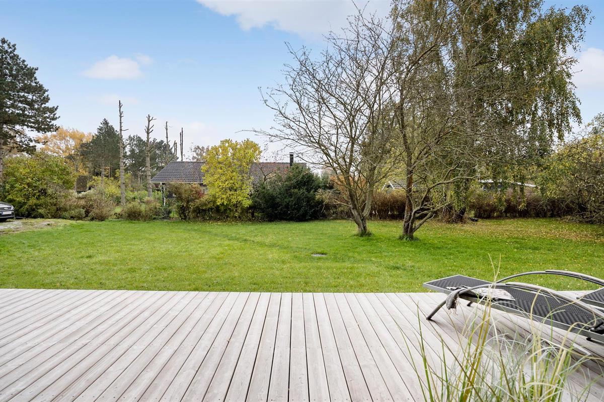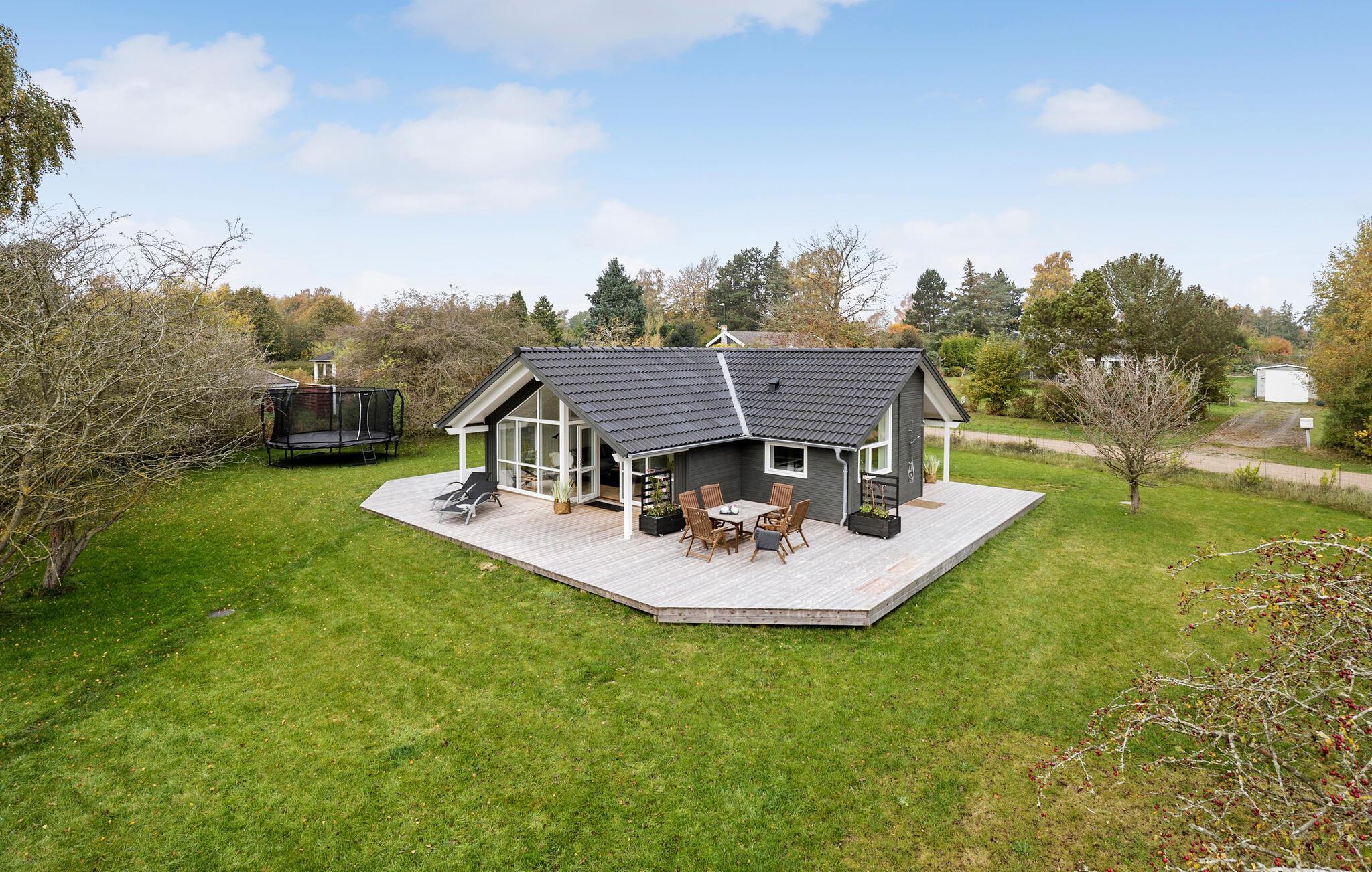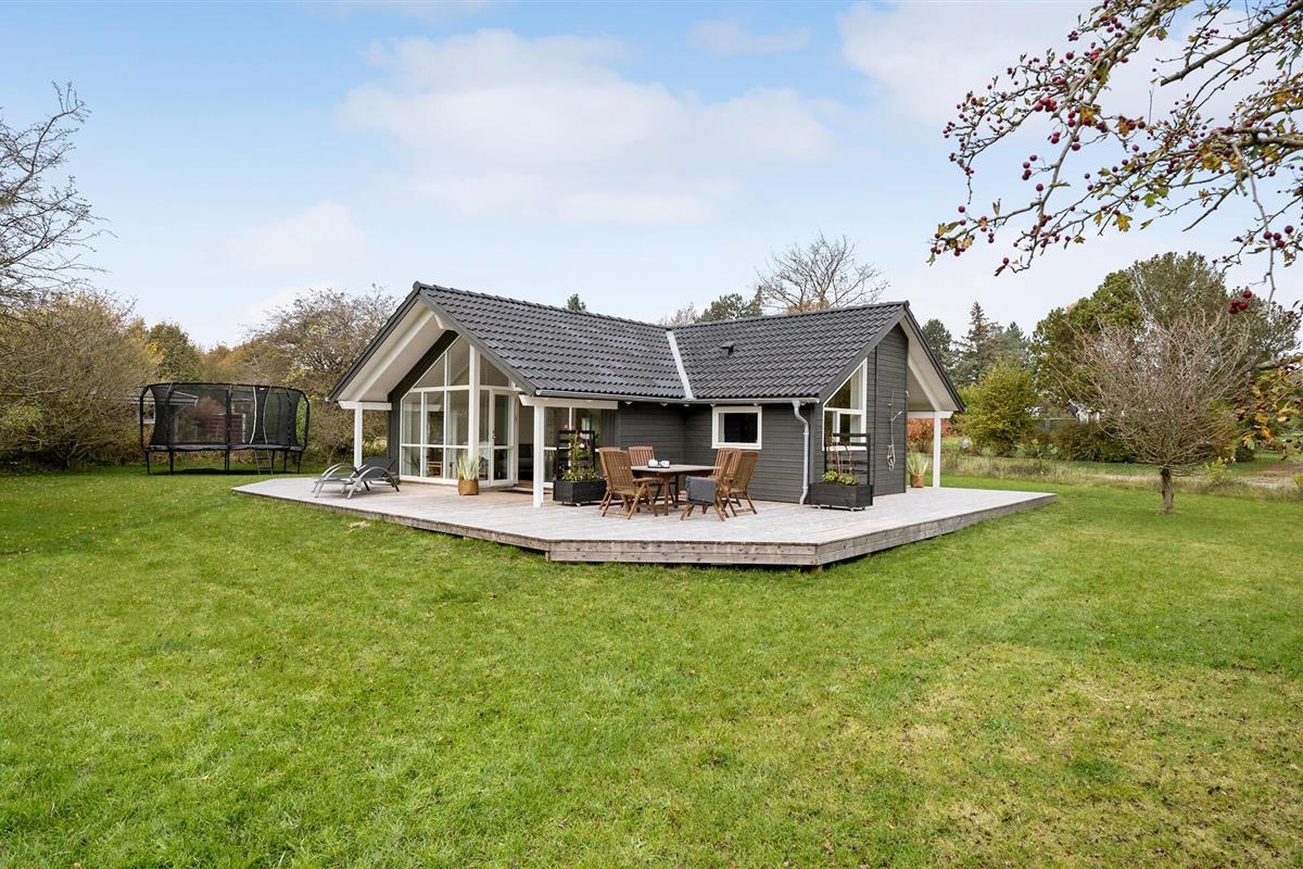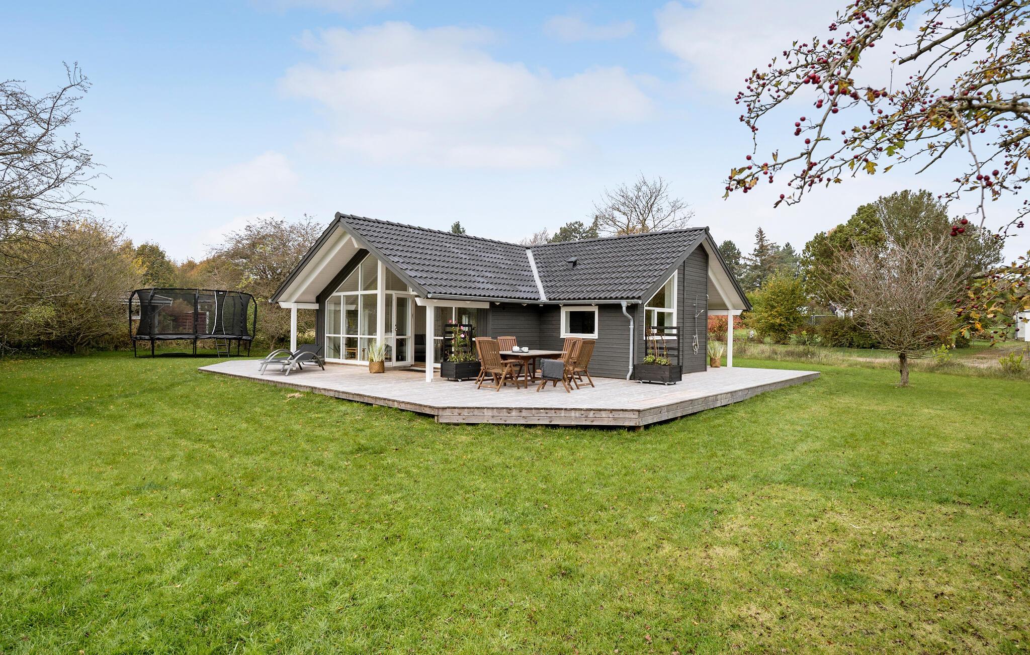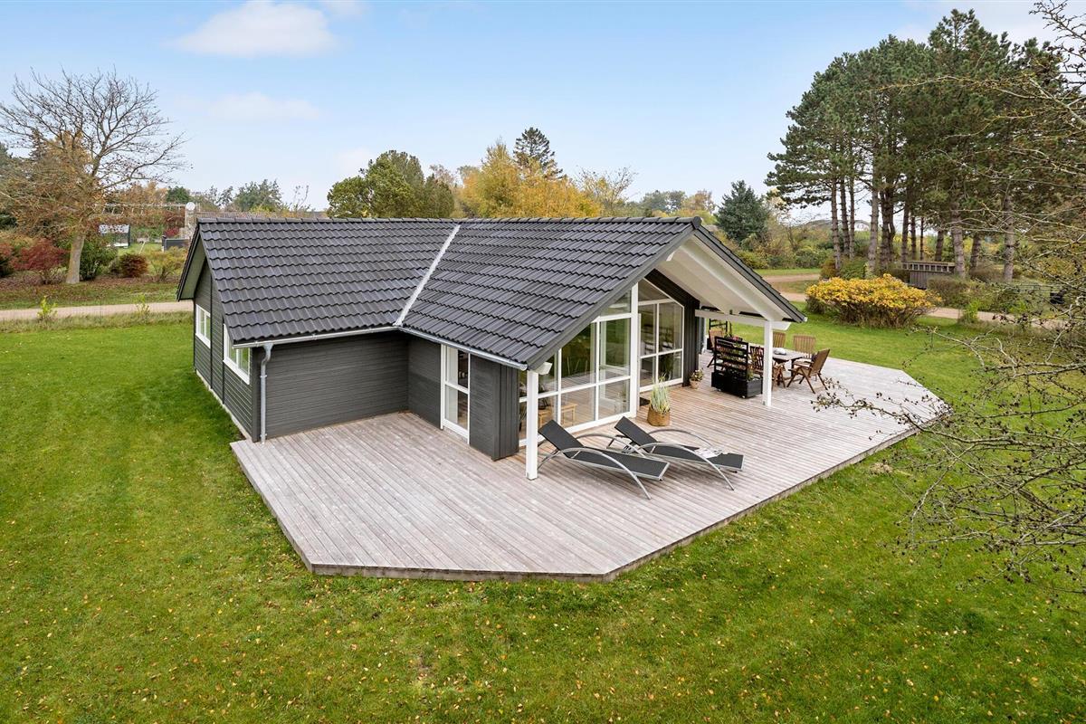 Comfortabel vakantiehuis met ruim houten terras nabij Bønsvig Strand, ideaal voor ontspannen en genieten van natuur en cultuur.
