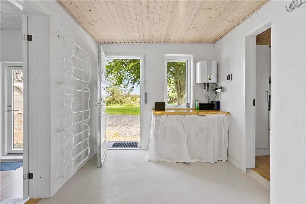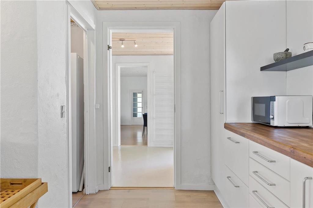 Rund um das Ferienhaus erstrecken sich weite Felder, sodass es ruhig und abgelegen liegt – mit gutem Abstand zu den Nachbarn. Gleichzeitig gibt es in der Umgebung viel zu erleben, wenn Sie während Ihres Urlaubs einen Ausflug unternehmen möchten. Die nächste Attraktion ist das wunderschöne Kloster Børglum, das seit Jahrhunderten auf dem Børglum Bakke steht. Auch der Family Farm Fun Park ist nur wenige Kilometer entfernt, und wenn Sie Golf spielen, können Sie schnell zum Golfclub Løkken fahren. Wenn Sie die Nordsee reizt, können Sie in etwa zehn Minuten nach Løkken fahren, wo Sie nicht zuletzt den herrlichen, breiten Sandstrand finden. Nach einem erfrischenden Bad und einem Spaziergang auf der Mole können Sie durch die gemütlichen Straßen der Stadt schlendern, um Eis zu essen oder in einem Restaurant einzukehren.