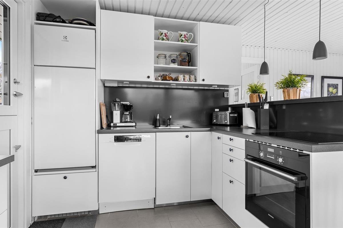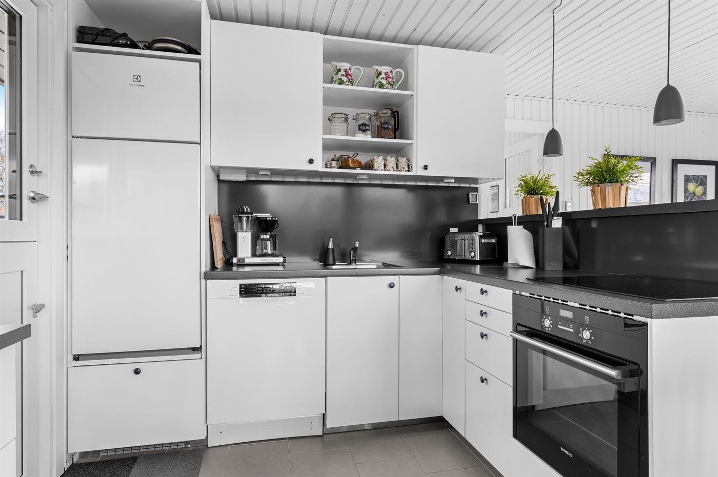De keuken is uitgerust met koelkast Er is 4 inductiekookplaten, heteluchtoven, magnetron en vaatwasser.