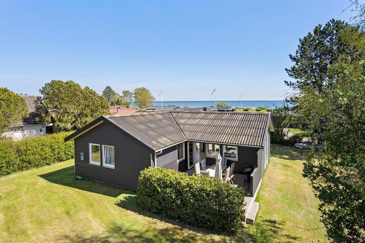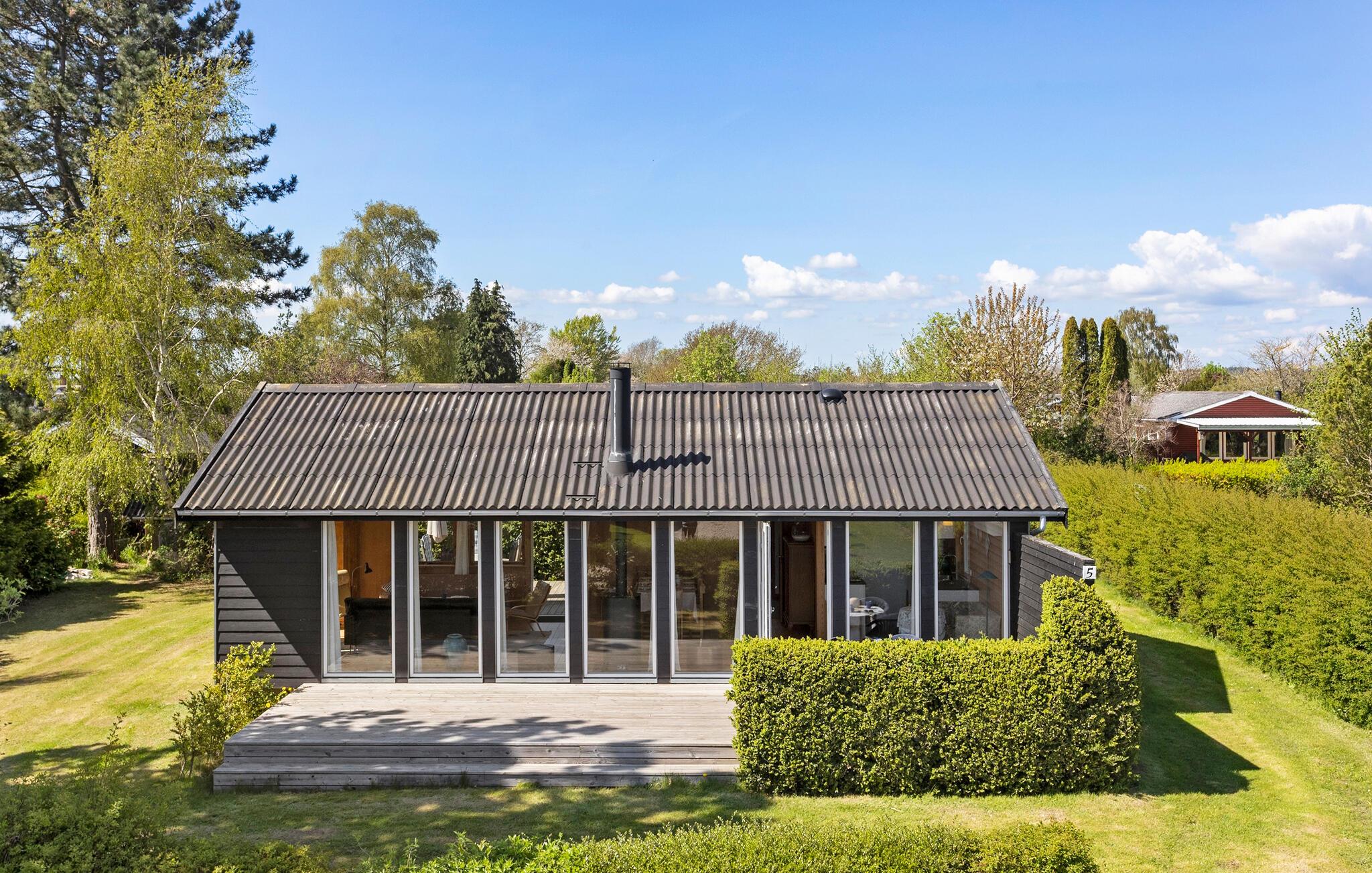 Ontdek dit gezellige vakantiehuis met zeezicht, houtkachel en een ruim terras in Hesselager, Denemarken.