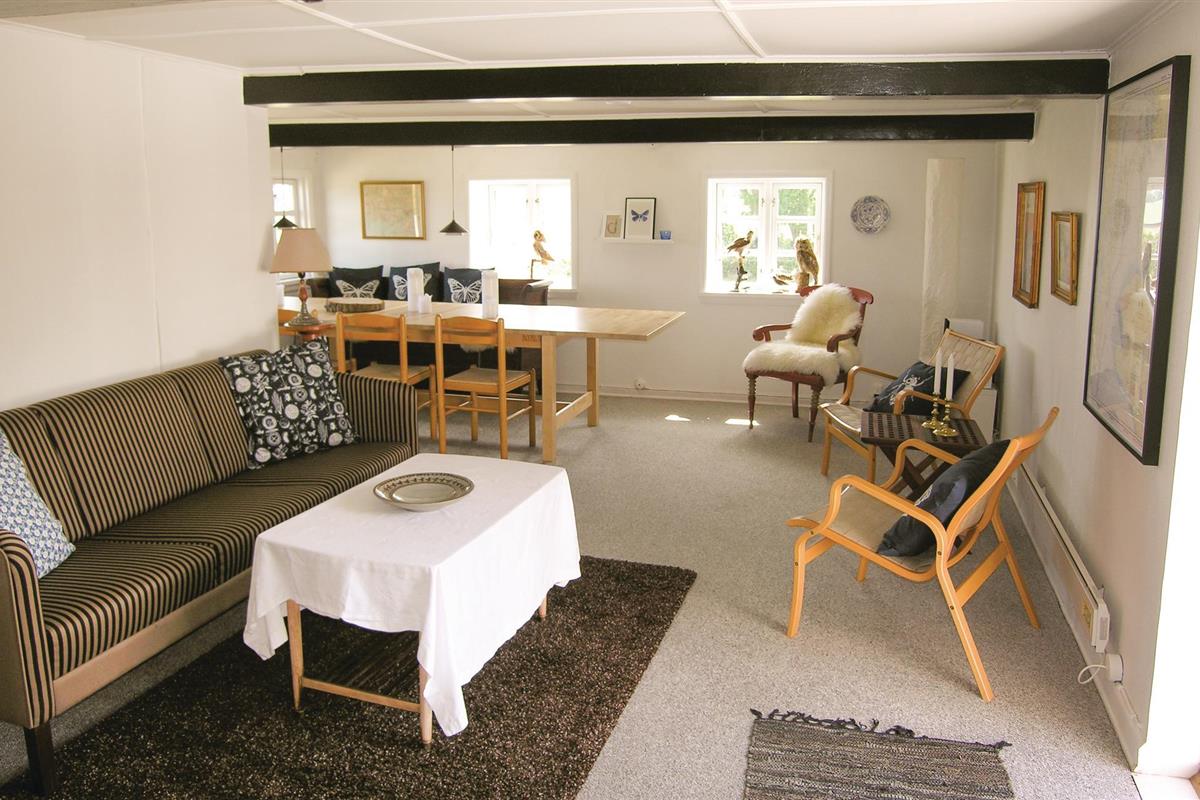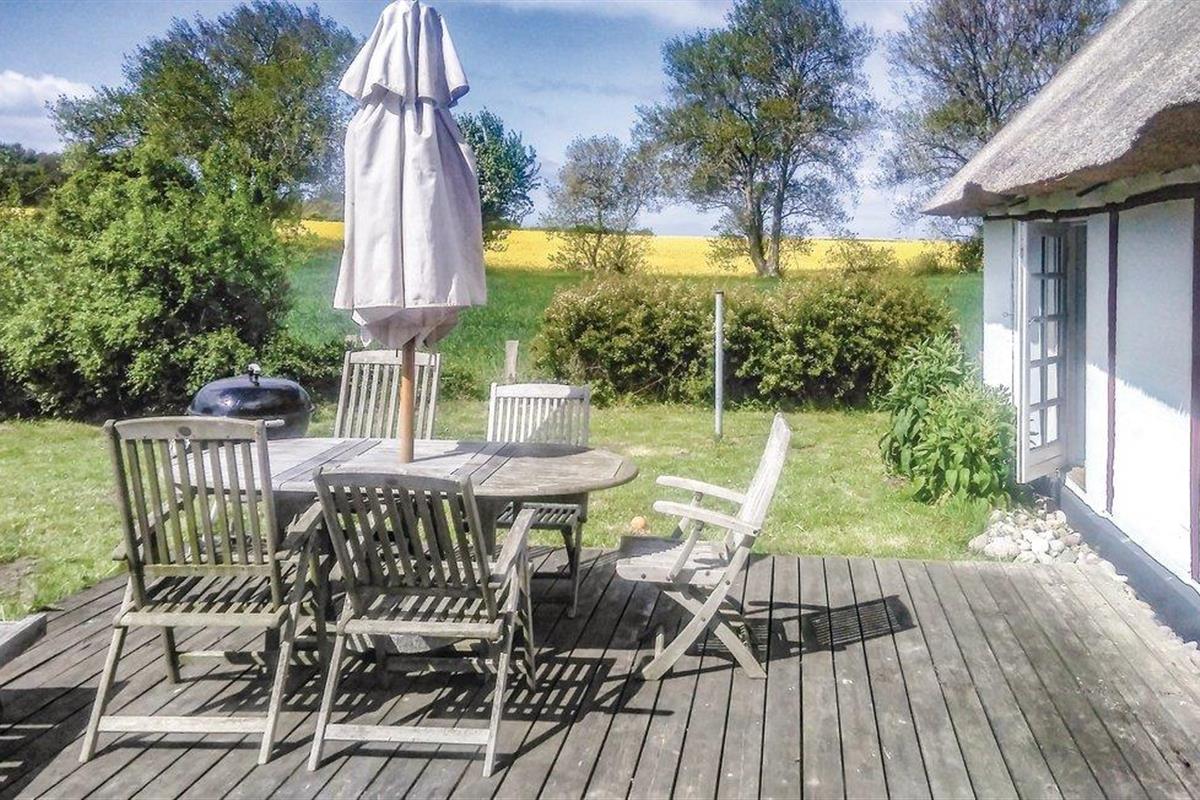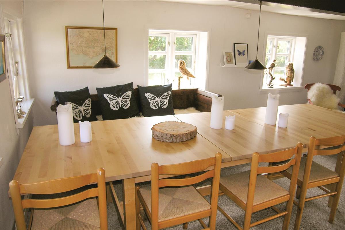 Een idyllisch vakwerkhuis met rieten dak, als laatste huis in de straat, in een prachtige en natuurlijke omgeving met uitzicht op de nabijgelegen zee in Langelandsbælt en op het omringende bos, moeras en open velden. Het huisje is charmant gerenoveerd met respect voor de oorspronkelijke stijl van het huis, zoals de zichtbare plafondbalken en de variërende plafondhoogte in het huis (deels vrij laag). Vanuit de woonkamer komt u op het heerlijke terras. Vanaf hier kunt u het drukke scheepvaartverkeer in Langelangsbælt bekijken. Op de velden en in het bos bij het huis is er een rijk vogel- en wildleven dat u kunt volgen. Op het strand onder het huis heeft u zeer goede vis- en onderwaterjachtmogelijkheden. Het huis straalt rust uit en is een ware parel voor natuurliefhebbers. Hier verblijft u op zuidelijk Langeland, op slechts 6,8 km van de golfbaan van het eiland. In Ristinge vindt u een zandstrand op slechts 11 km afstand, en het is 6,5 km naar het strand van Bagenkop. Daar kunt u ook de gezellige sfeer proeven in de vissershaven en de sporthaven. Er zijn ook wilde paarden in de omgeving, het Koude Oorlogsmuseum in Langelandsfort, een uitkijkheuvel, een vogelreservaat, prachtige natuur en kliffen.