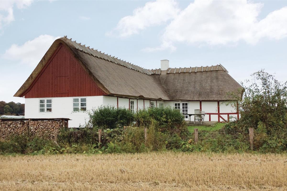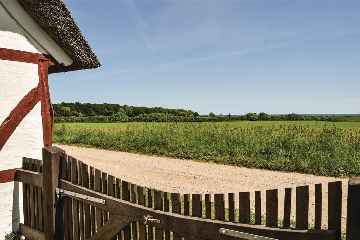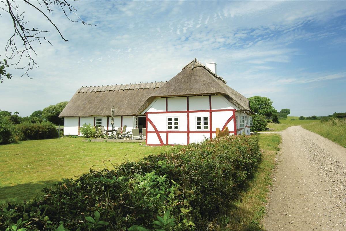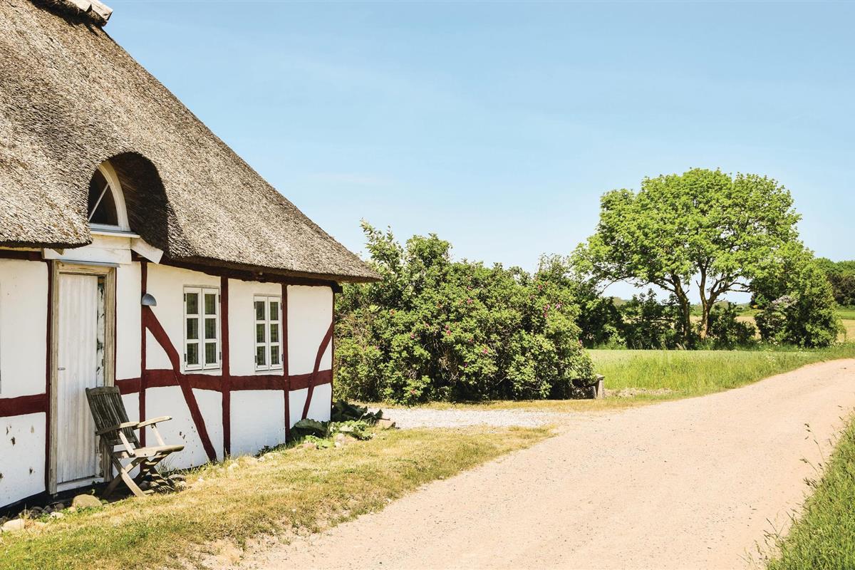Charmant vakwerkhuis met rieten dak en zeezicht in een natuurlijke omgeving op Langeland.