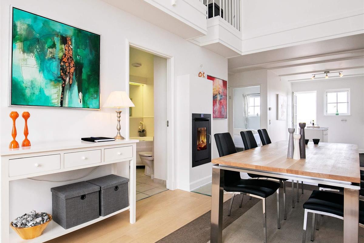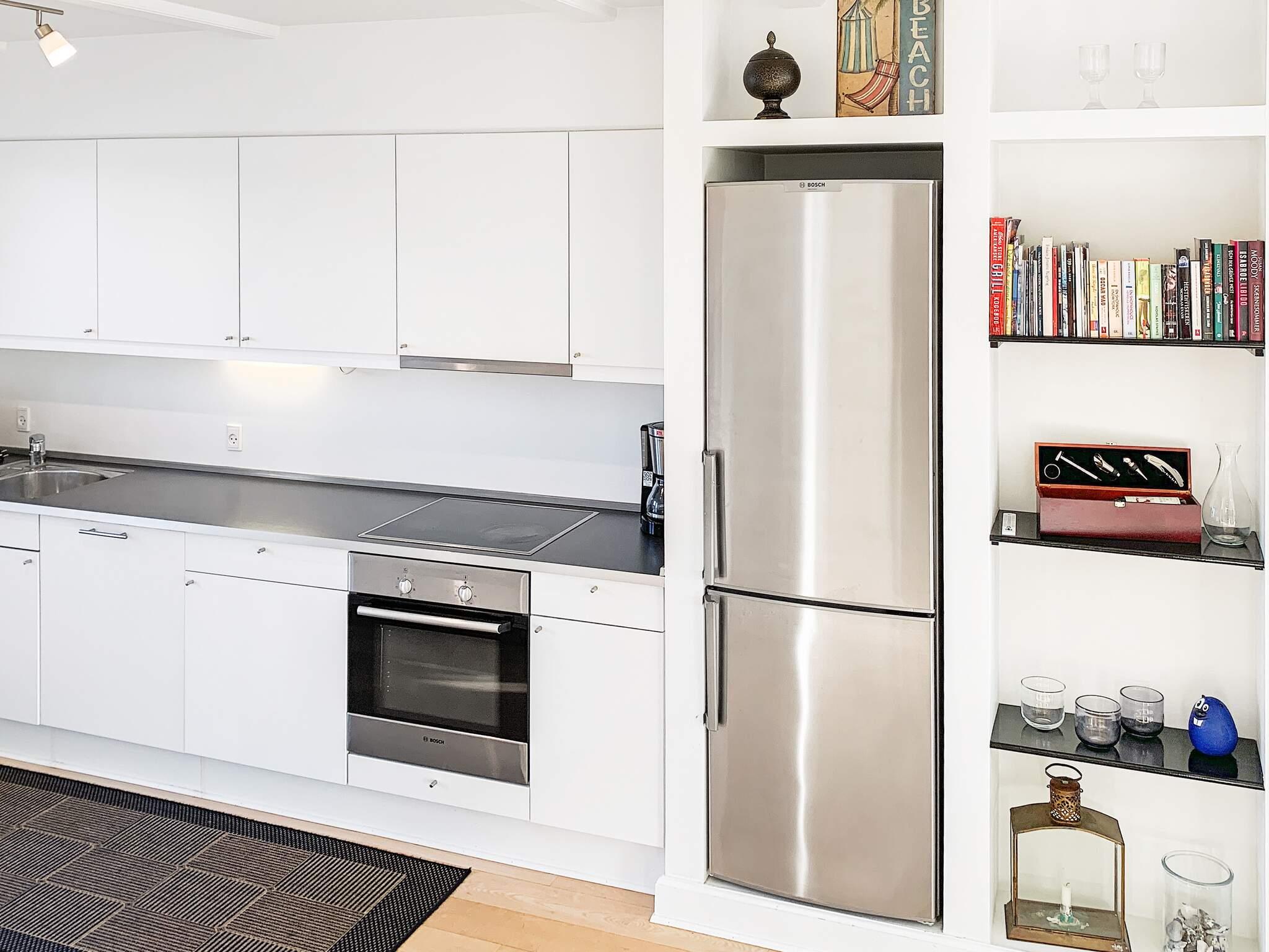 Die Wohnung bietet 117 m2 Wohnfläche und befindet sich in einem Haus im typischen Skagen-Stil. Es sind nur ca. 10 m zum kinderfreundlichen Strandufer mit Steg. In der Umgebung findet man auch einige der besten Meerforellenreviere Dänemarks und kann im Hafen Boote für Angelausflüge mieten.