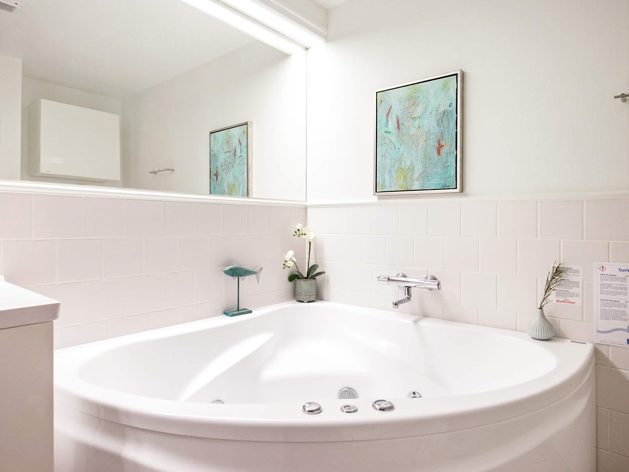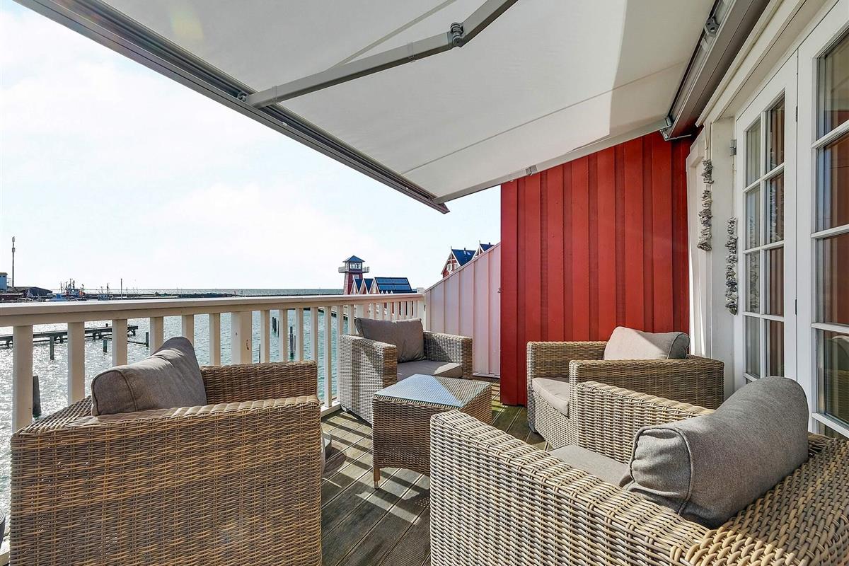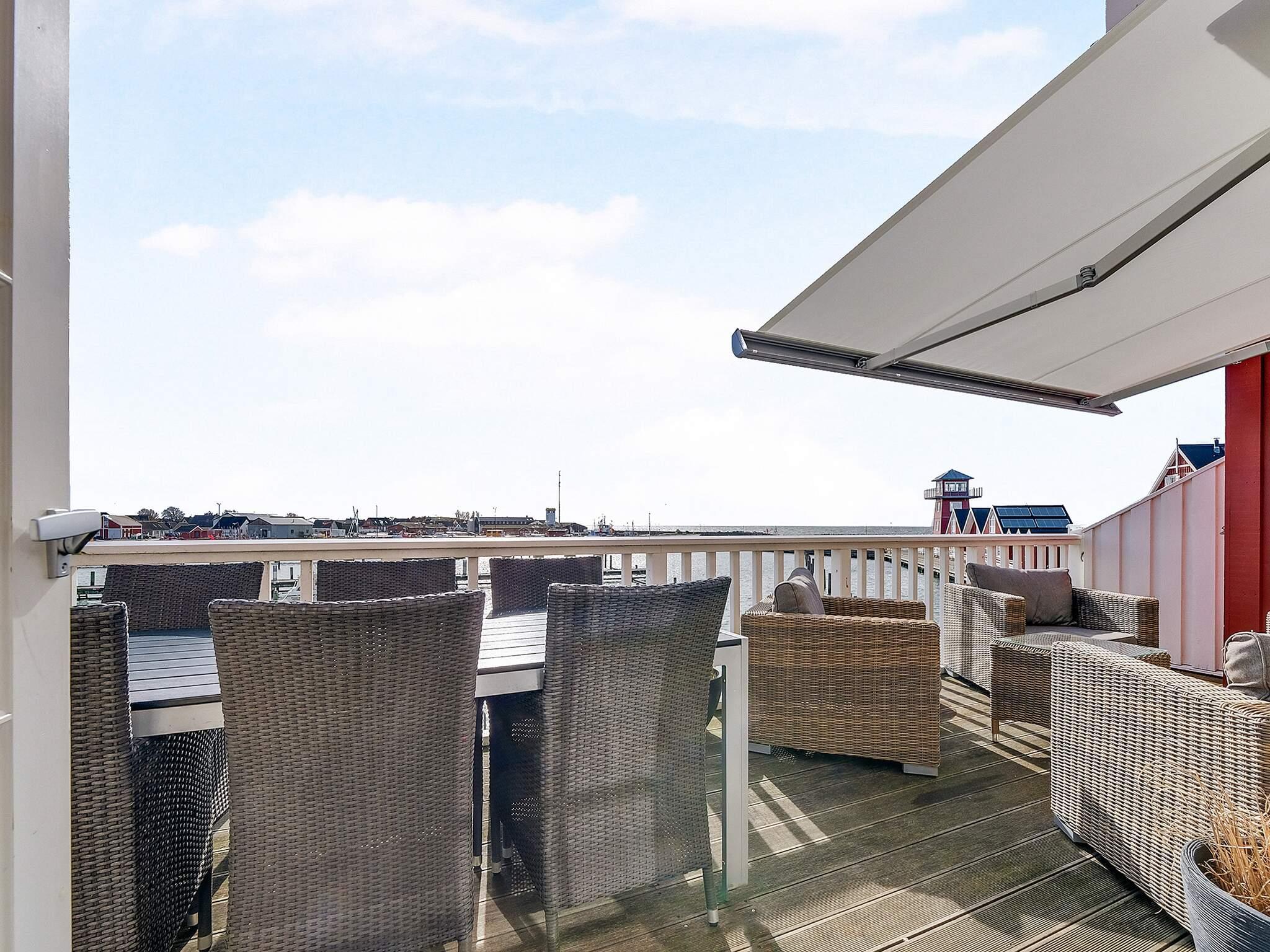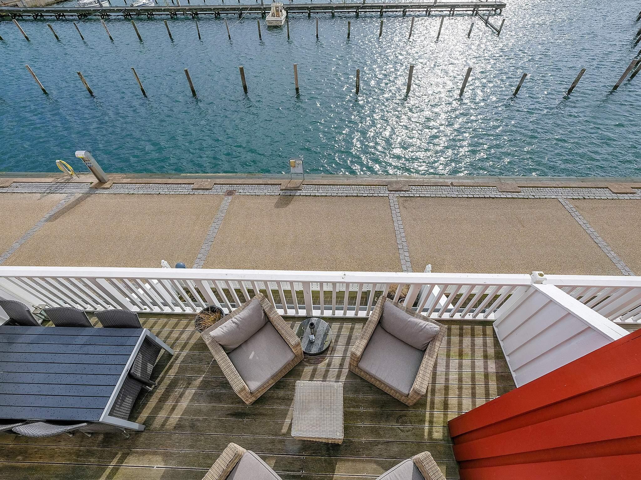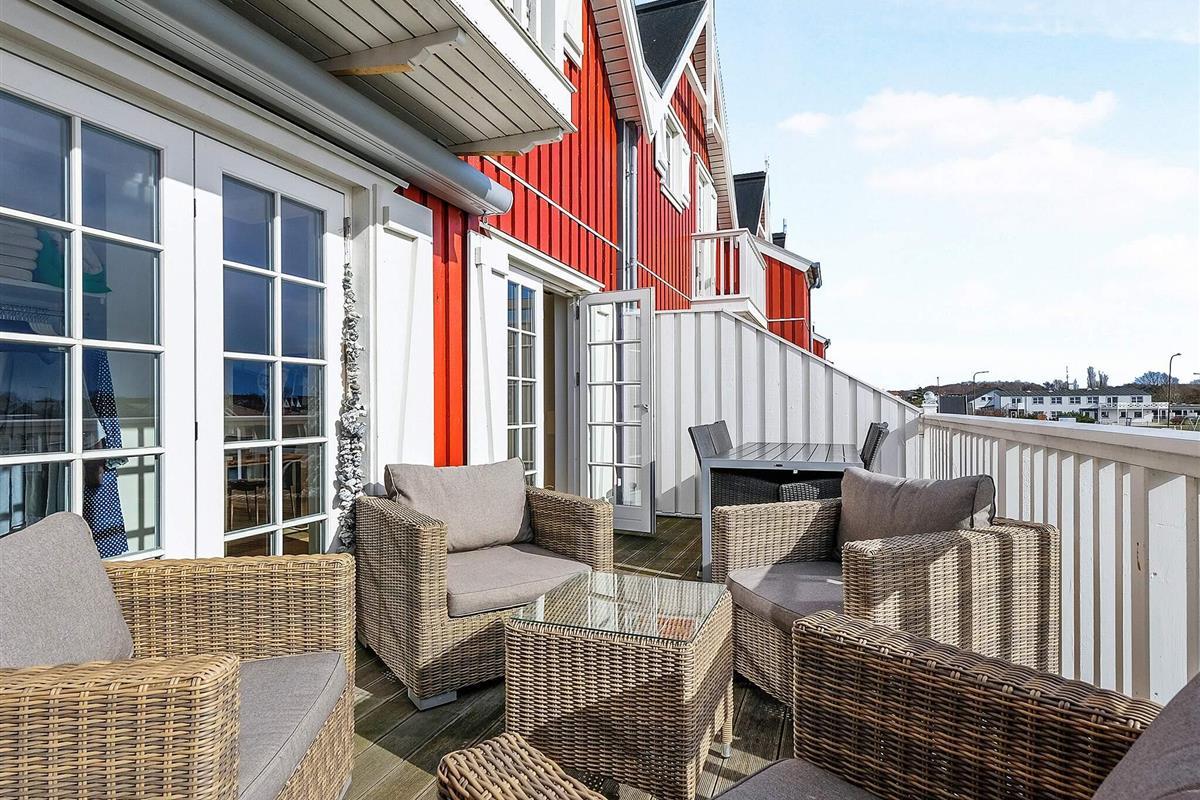 Genießen Sie oben vom großen Balkon, der mit Gartenmöbeln ausgestattet ist, den maritimen Ausblick zum kleinen Fischerdorf! Auf dem Balkon gibt es auch eine Markise, die als Schutz vor der Mittagssonne genutzt werden kann.