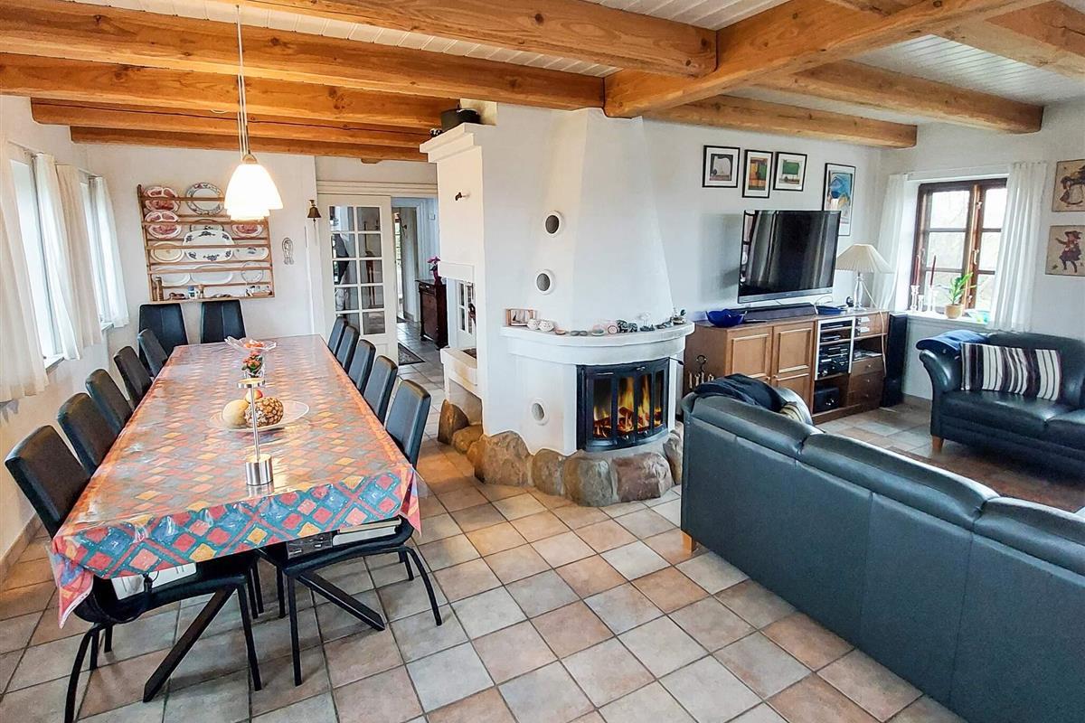 Dieses wohnliche Ferienhaus bietet einen komfortablen und gemütlichen Aufenthalt, ideal für Familien oder kleine Gruppen. Es verfügt über vier Schlafzimmer. Das geräumige Wohnzimmer ist mit einem Kaminofen, einem Fernseher und zwei Kinderhochstühlen ausgestattet.