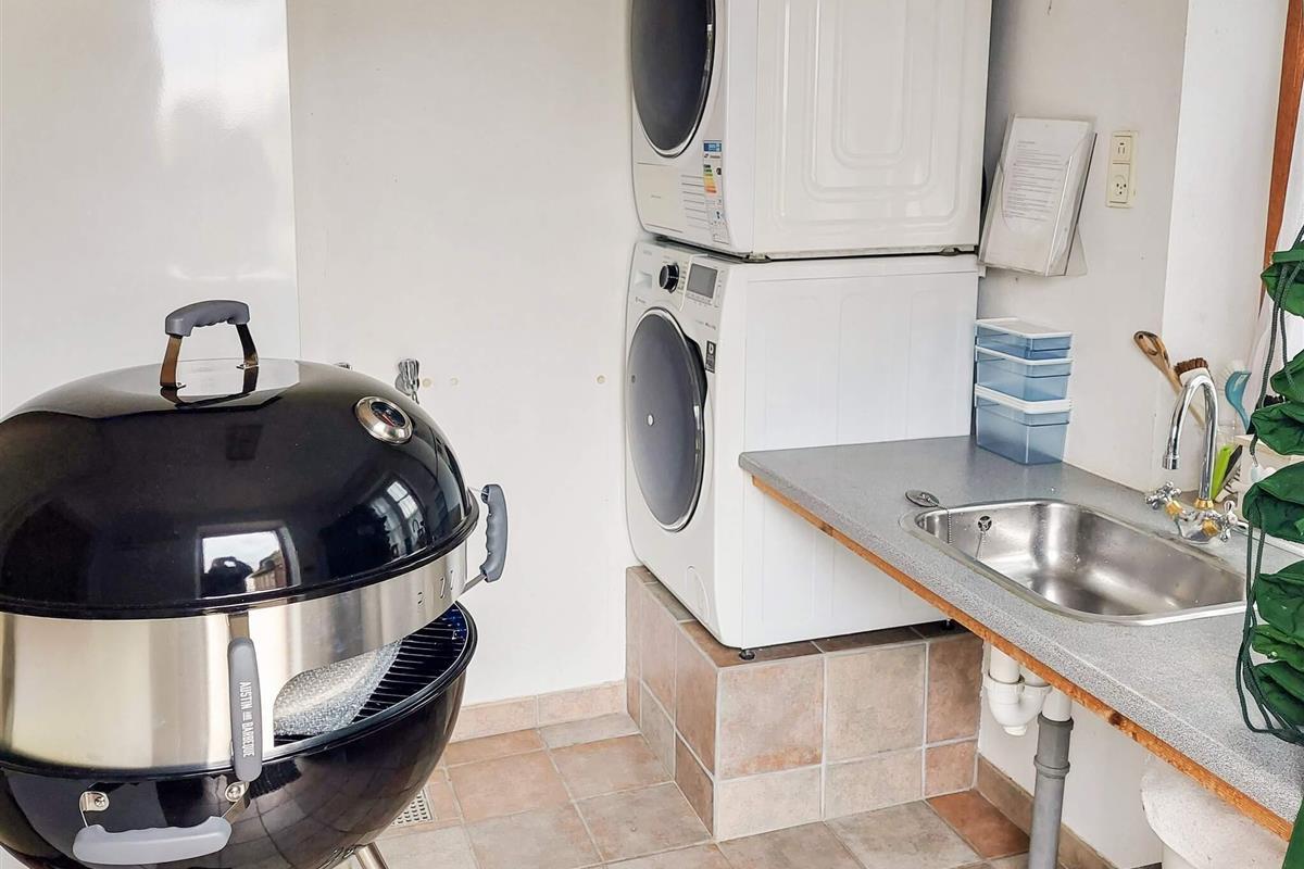 Für längeren Aufenthalt sorgen Annehmlichkeiten wie Waschmaschine und Trockner. Der Außenbereich mit Garten, Gartenmöbeln und Holzkohlegrill bietet den perfekten Rahmen für Mahlzeiten im Freien.