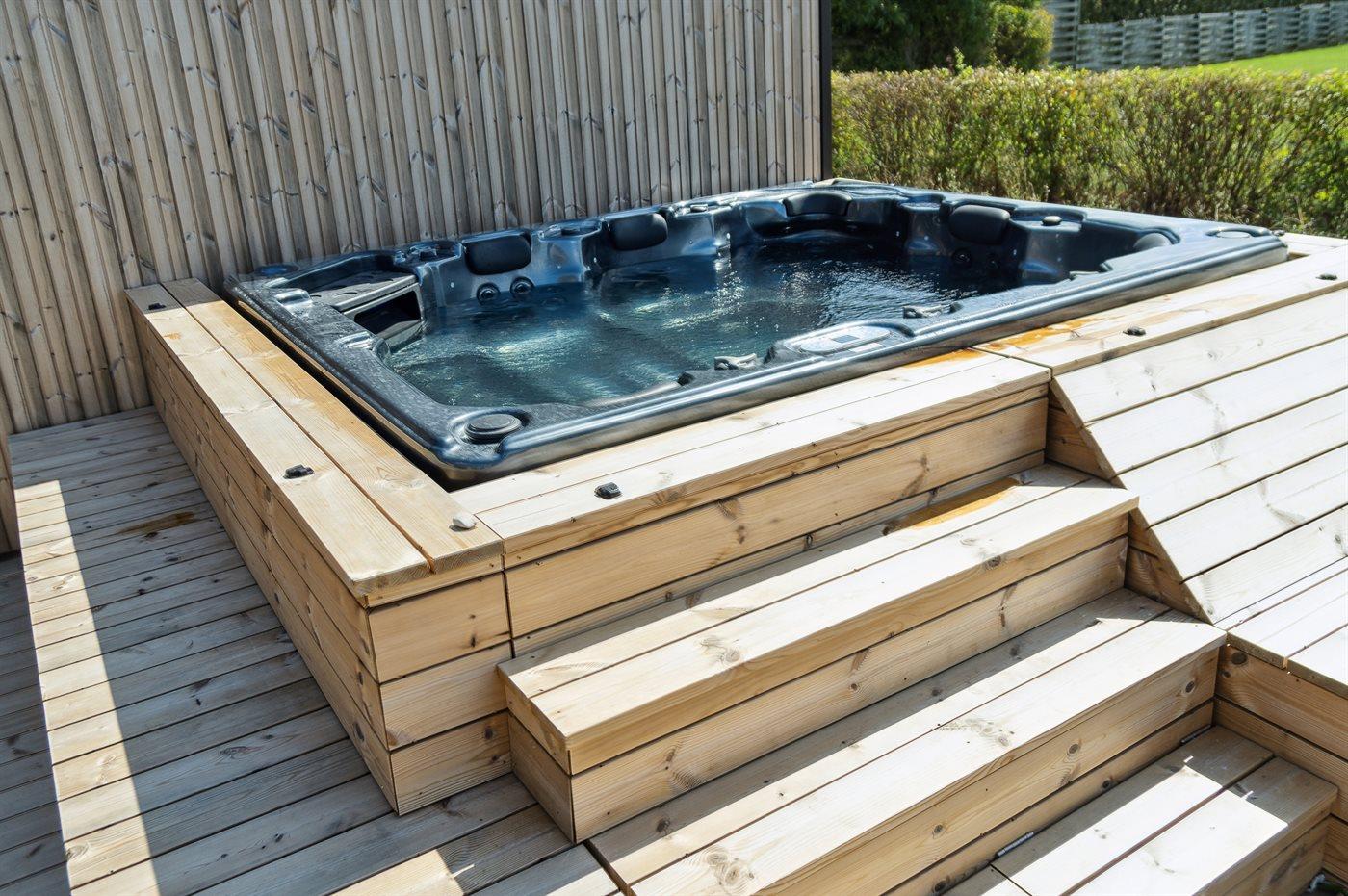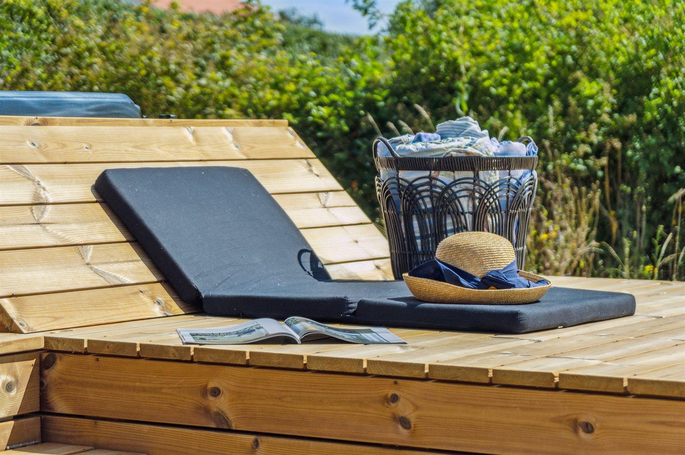 Het buitenbubbelbad (standwater) biedt ontspanning aan 7 personen.