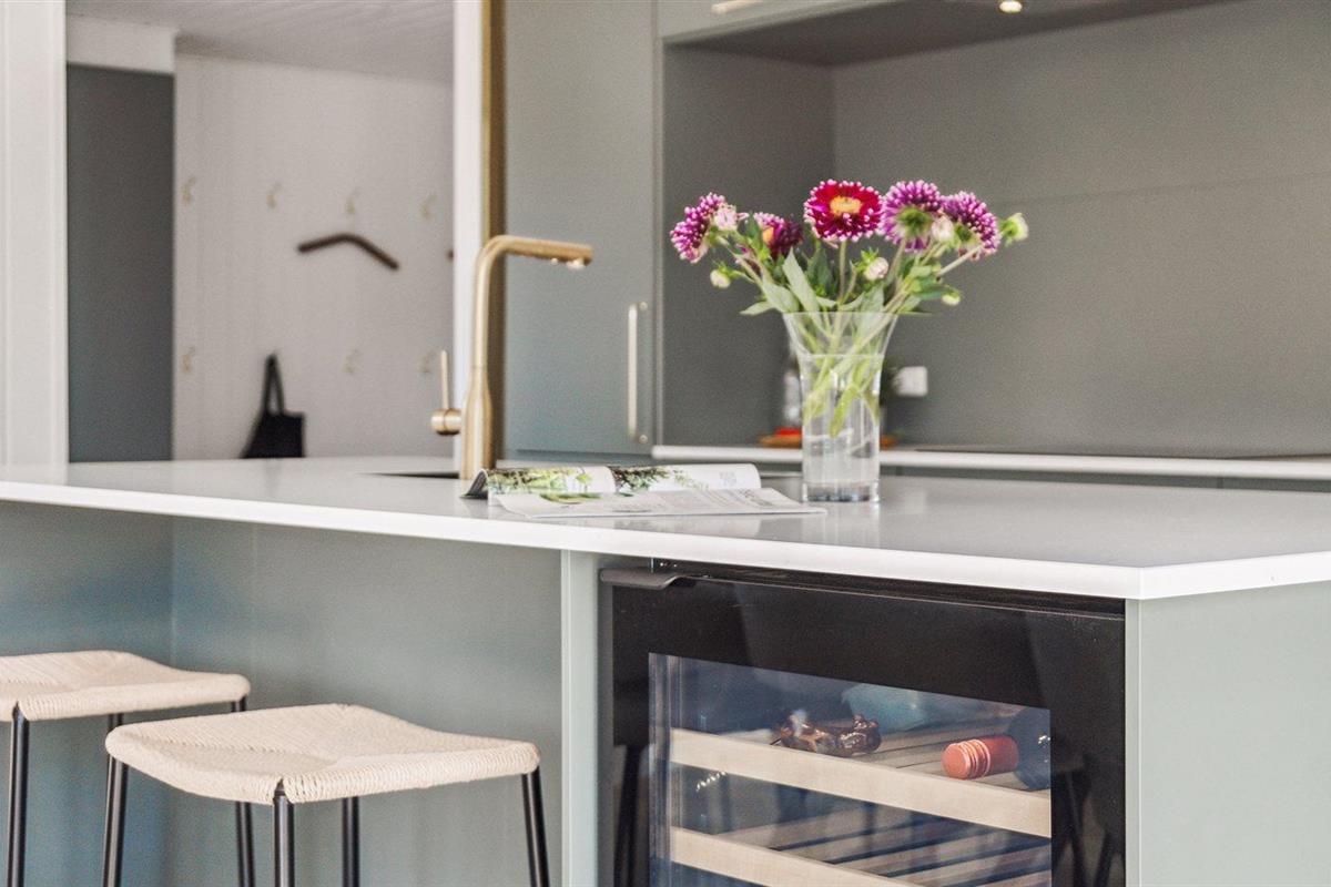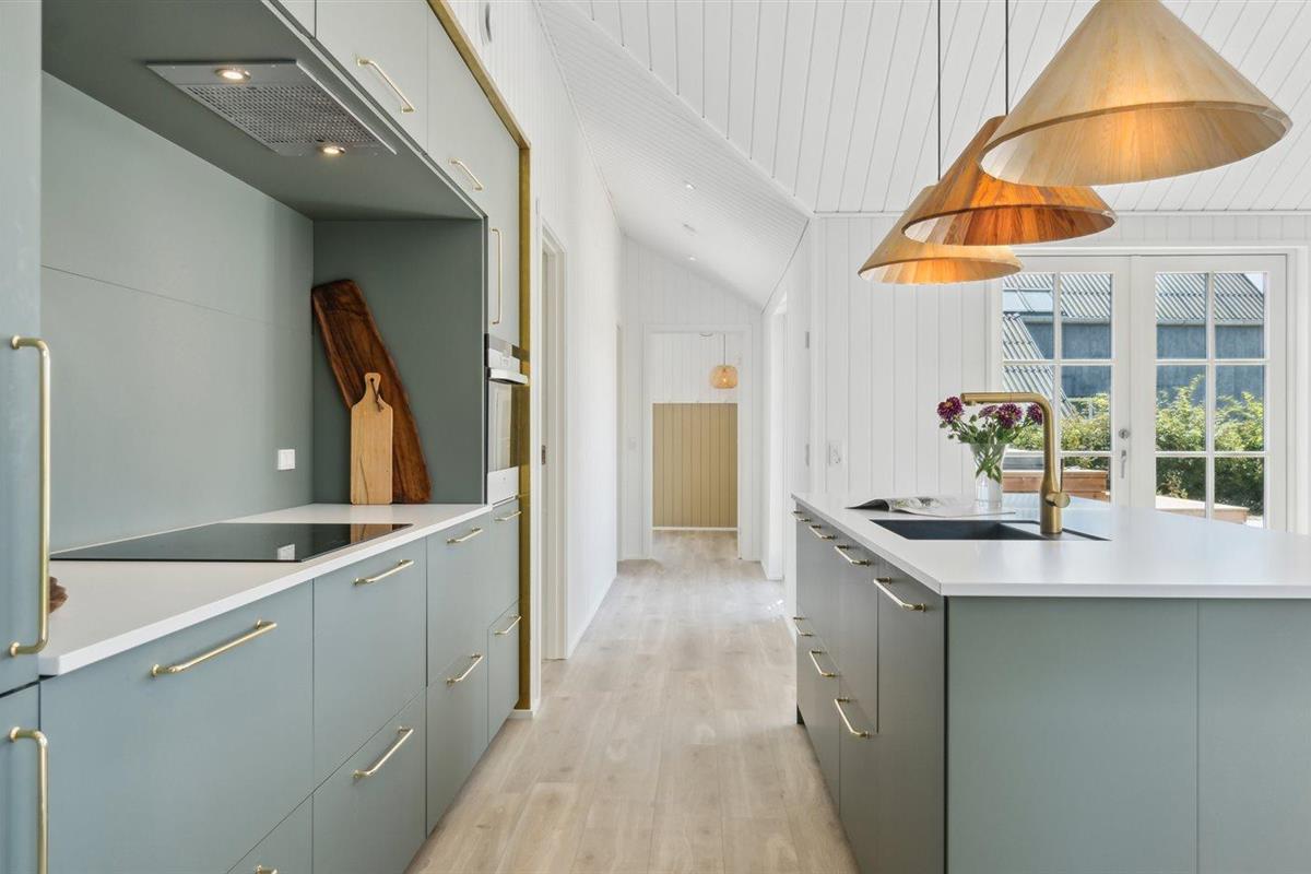 De keuken is uitgerust met koelkast Er is 4 inductiekookplaten, heteluchtoven en vaatwasser.