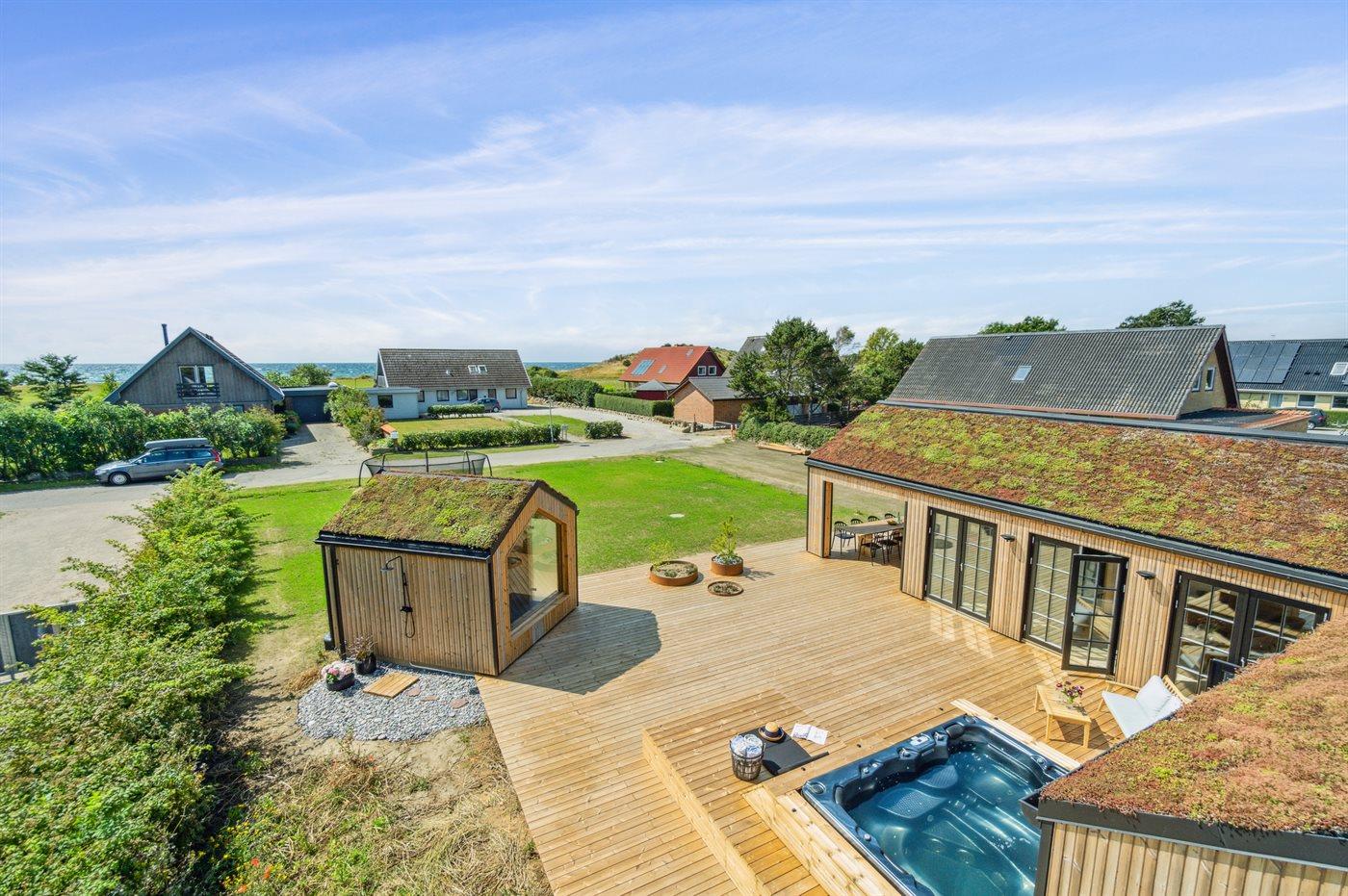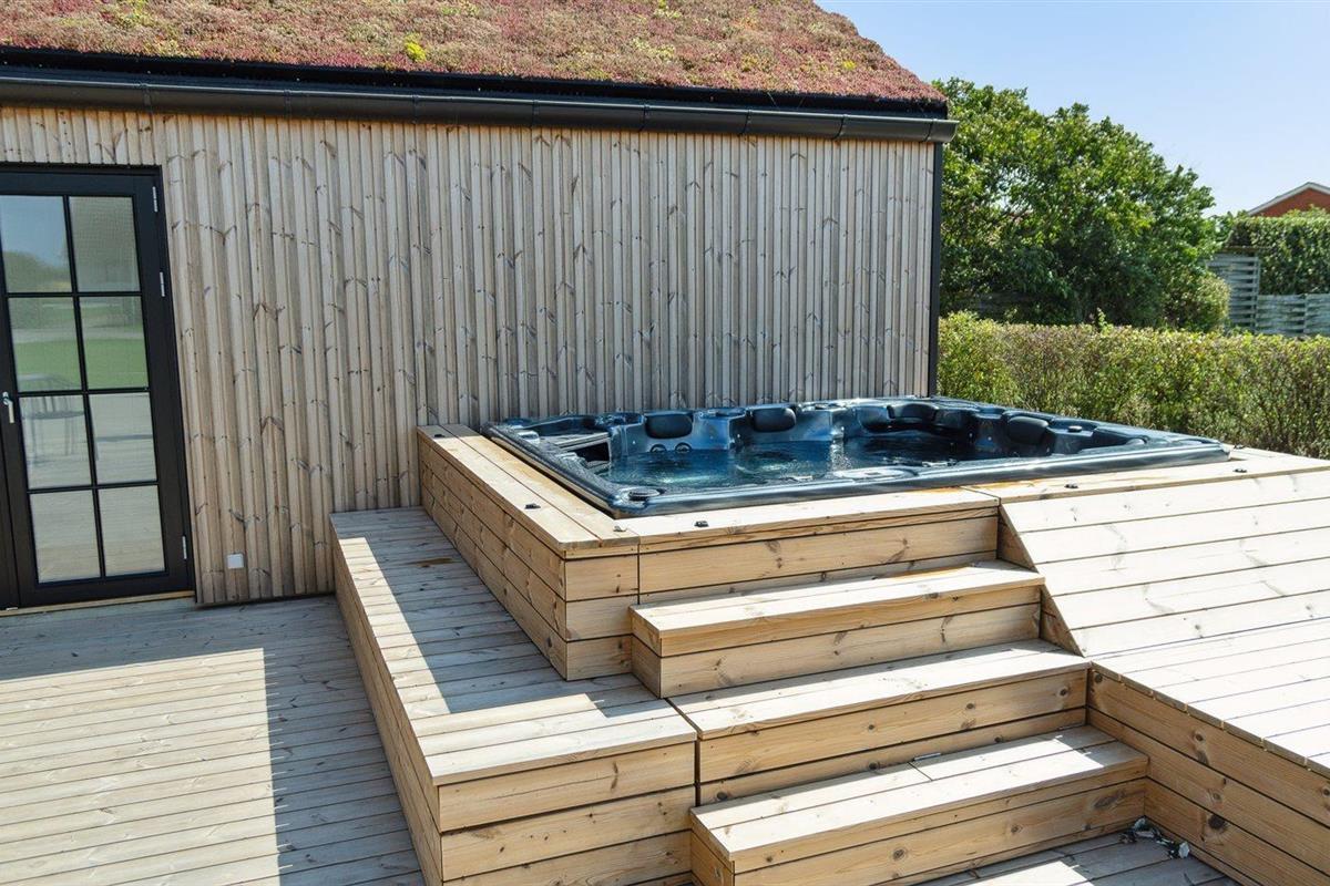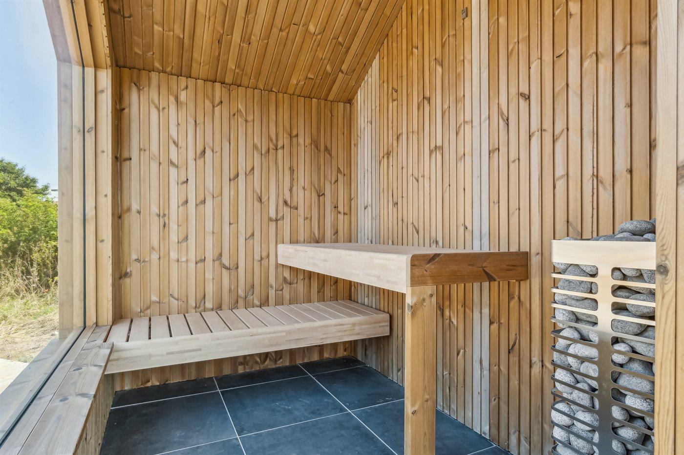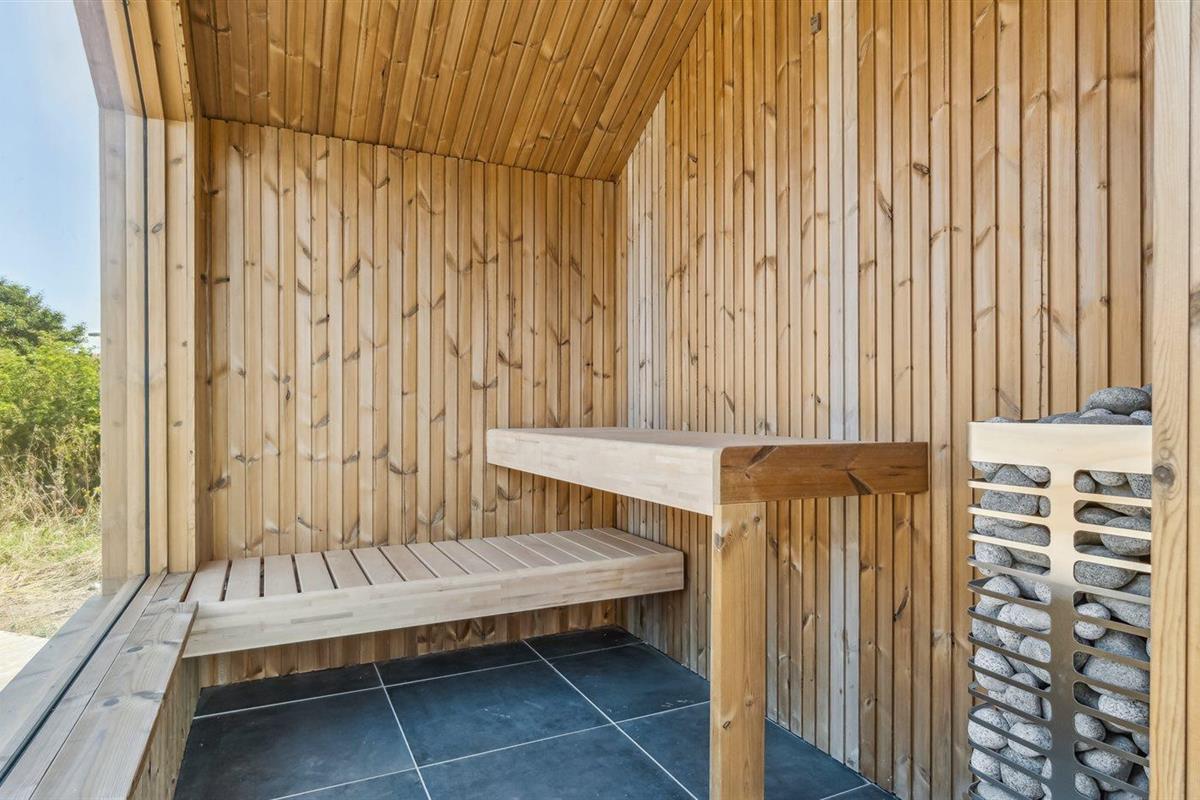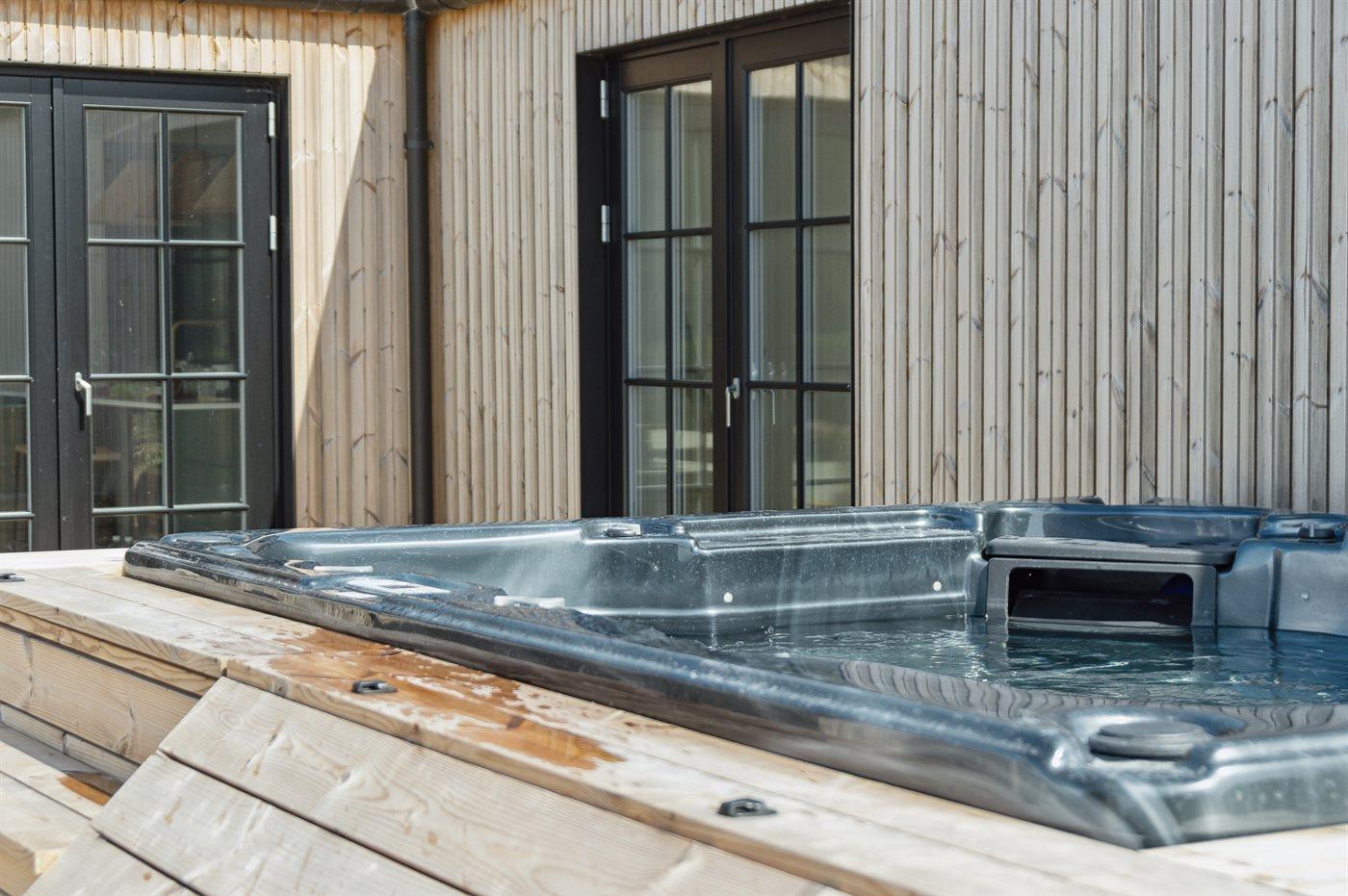 Modern vakantiehuis dichtbij zee met buitensauna, bubbelbad en buitenkeuken.