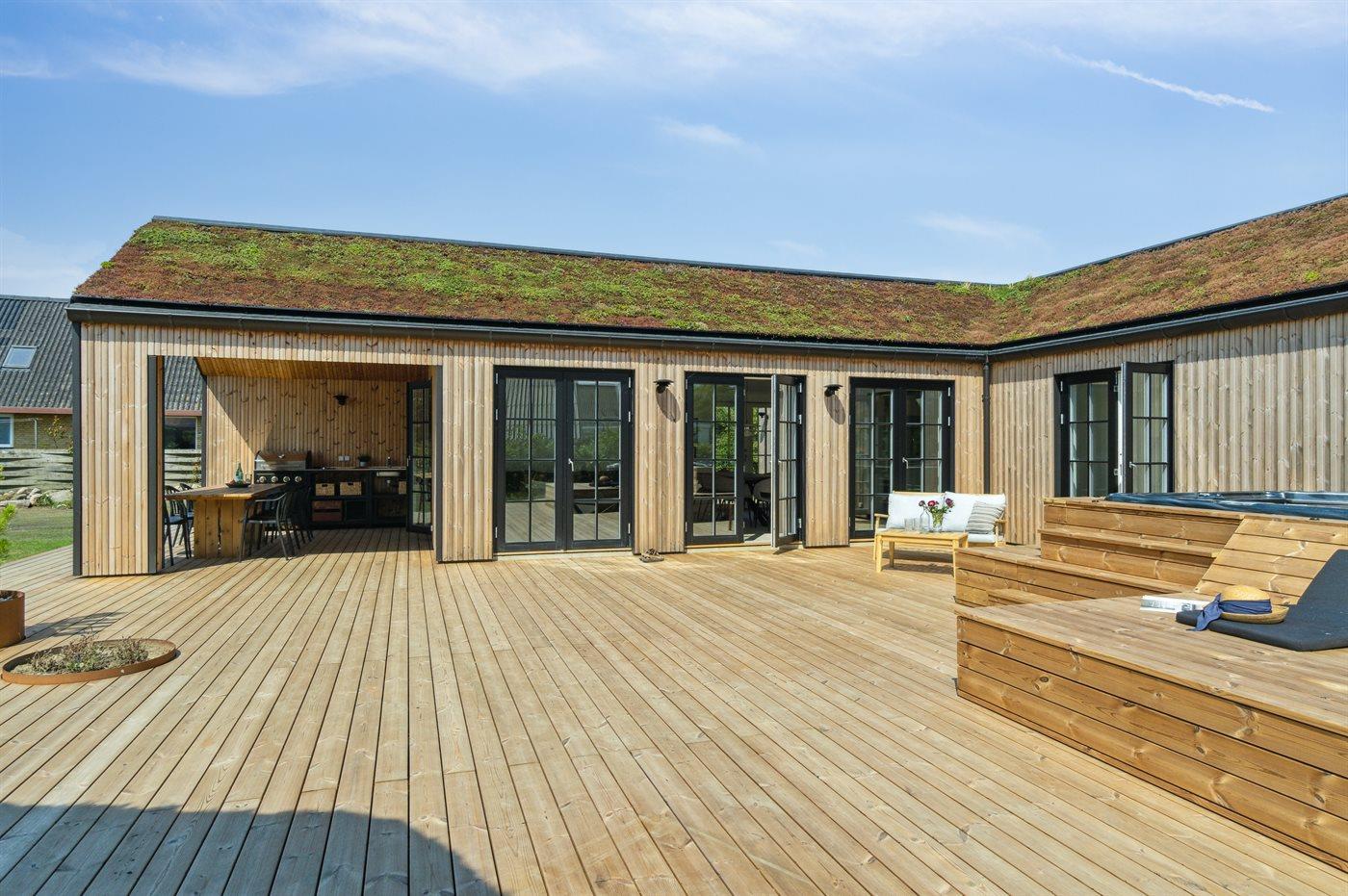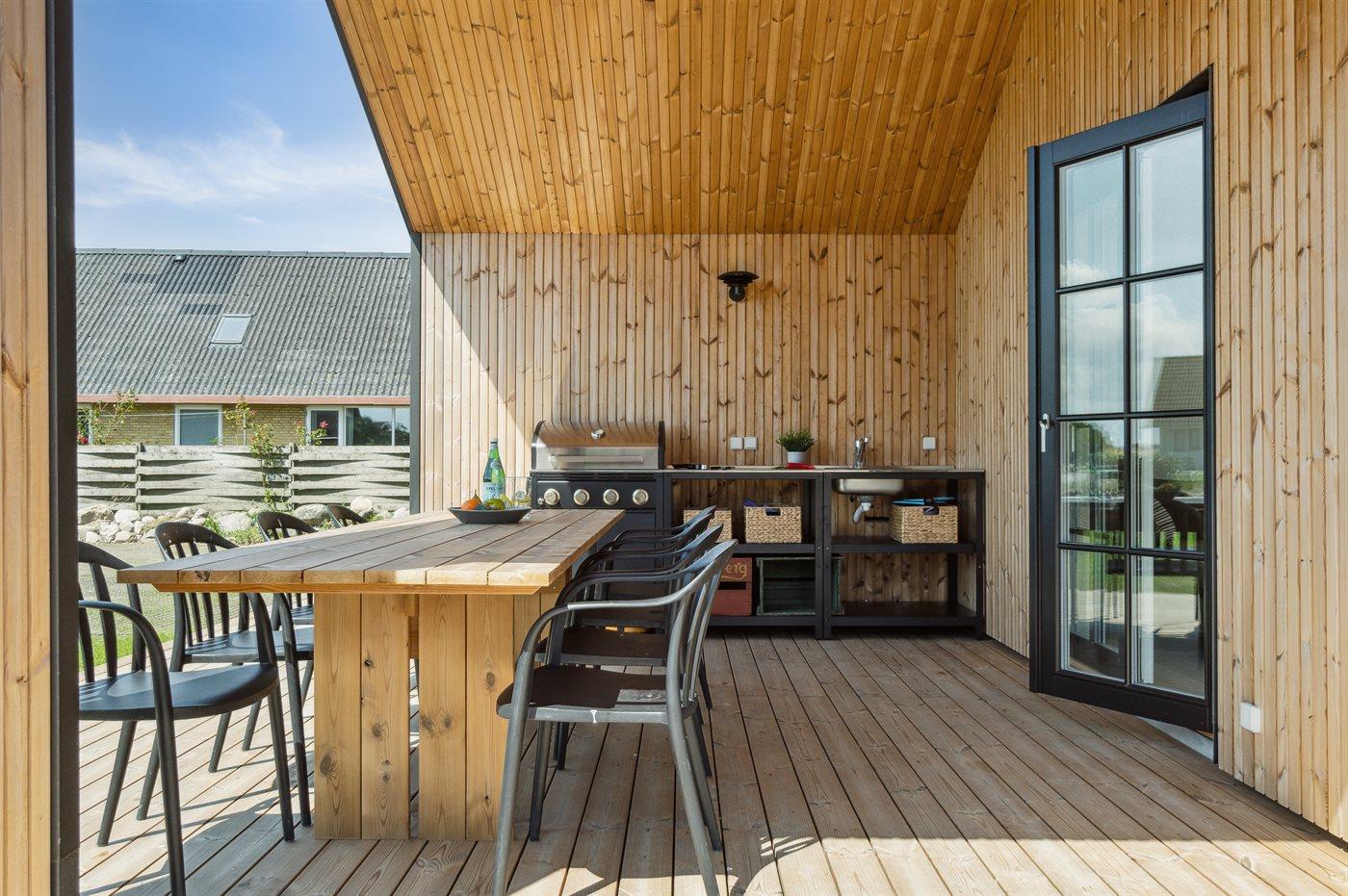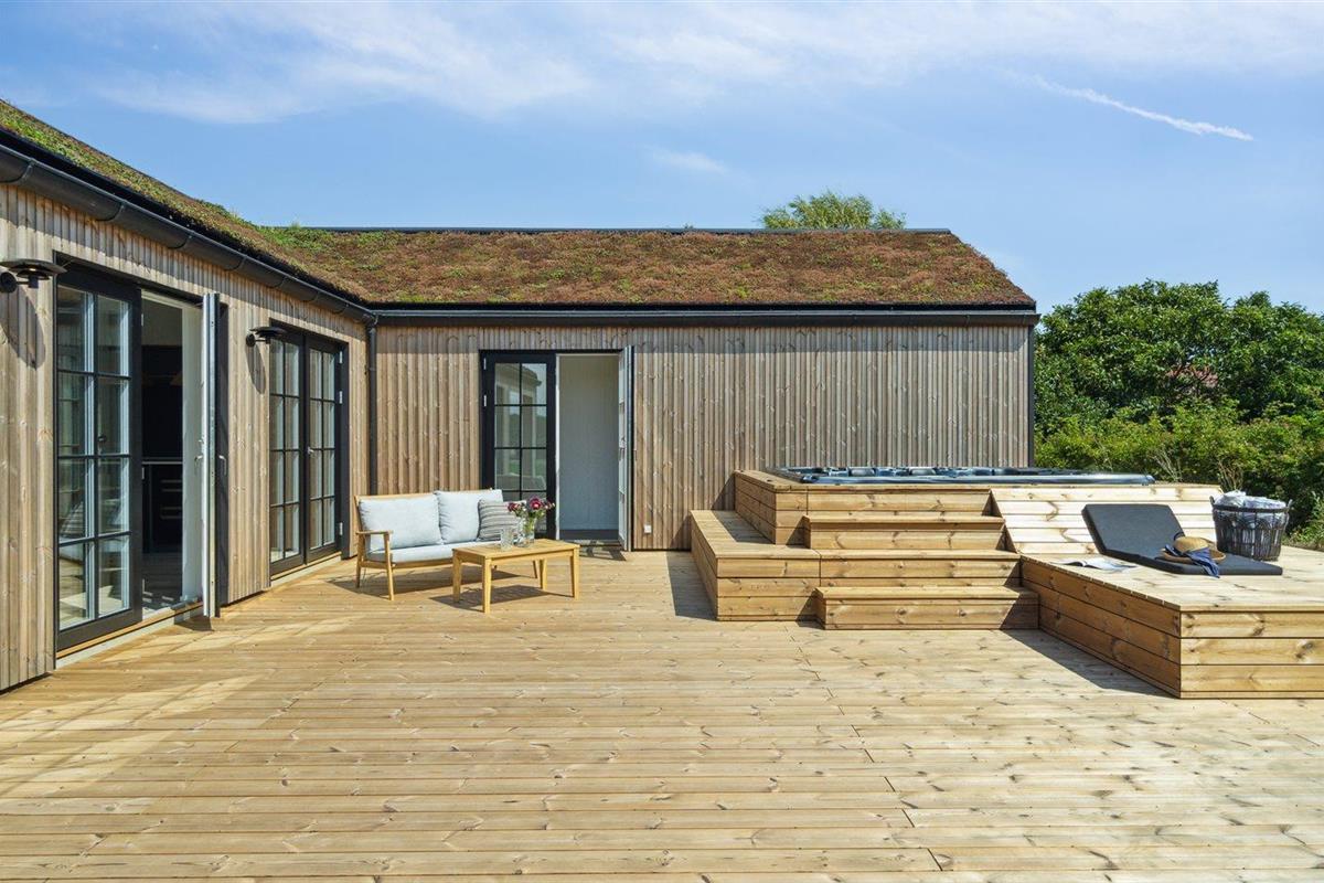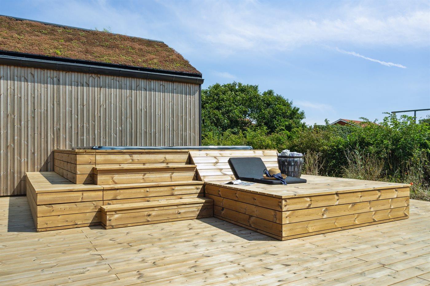Modern vakantiehuis dichtbij zee met buitensauna, bubbelbad en buitenkeuken.