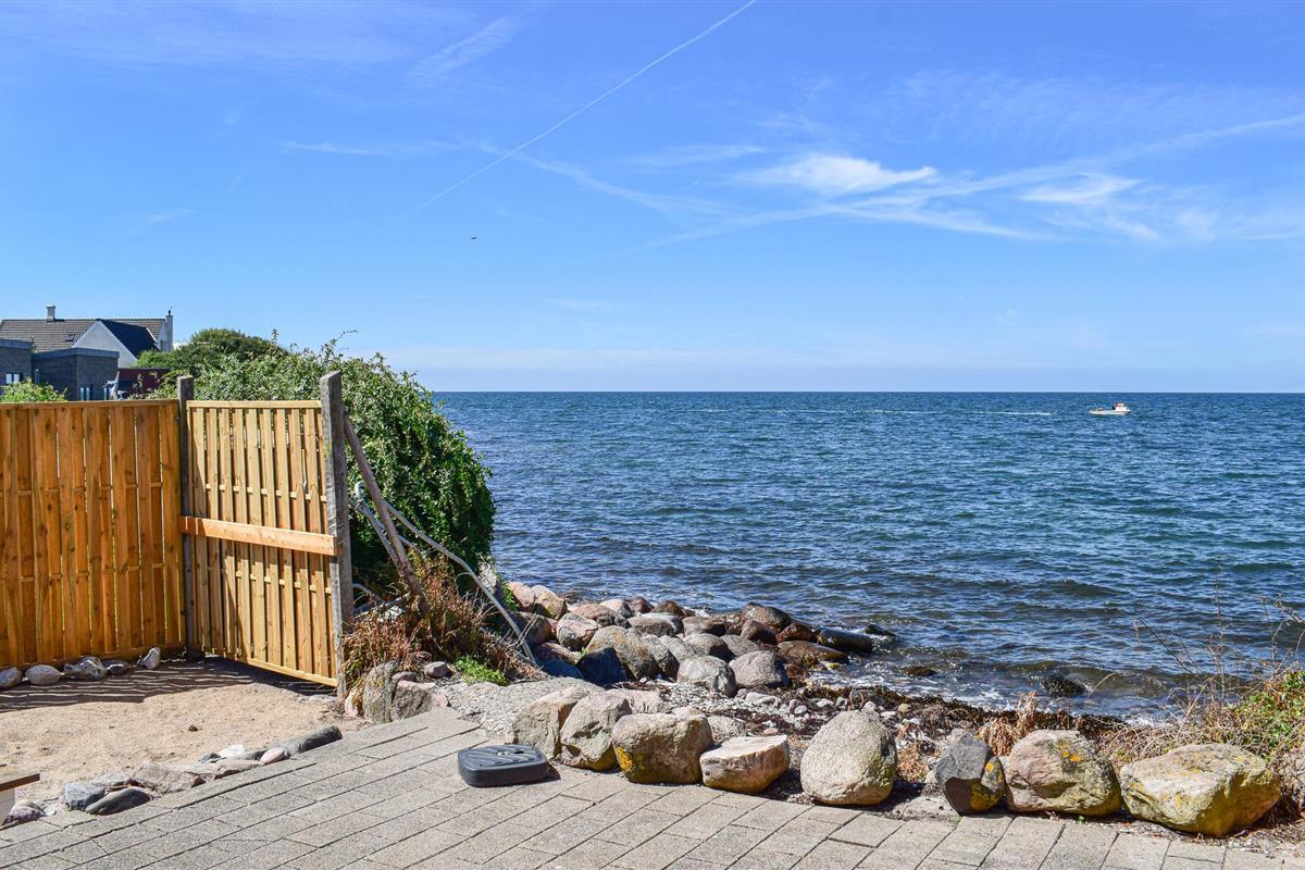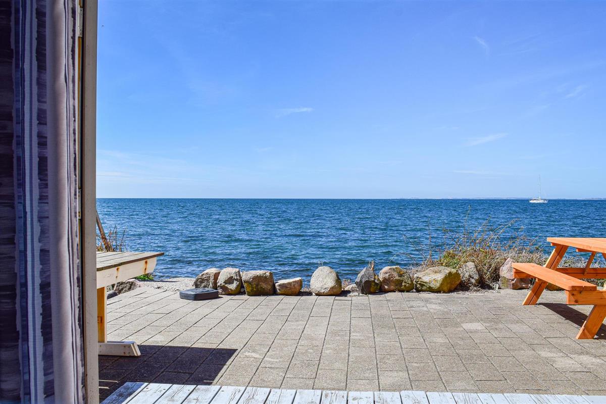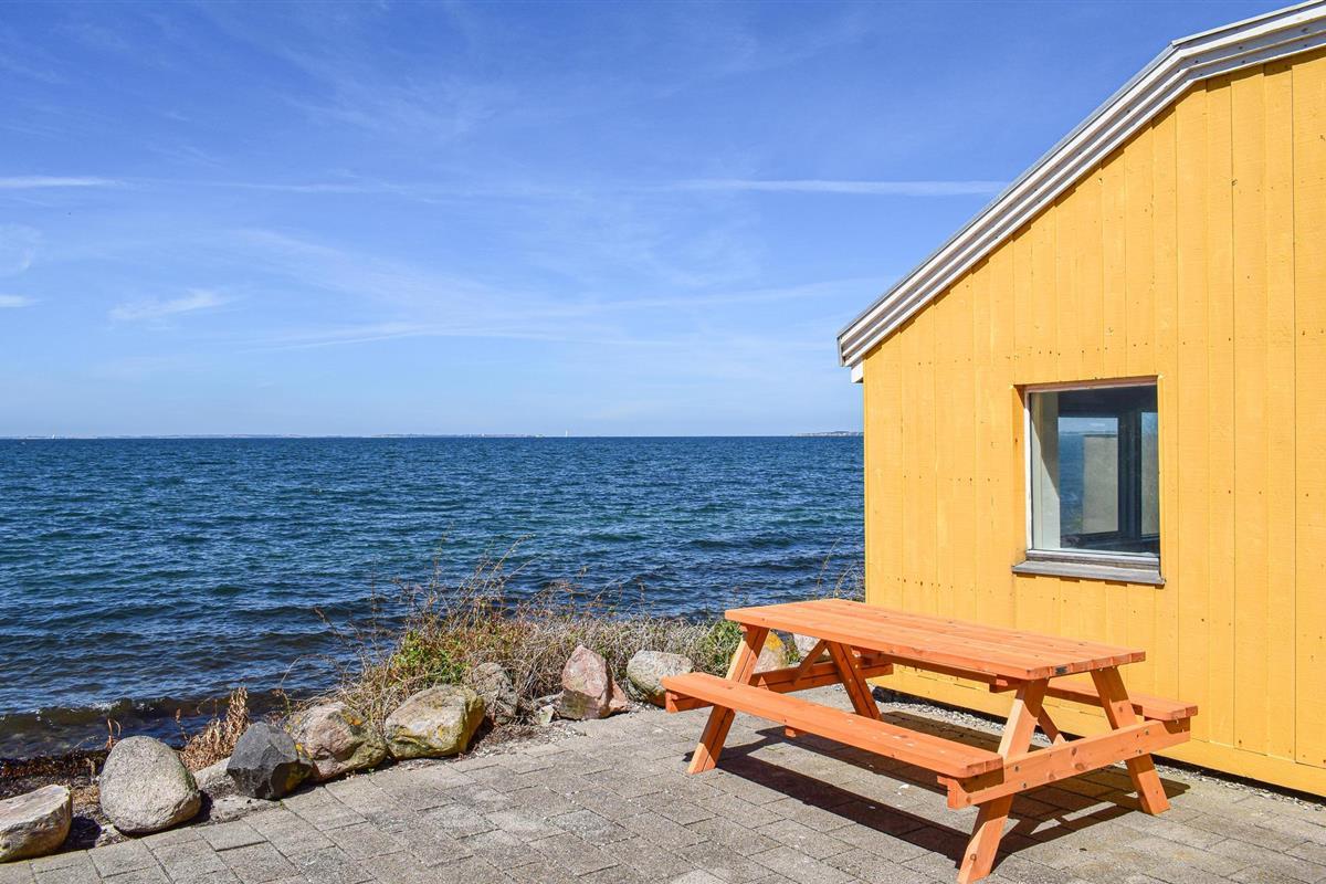 Geniet van dit charmante stenen vakantiehuis direct aan het water in Bagenkop, Denemarken, met een open terras en panoramisch uitzicht.