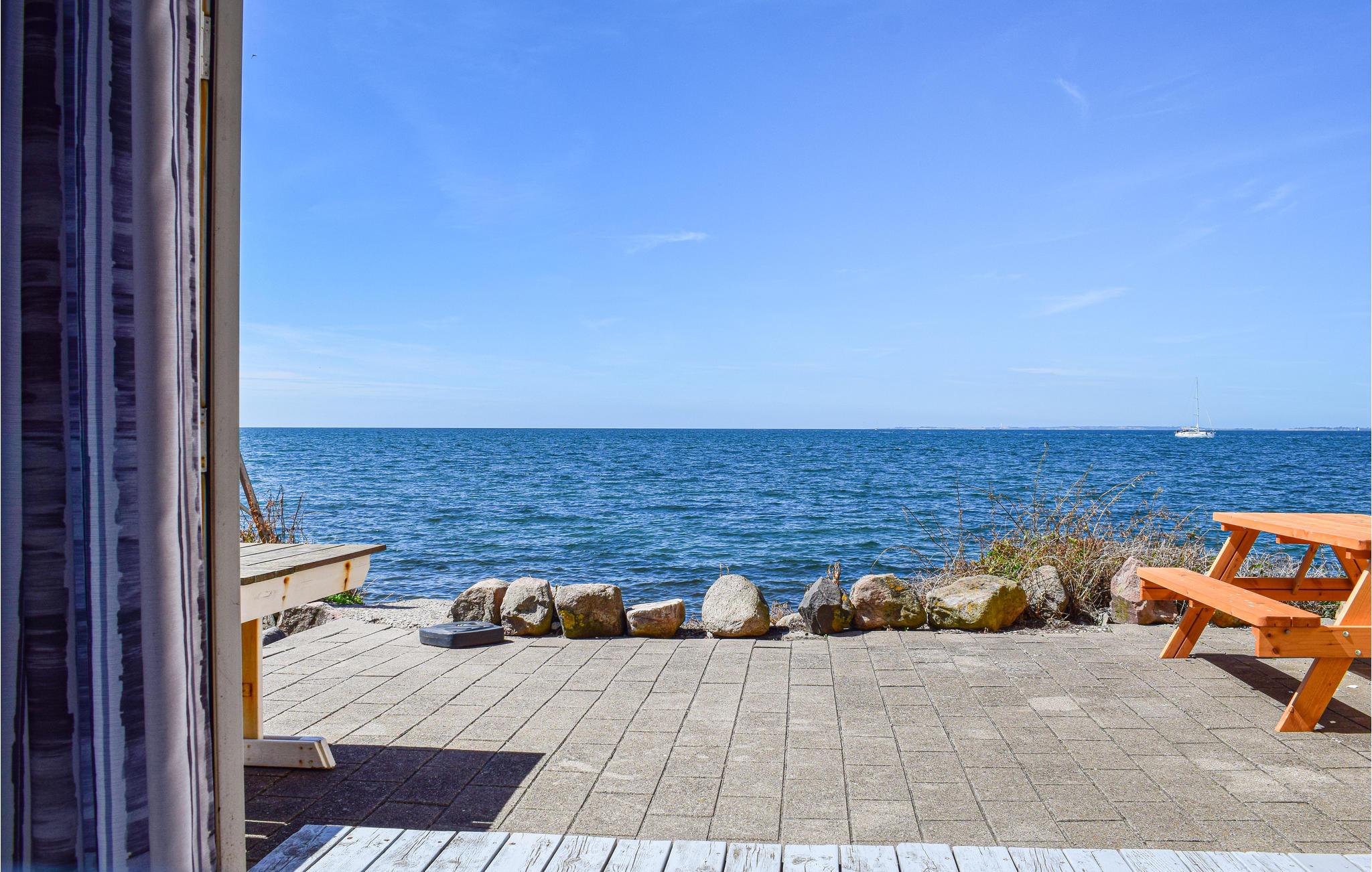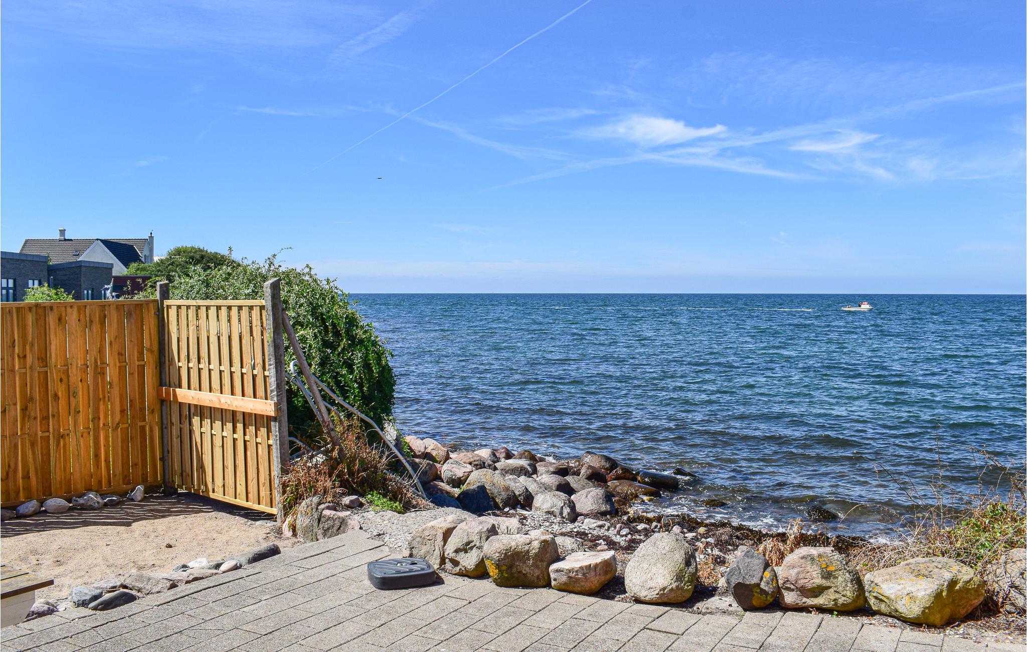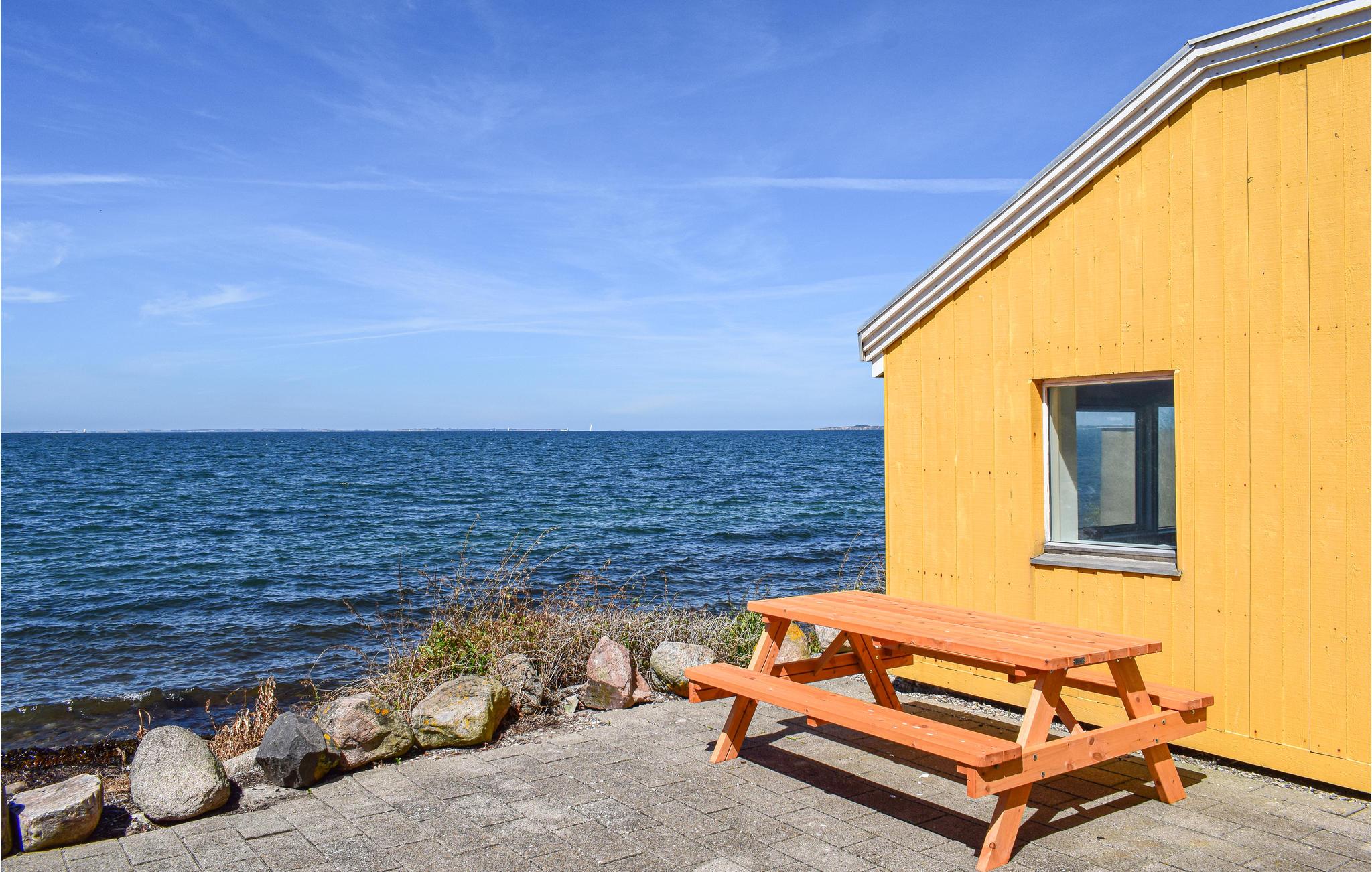 Geniet van dit charmante stenen vakantiehuis direct aan het water in Bagenkop, Denemarken, met een open terras en panoramisch uitzicht.