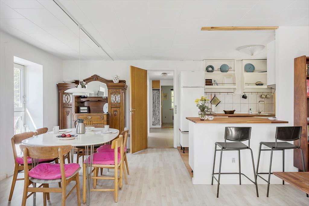 Das Sommerhaus liegt auf einem guten Grundstück mit einem schönen, teilweise umzäunten Garten. Entlang des Hauses gibt es eine schöne geflieste Terrasse und auf der Rückseite des Hauses gibt es auch eine Terrasse, sodass Sie tagsüber der Sonne rund um das Haus folgen können. Die Kinder können auf der Wiese spielen, während Sie Ihren Kaffee auf der Terrasse genießen. Wenn Sie mit einem Elektroauto anreisen, können Sie dieses beim Eigentümer des Hauses am Kvædevej 18 gegen eine Gebühr aufladen.