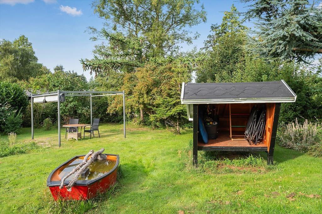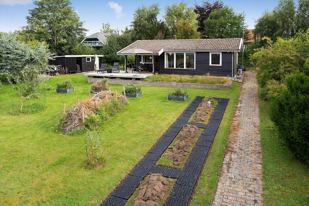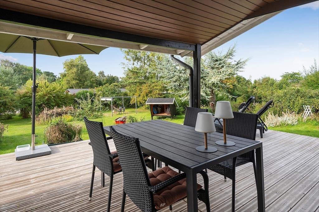 Das Ferienhaus liegt auf einem schönen Grundstück mit einem schönen, teilweise umzäunten Naturgarten. An einer Seite des Hauses befindet sich eine schöne, teilweise überdachte Holzterrasse, an der Rückseite eine geflieste Terrasse, sodass Sie tagsüber die Sonne um das Haus herum genießen können. Die Kinder können auf dem Rasen spielen, während Sie Ihren Kaffee auf der Terrasse genießen. Im Garten befindet sich ein Schutzhaus, sodass Sie im Freien übernachten können.