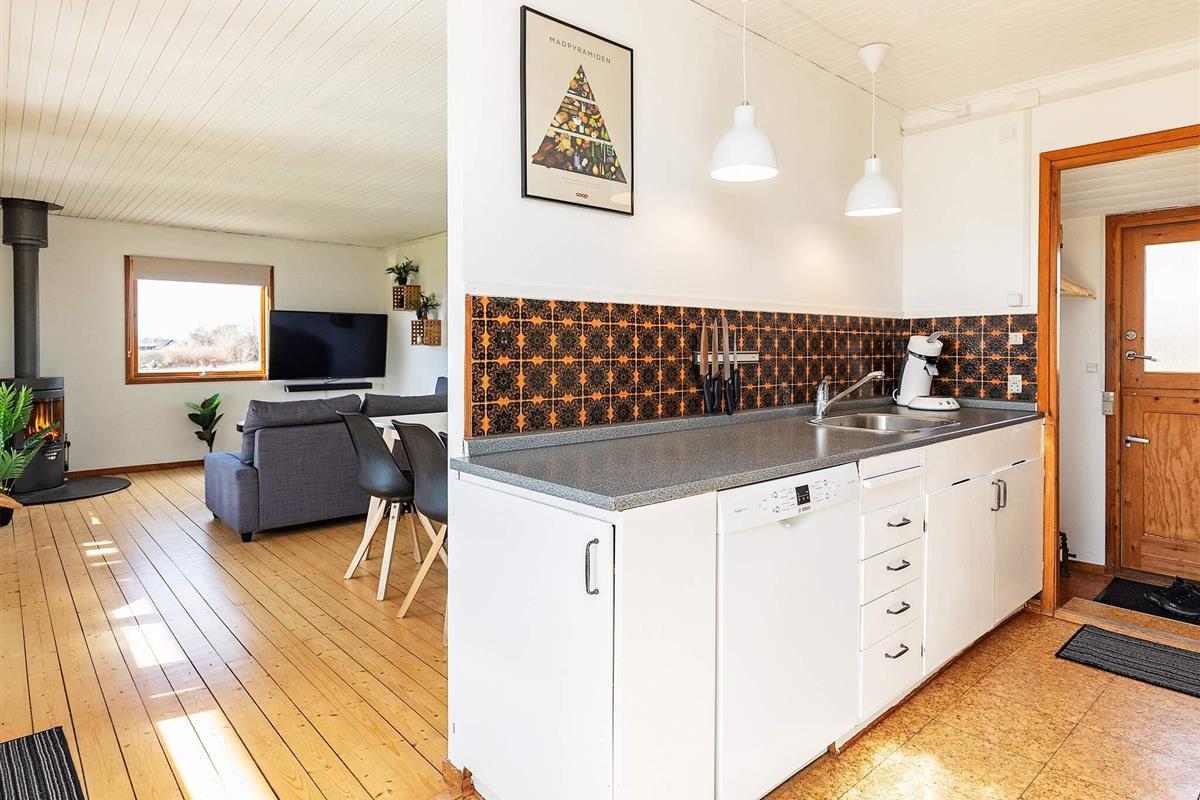 Dieses traditionelle Ferienhaus liegt in der malerischen Umgebung nahe dem Bakkebølle Strand und bietet einen ruhigen Rückzugsort in Wassernähe. Das Haus verfügt über eine helle, gut ausgestattete Küche mit Geschirrspüler und Induktionskochfeld, sodass Sie bequem Mahlzeiten für Familie und Freunde zubereiten können. Das Wohnzimmer bietet viel Platz zum Entspannen auf dem Sofa und zum Genießen der wohligen Wärme des Holzofens.
