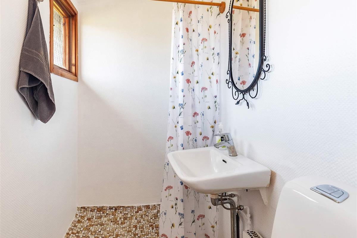 Das Haus verfügt über ein Badezimmer mit Dusche und zwei kleinere Schlafzimmer mit Einzelbetten und Kleiderschränken – ideal für Kinder oder zusätzliche Gäste. Ein kleiner, separater Hauswirtschaftsraum mit eigenem Eingang, ausgestattet mit Waschmaschine und Trockner, bietet zusätzlichen Komfort. Eine offene Terrasse bietet weiteren Platz zum Grillen, Entspannen im Freien und zum Genießen der ruhigen Umgebung.