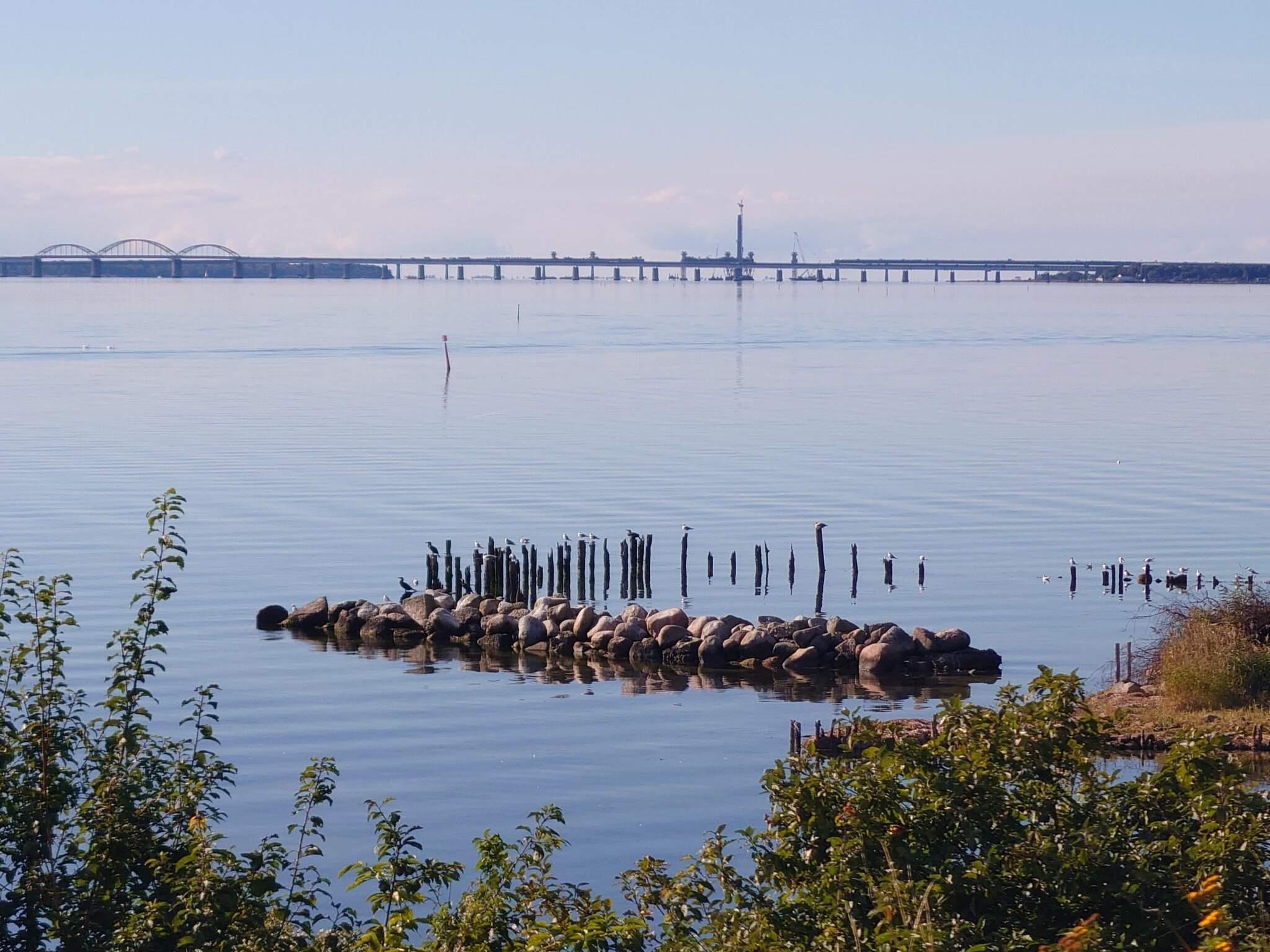 Vom Wohnzimmer aus haben Sie direkten Zugang zu einer überdachten Terrasse mit spektakulärem Blick auf den Storstrømmen und die historische Brücke, die die Meerenge überspannt. Die Terrasse eignet sich auch ideal zum Essen oder Entspannen im Freien und bietet viel Platz, um die frische Luft und die wunderschöne Umgebung zu genießen.
